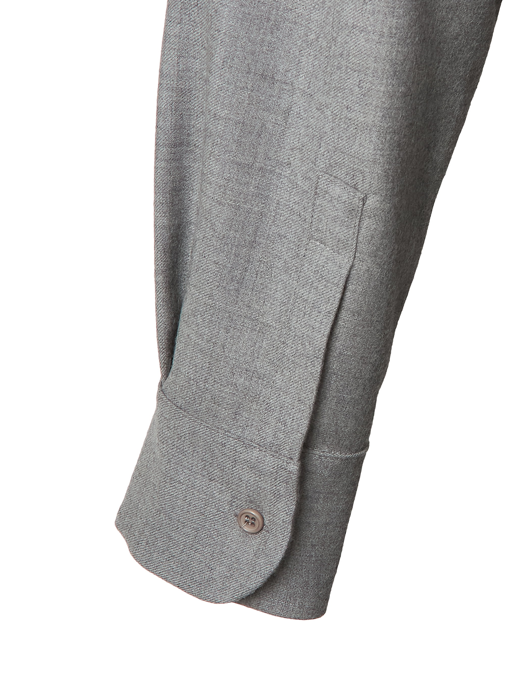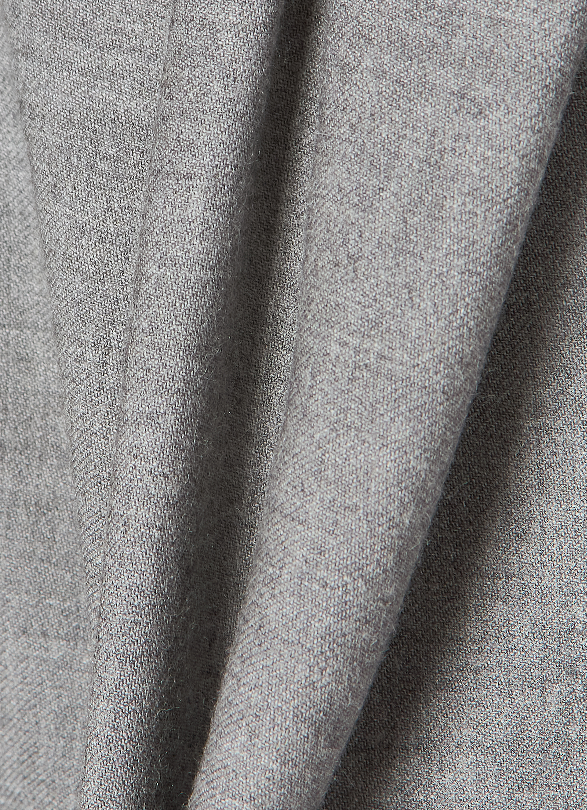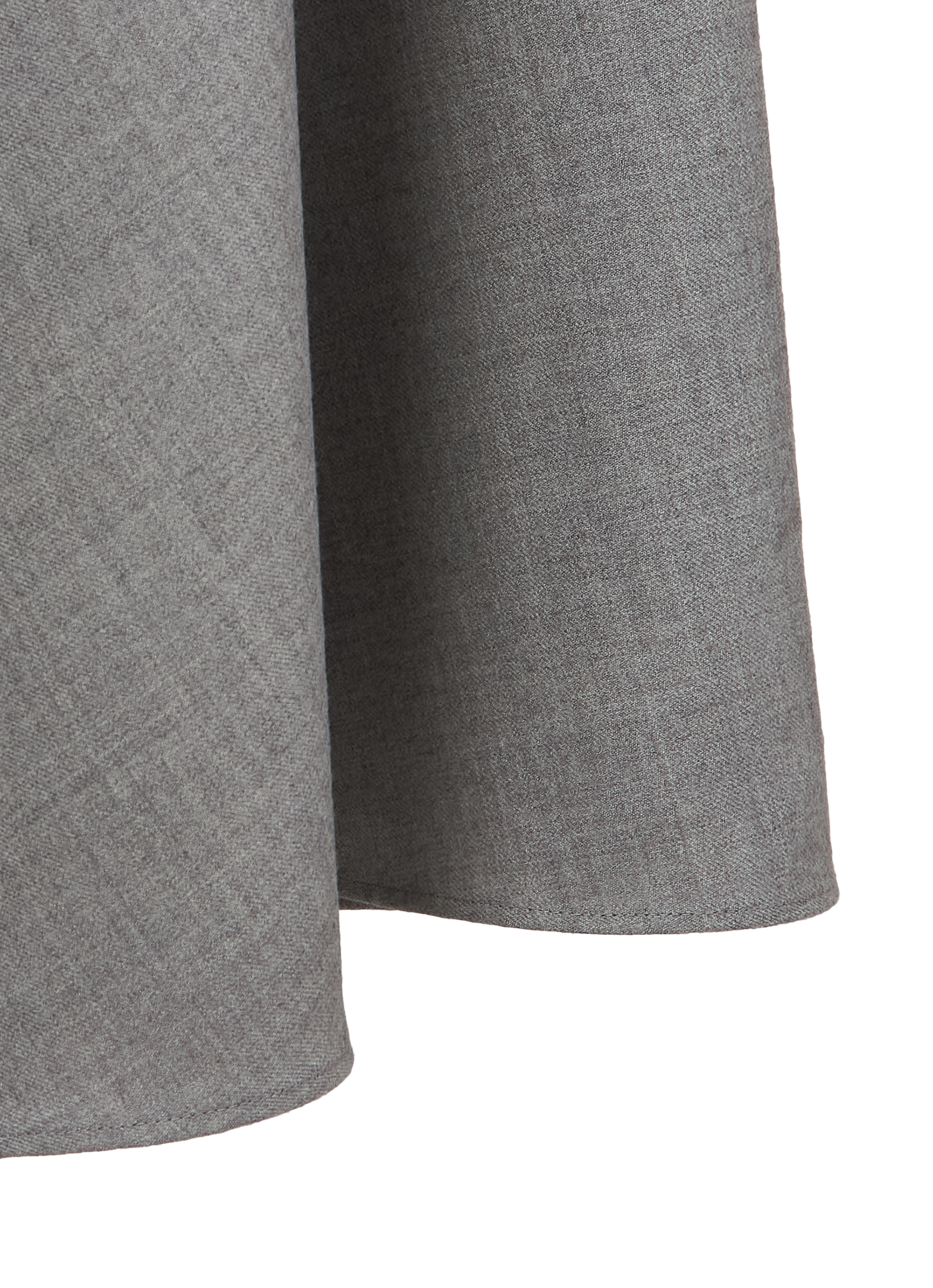 アシンメトリーな裾がモダンなアクセントとなり、シンプルながらも個性が光る一着です。