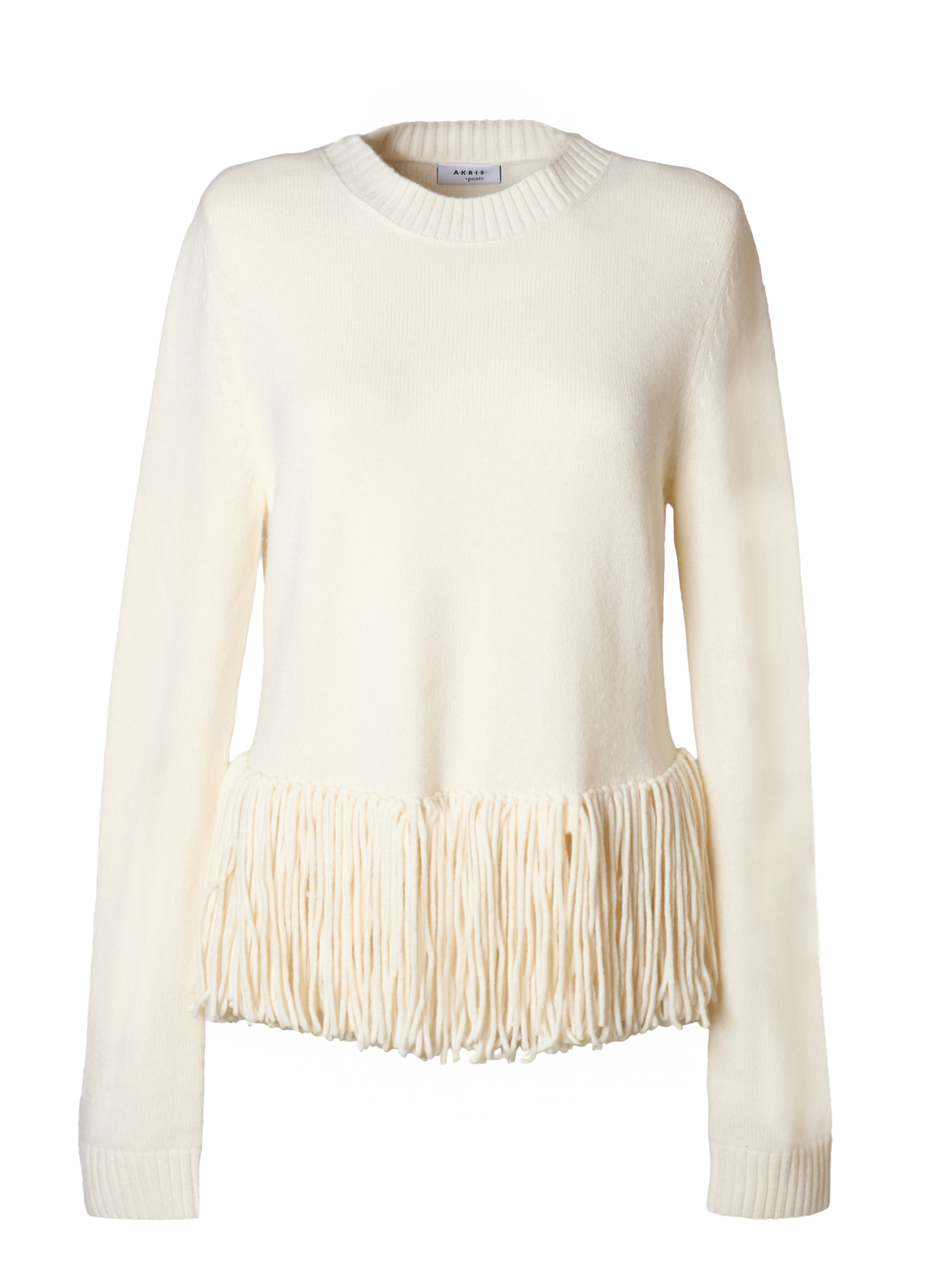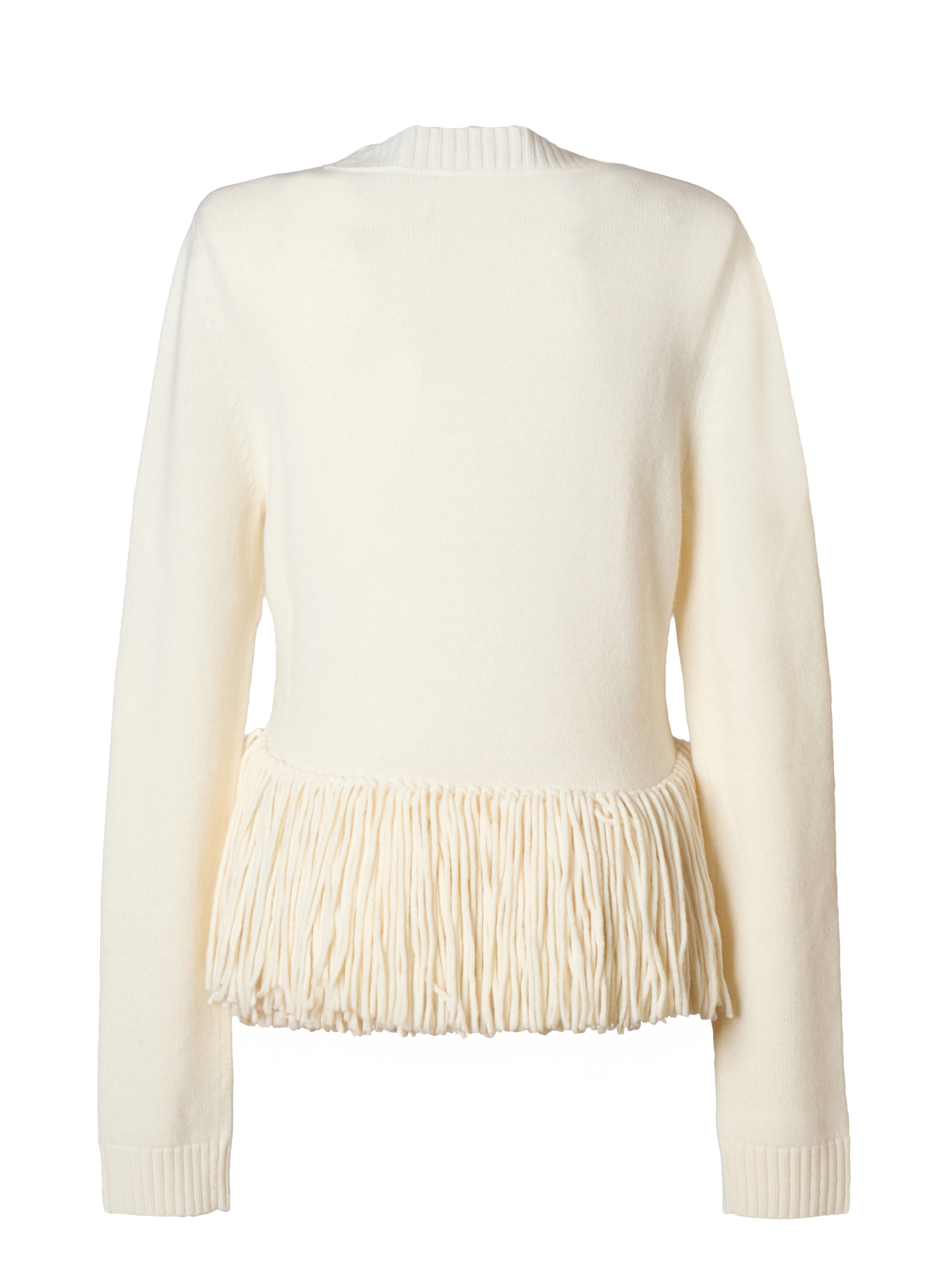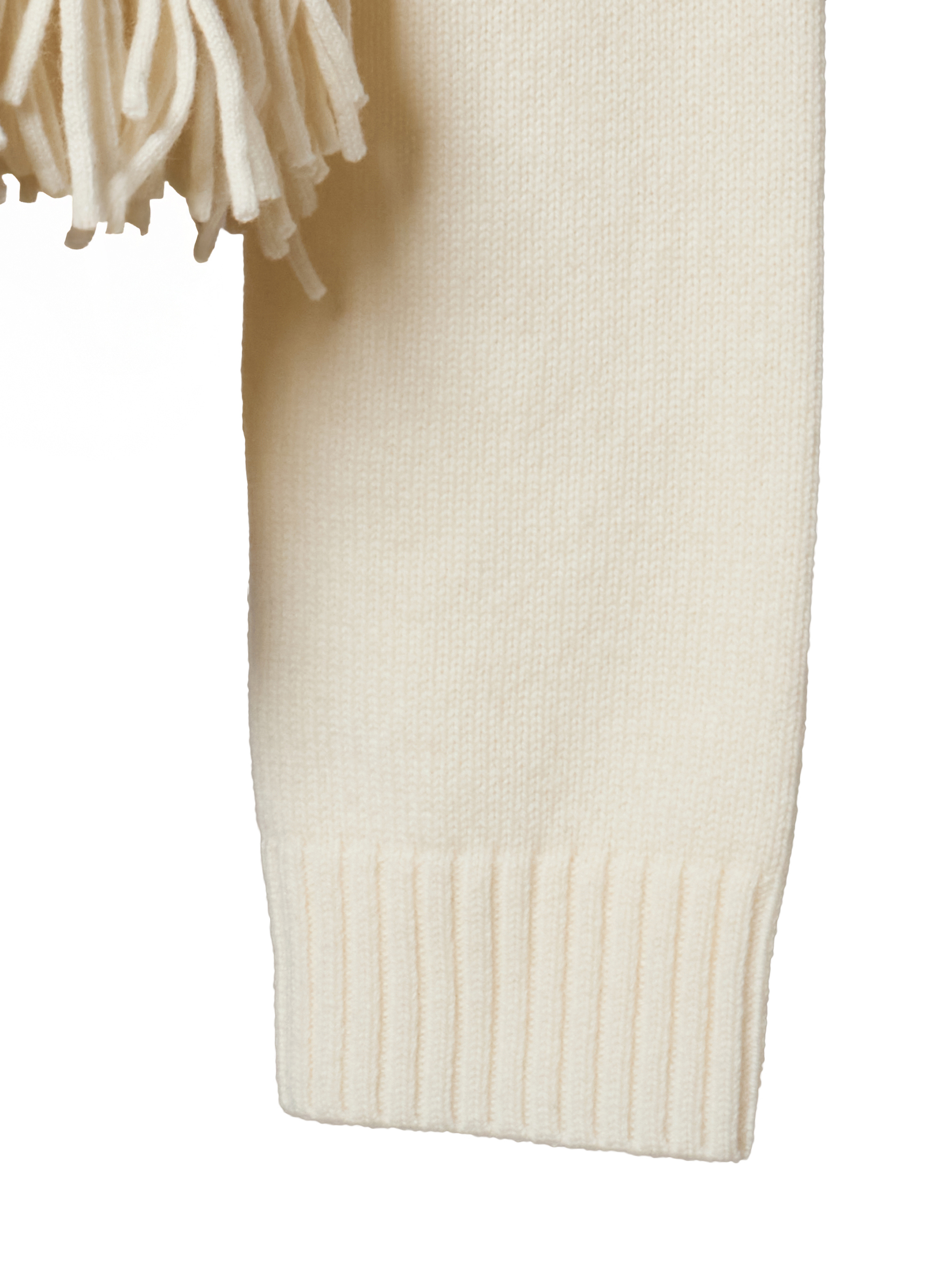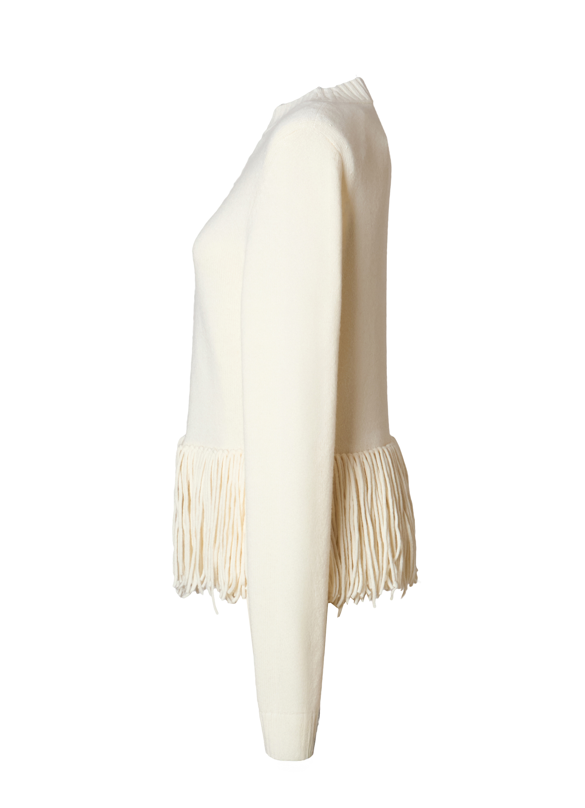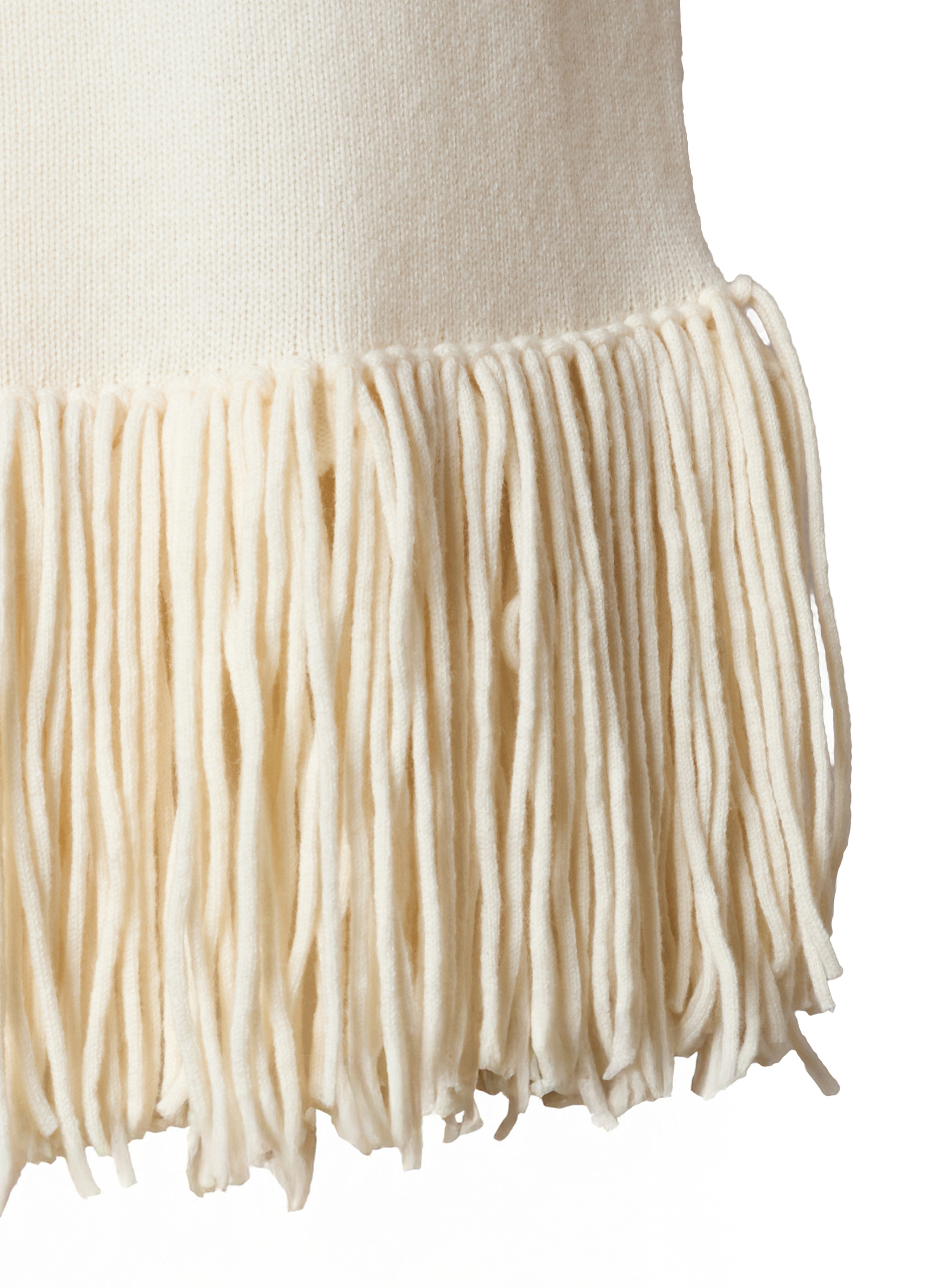 裾には大胆なフリンジディテールを施し、動きに合わせて揺れる軽やかさが魅力です。