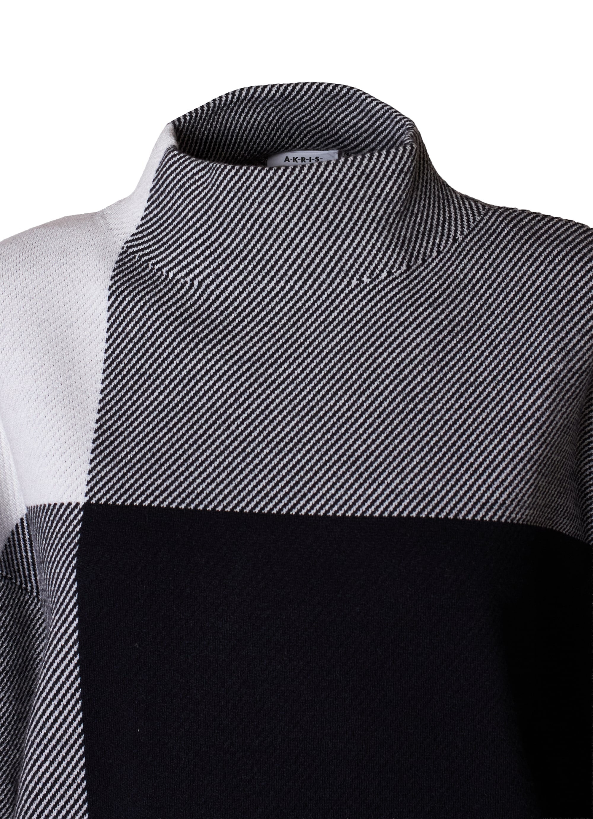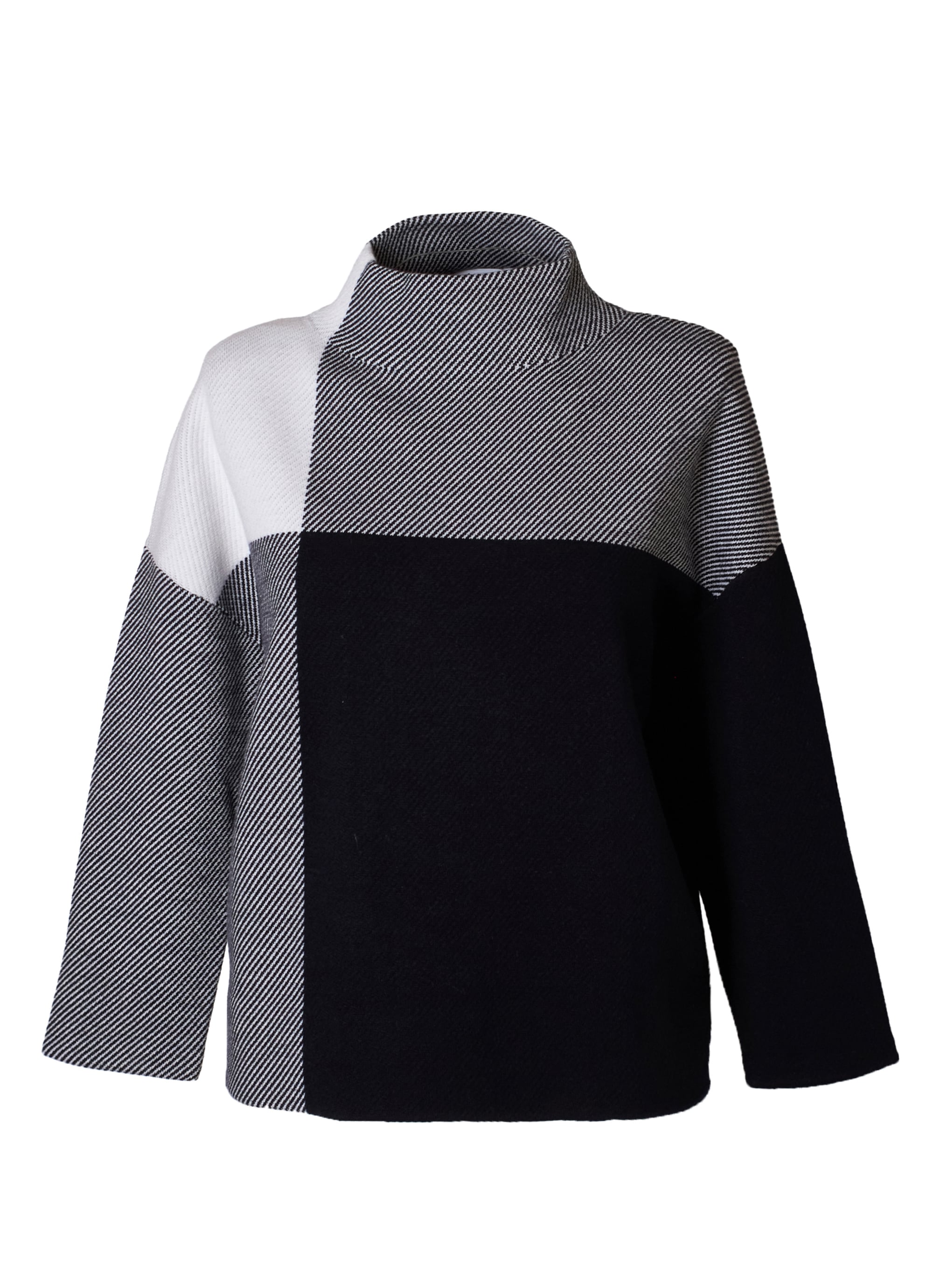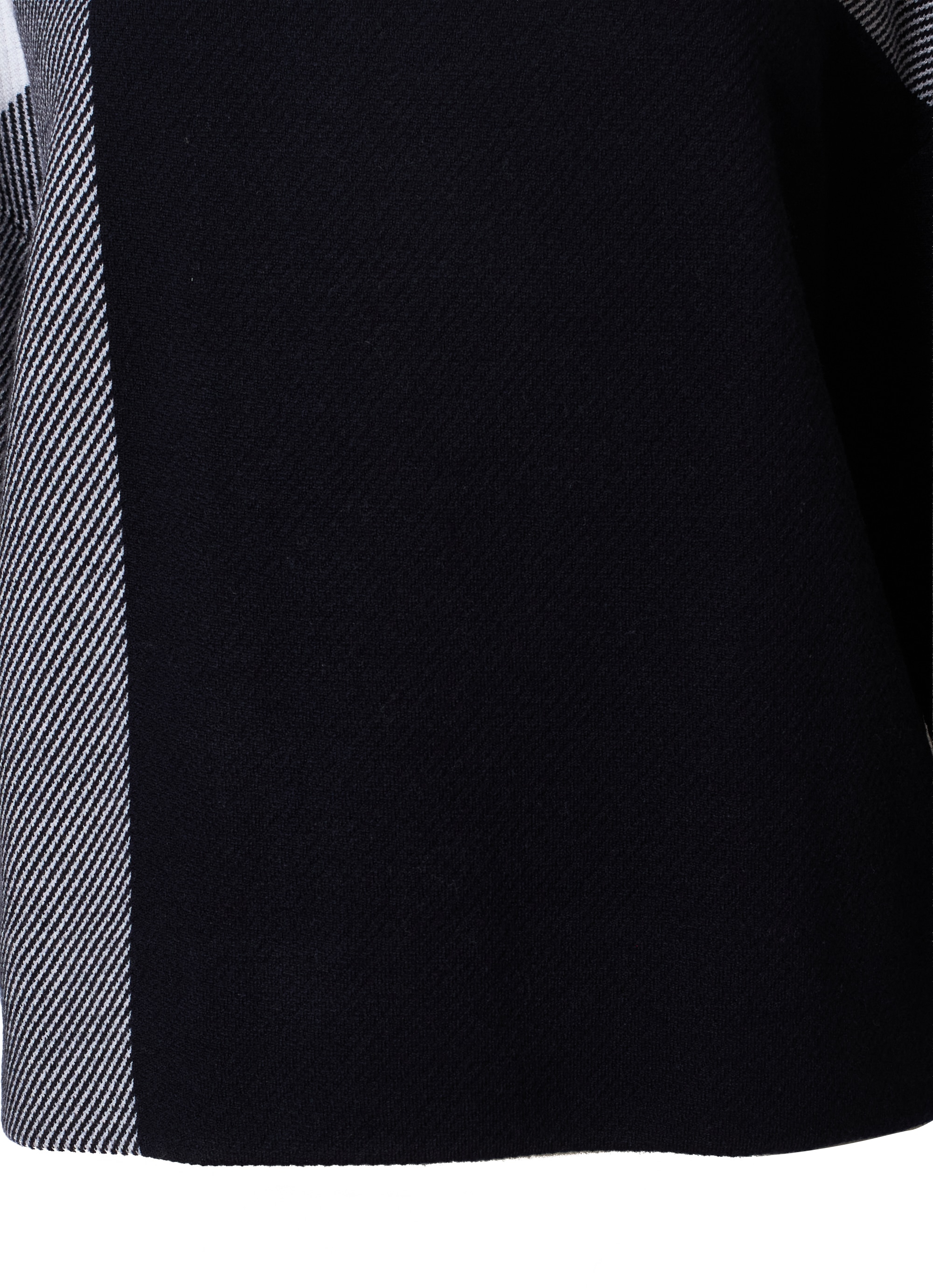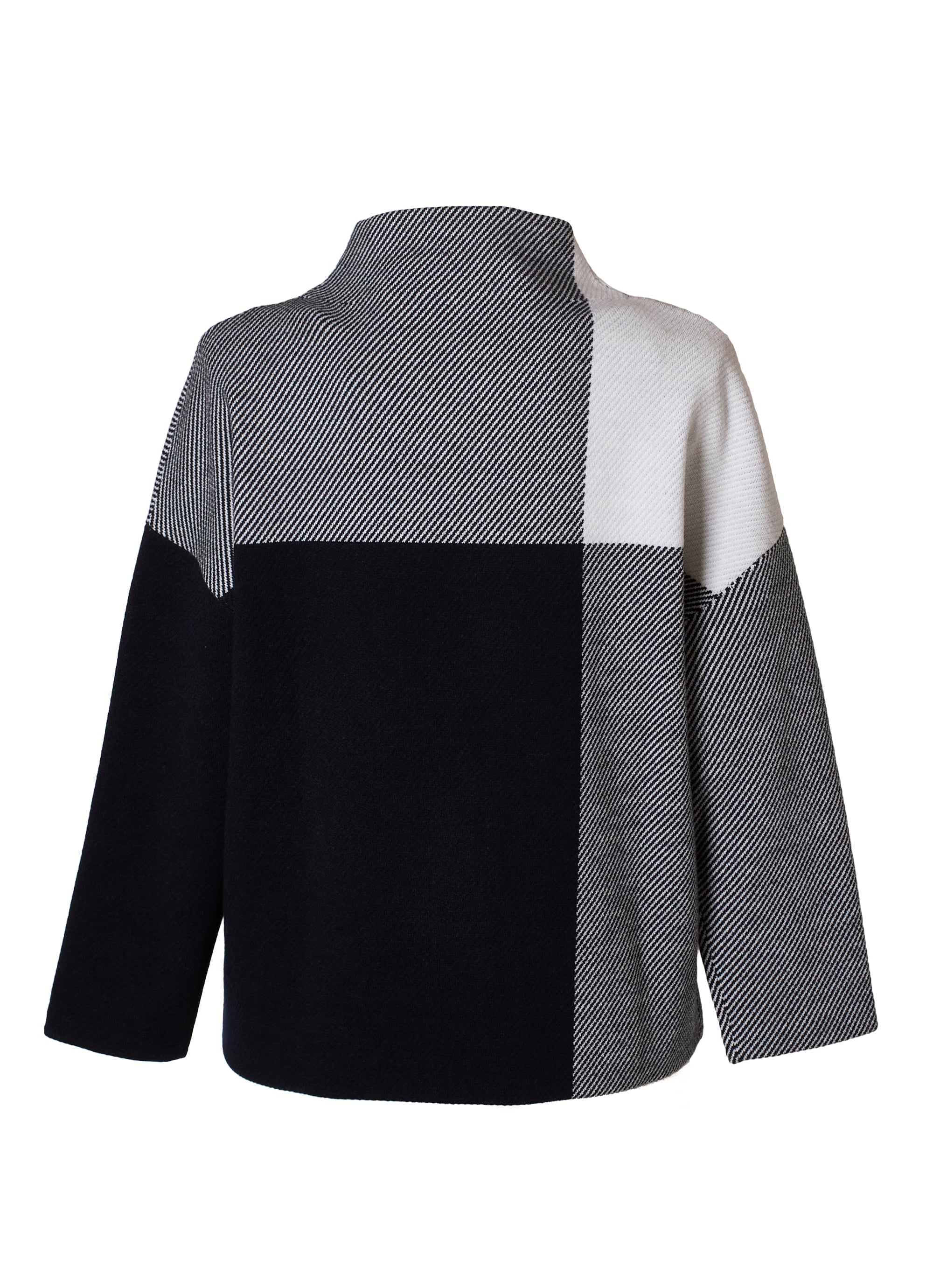クラシックなチェック柄を、洗練されたモノトーン配色と大胆な配置で再構築。
