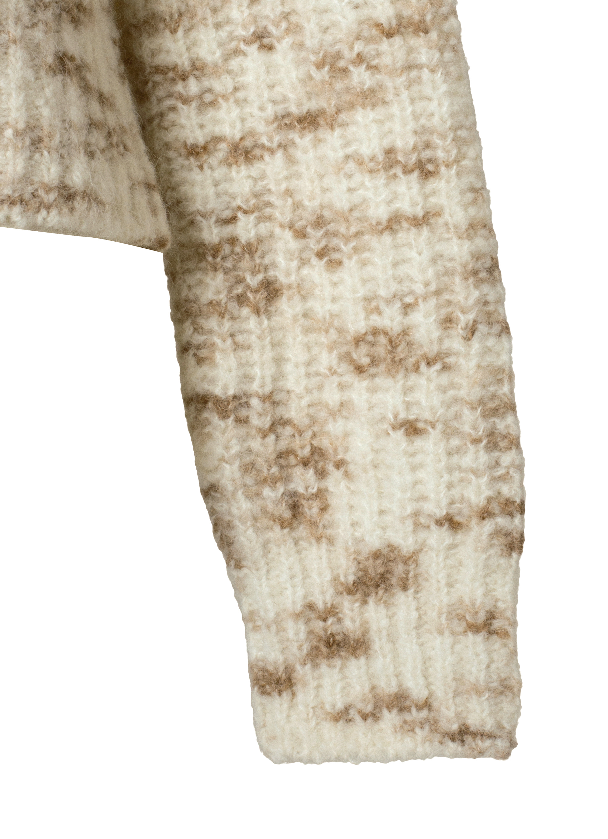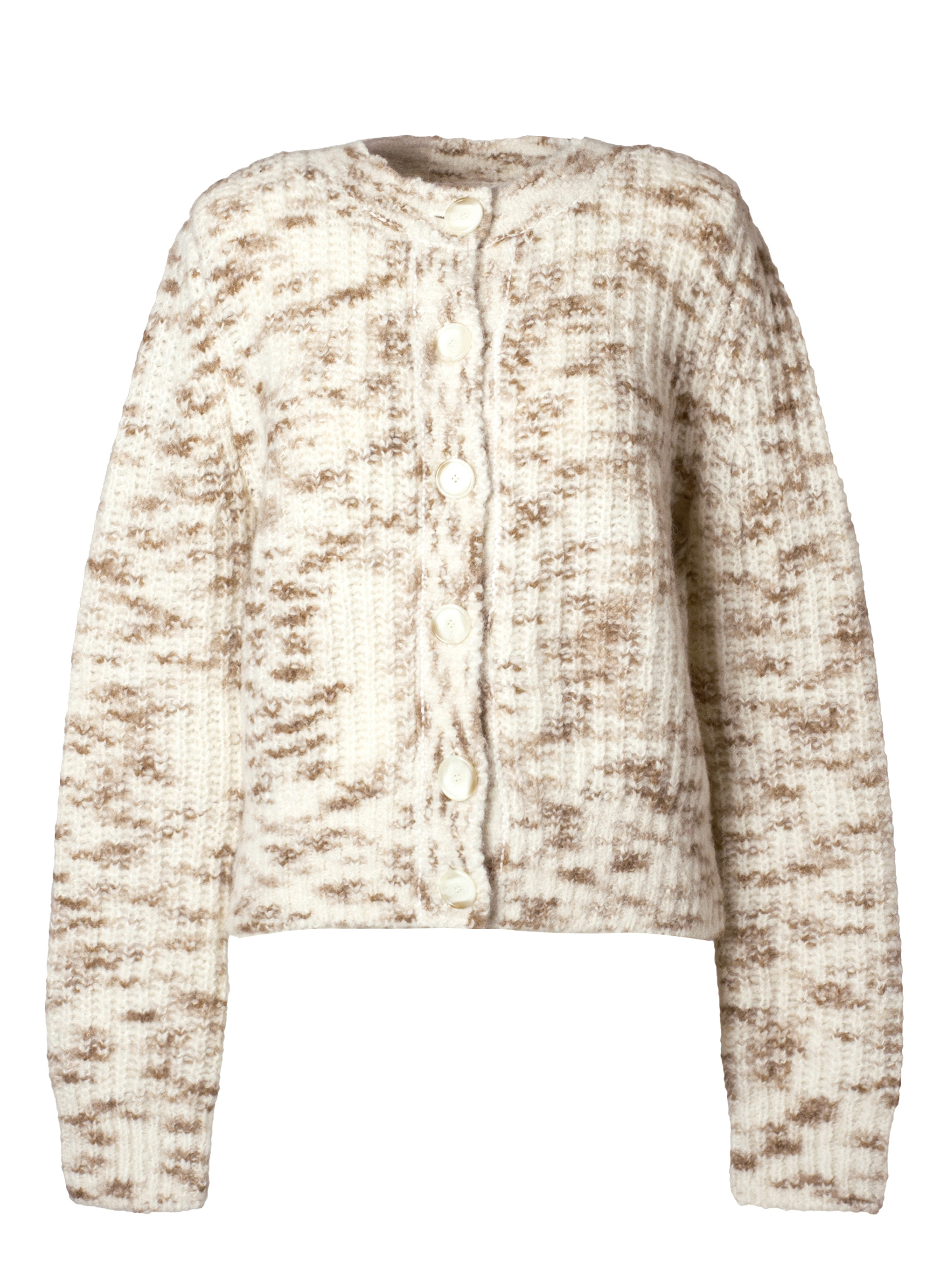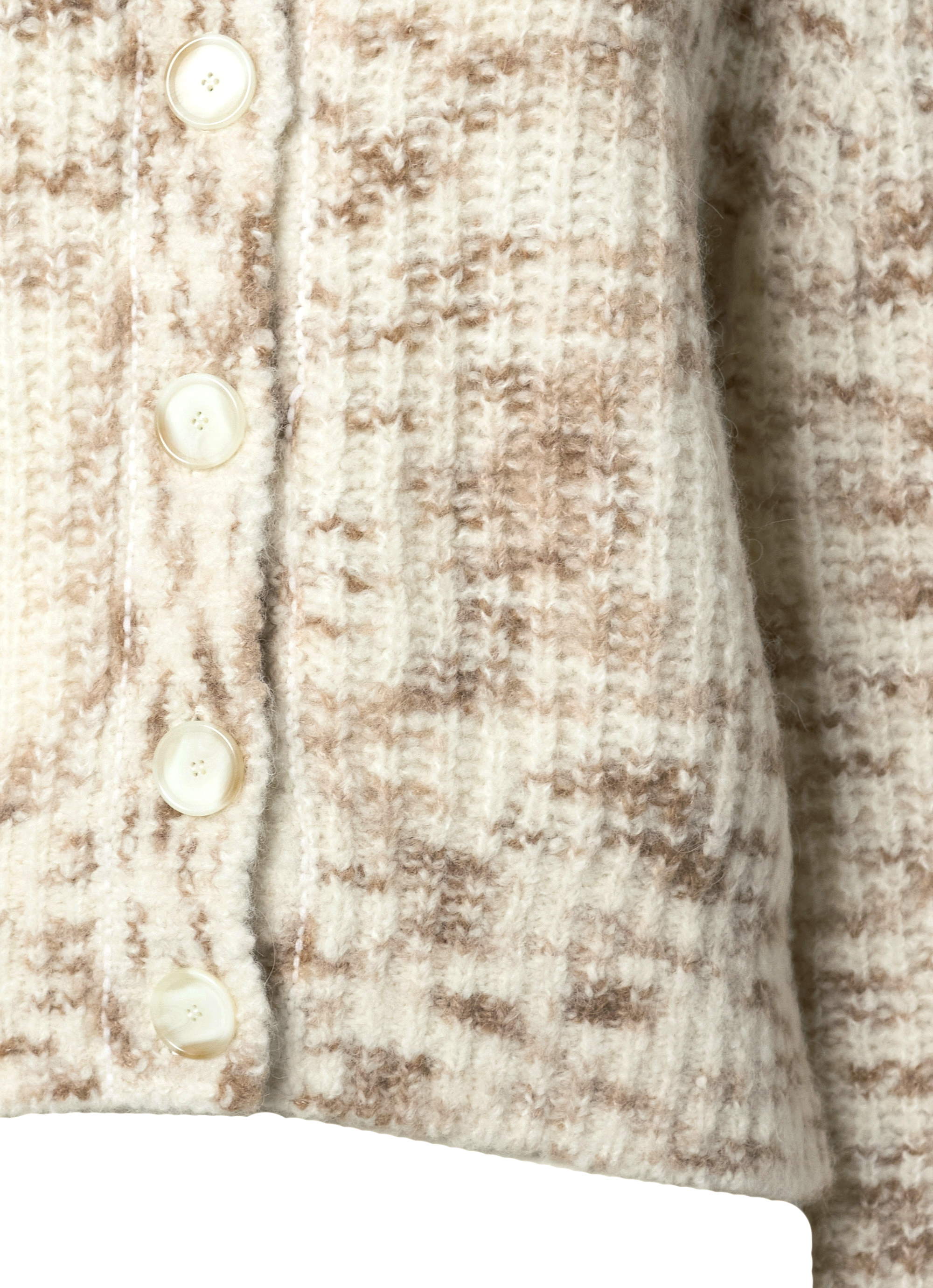モヘアツイードの表情豊かな編地のオーバーカーディガン。