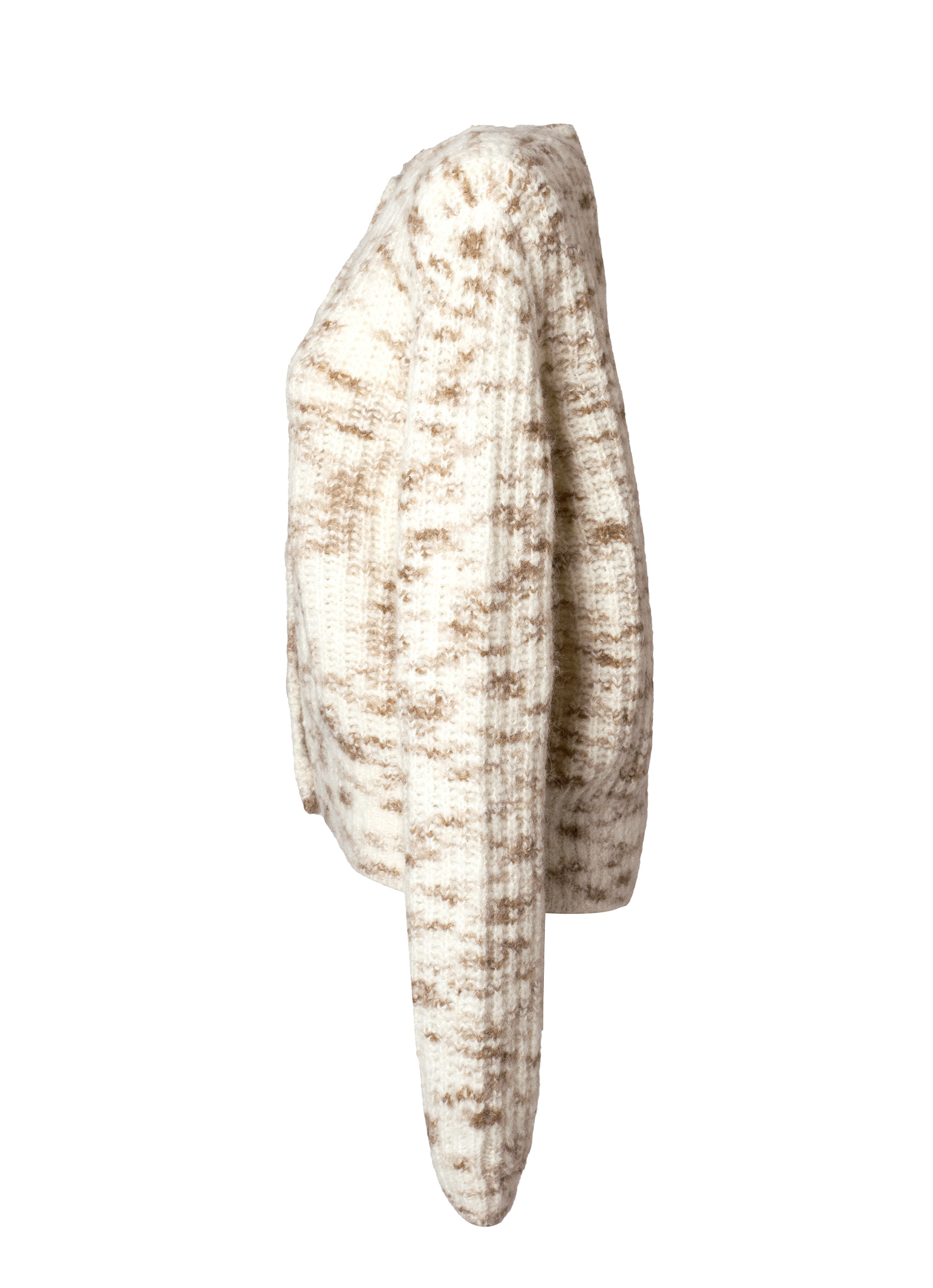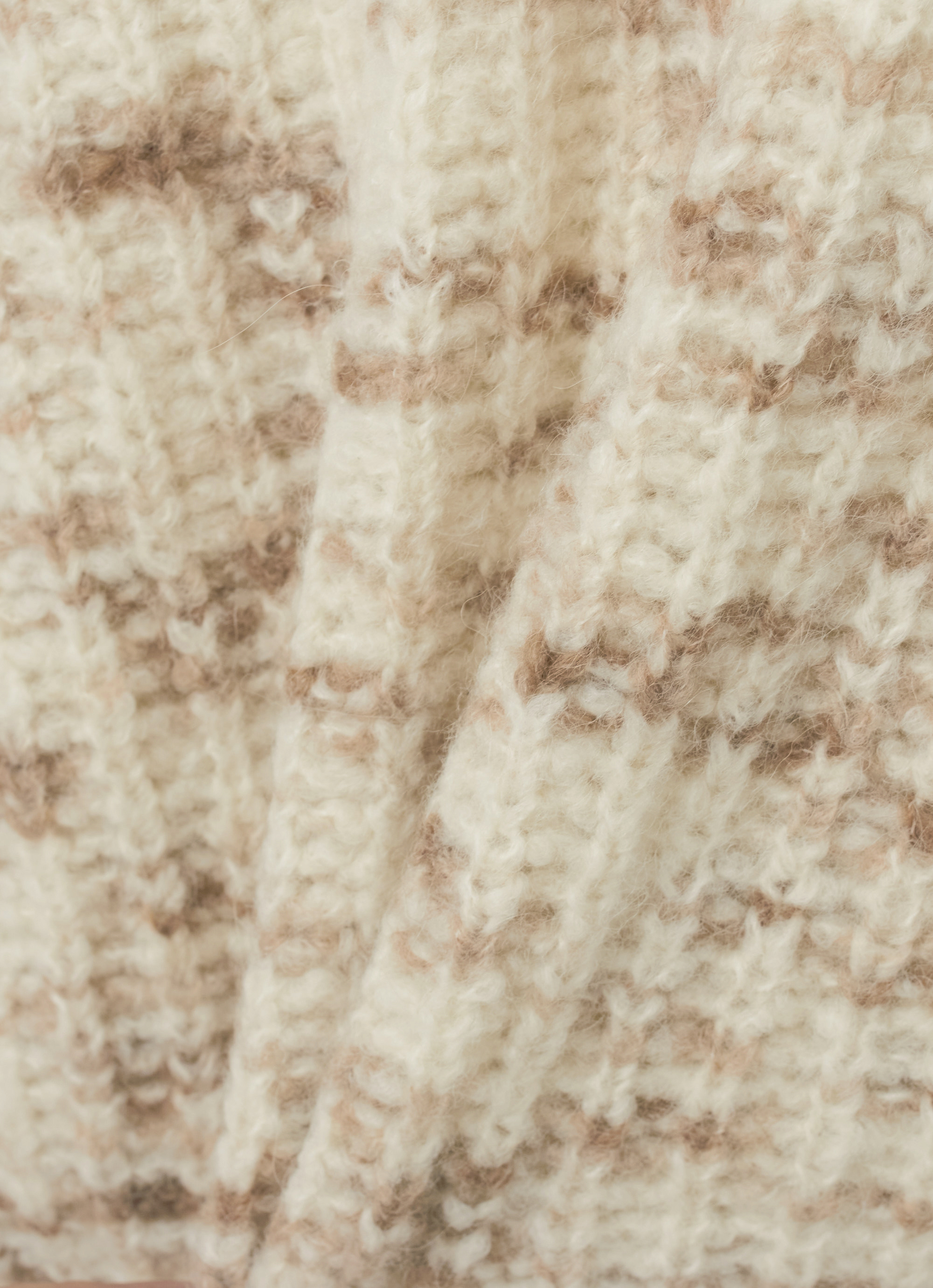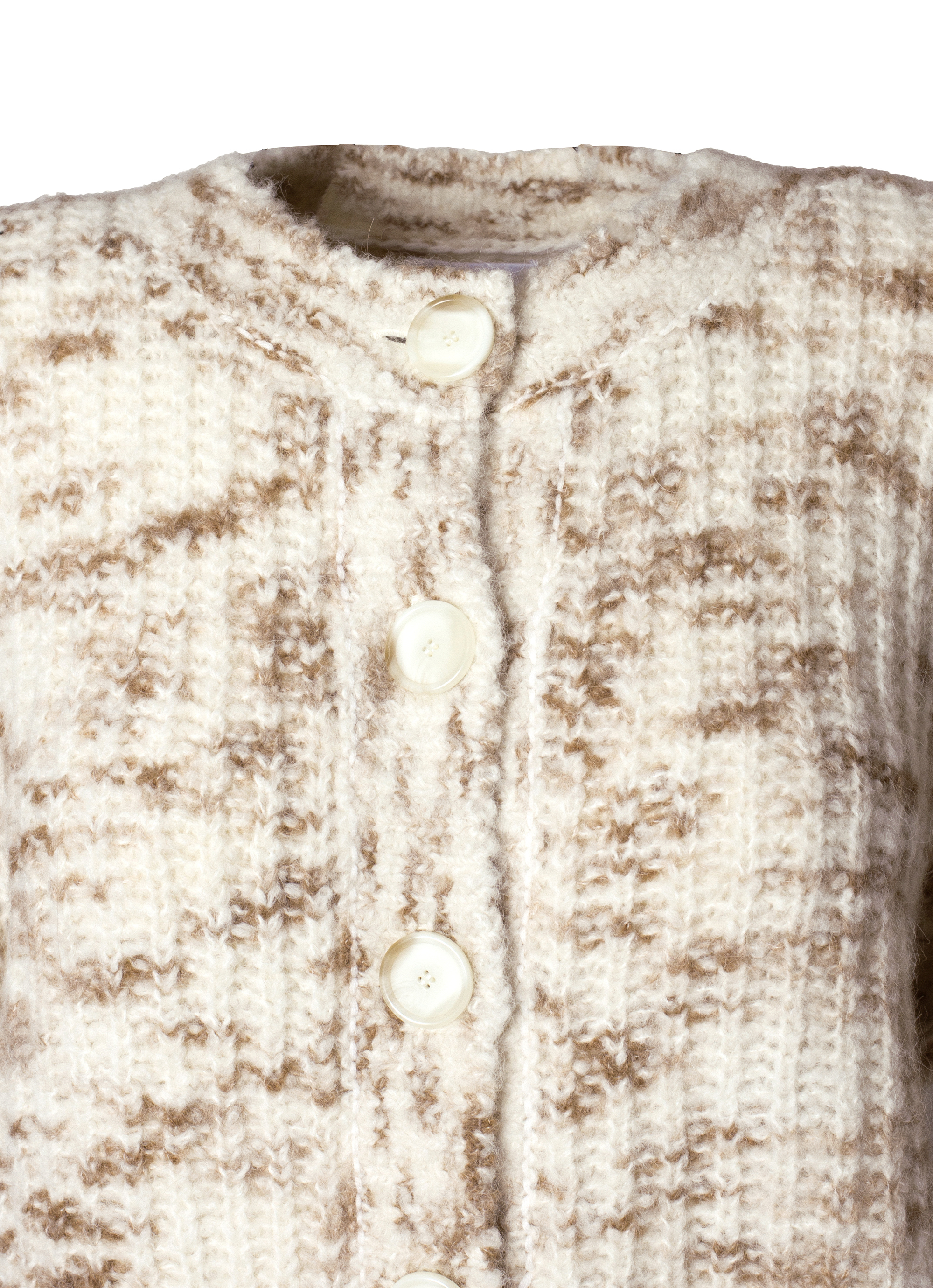 モヘアツイードの表情豊かな編地のオーバーカーディガン。