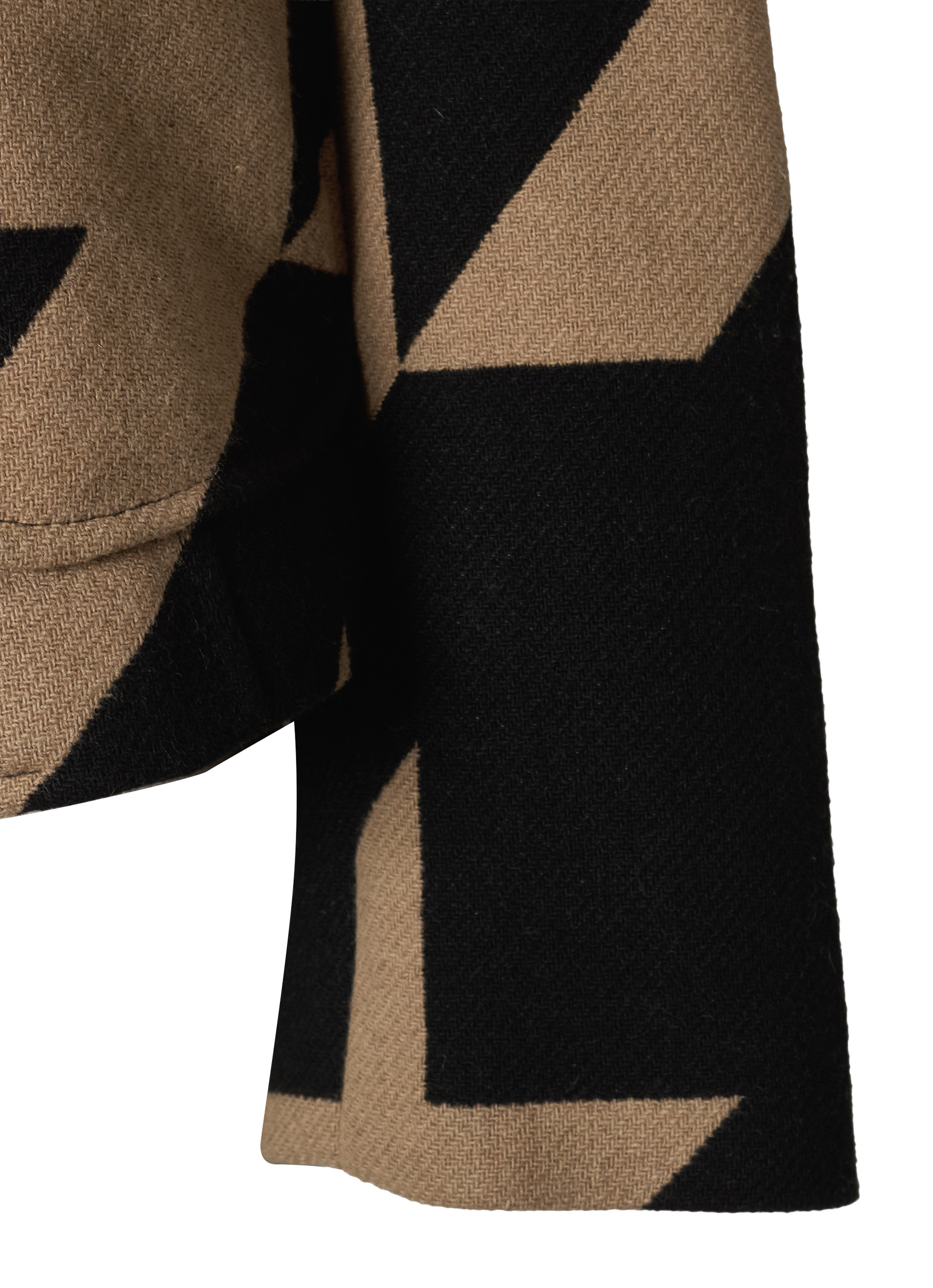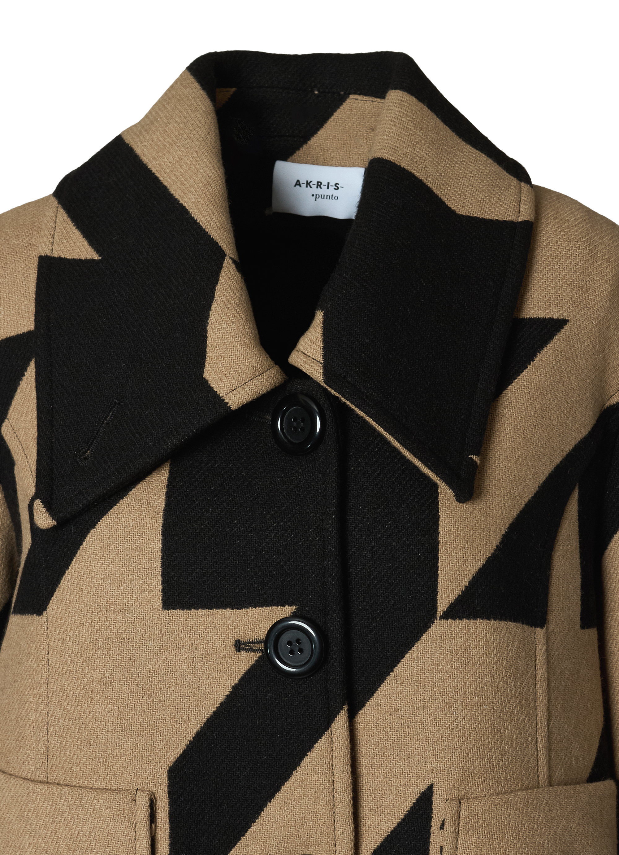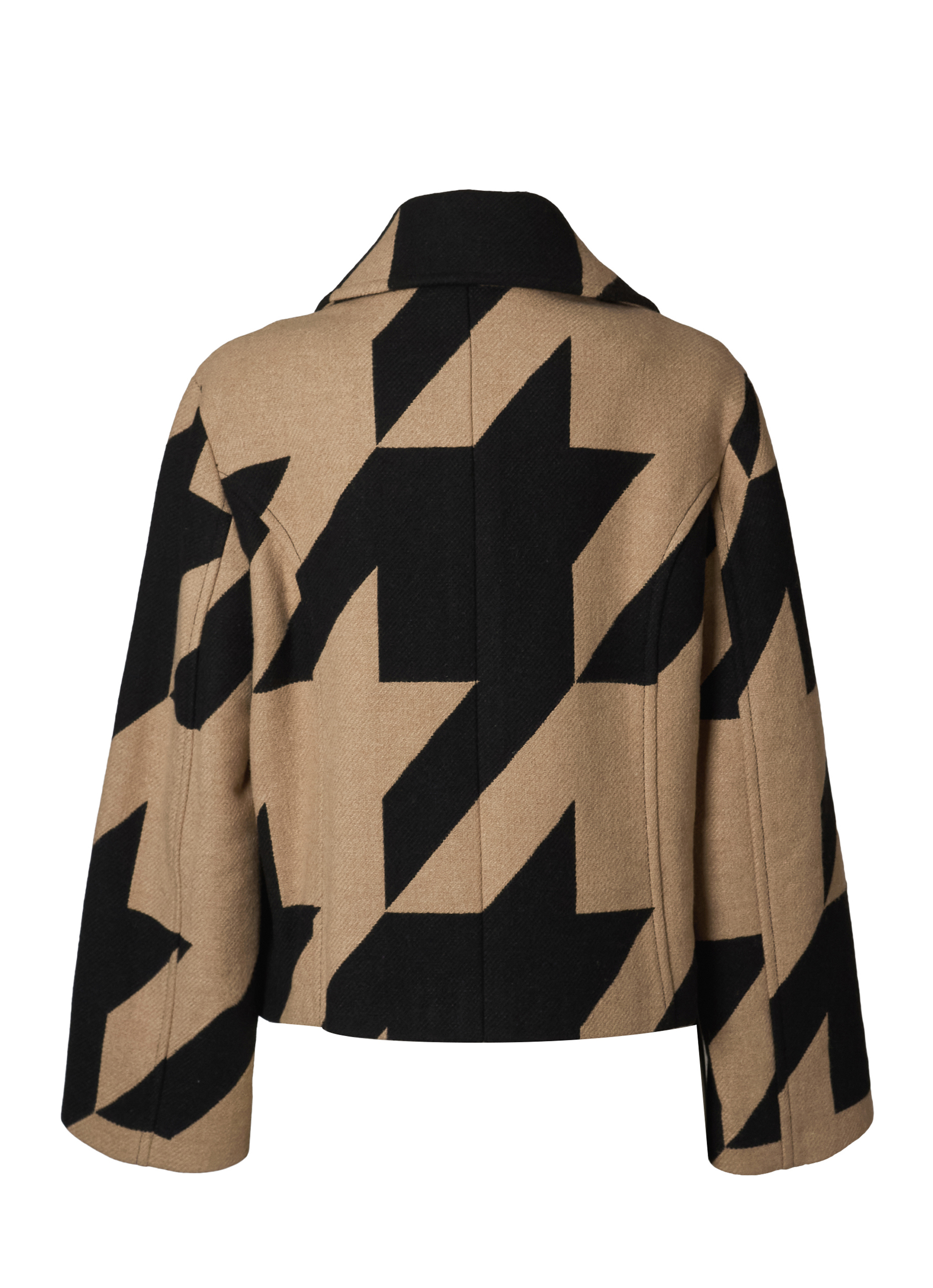 大胆なビッグサイズの千鳥格子柄が目を引く、ジャカード織りのジャケット。