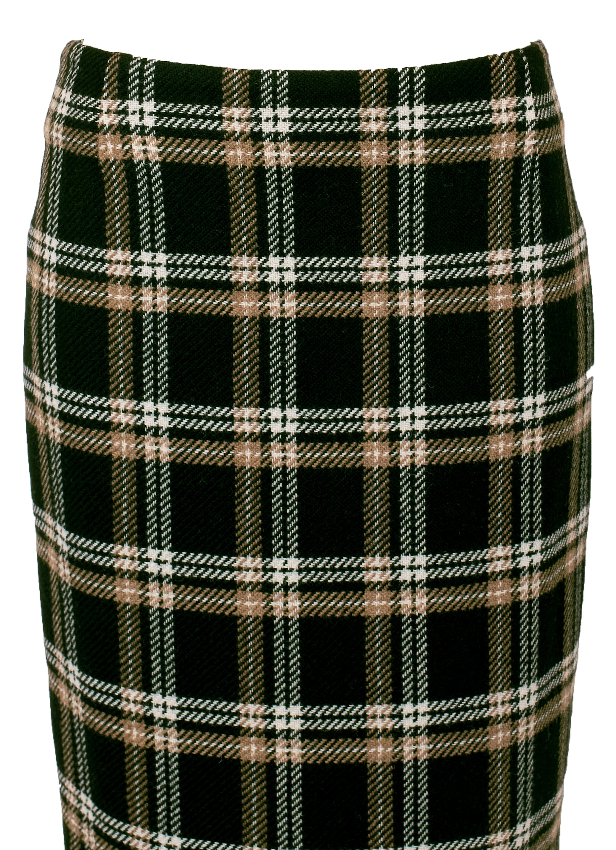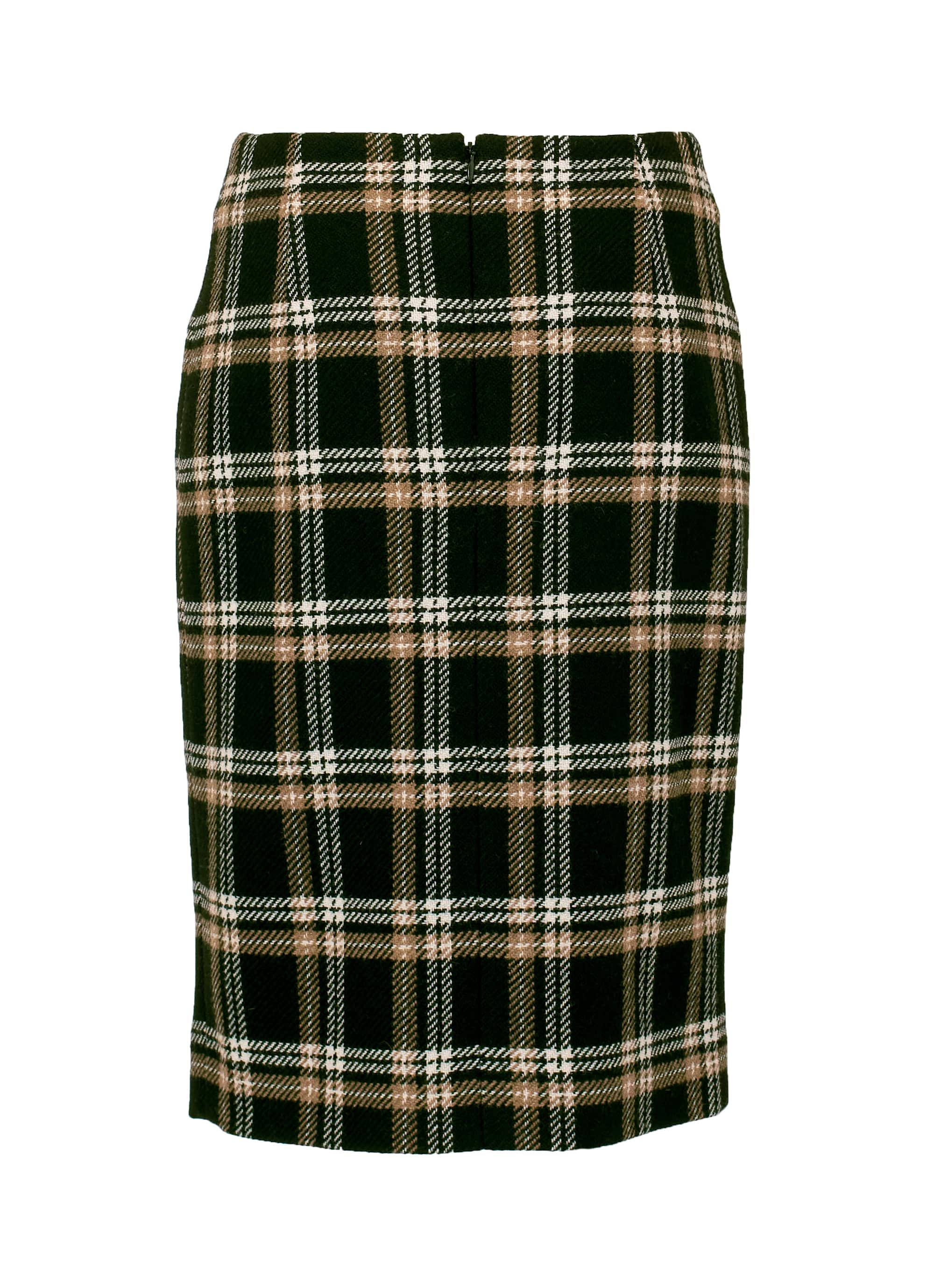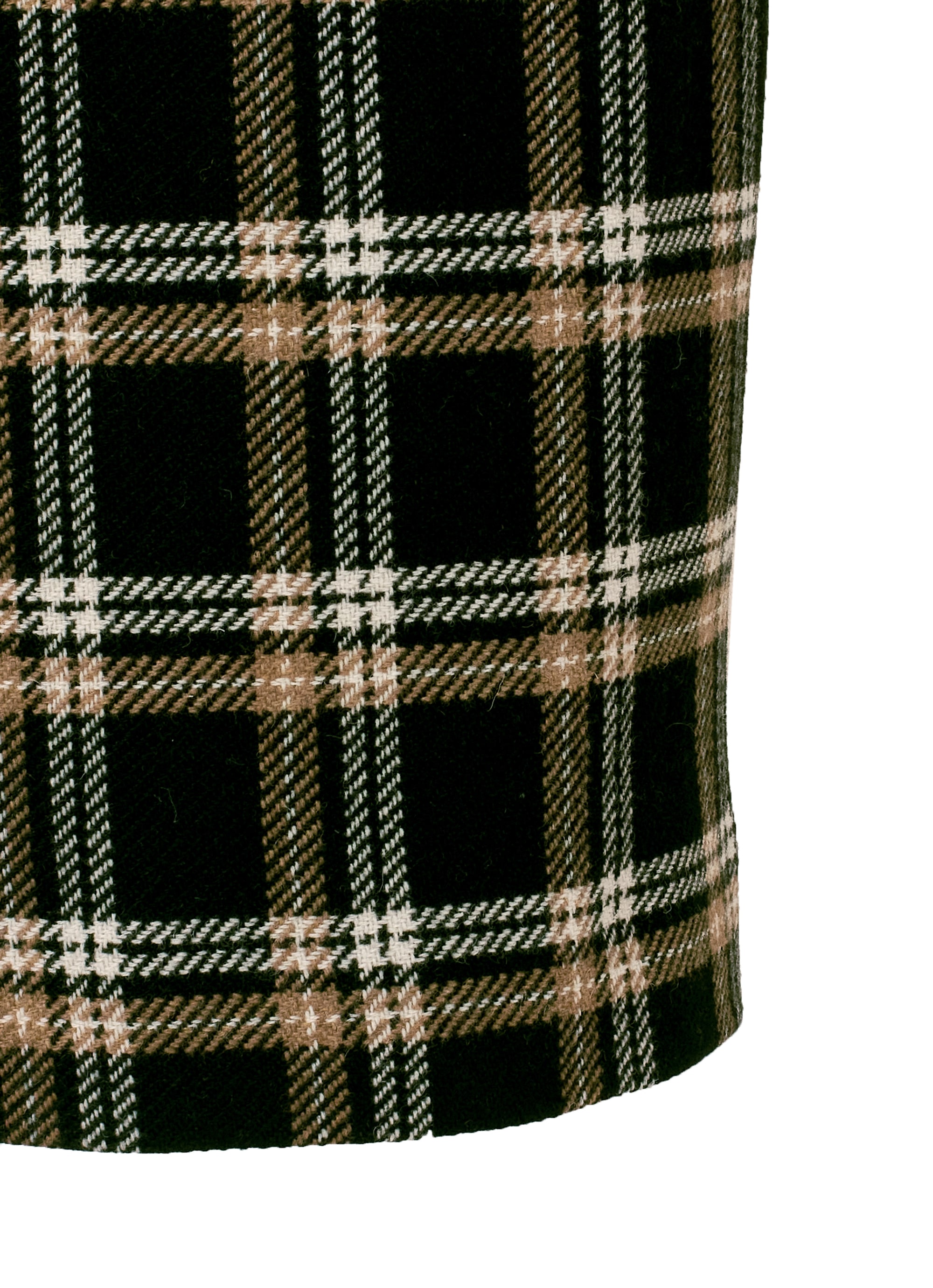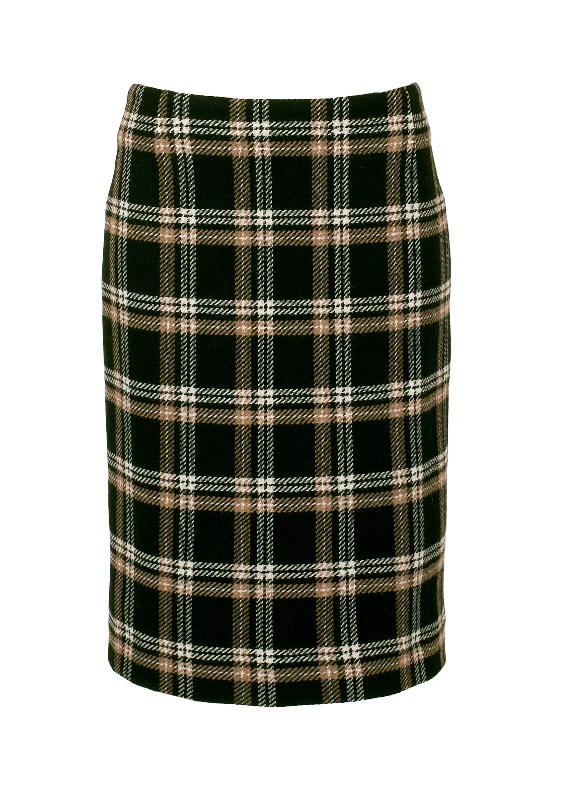 暖かみのあるウールにポリエステルをブレンドした、軽やかで型崩れしにくいチェック柄スカート。