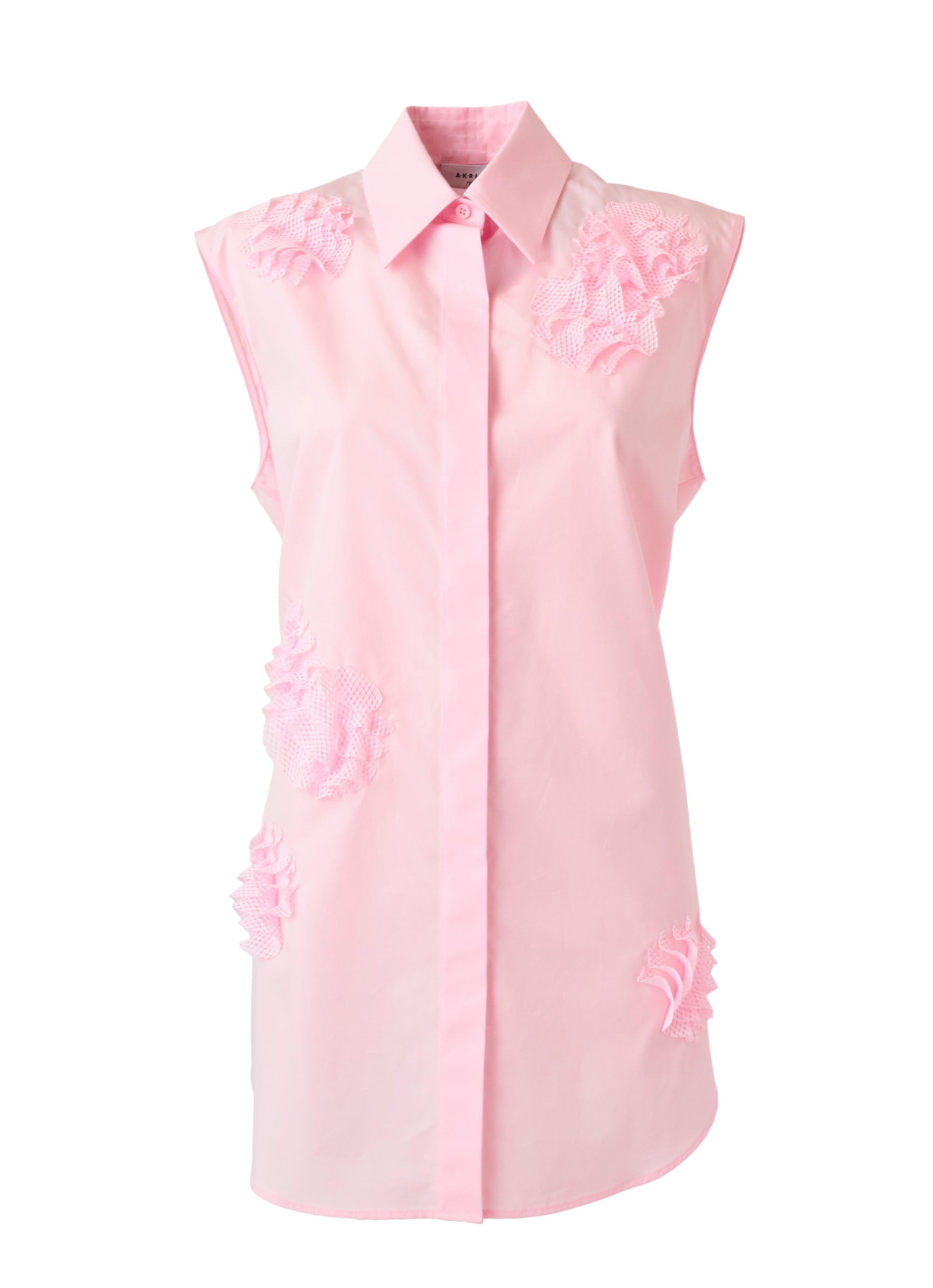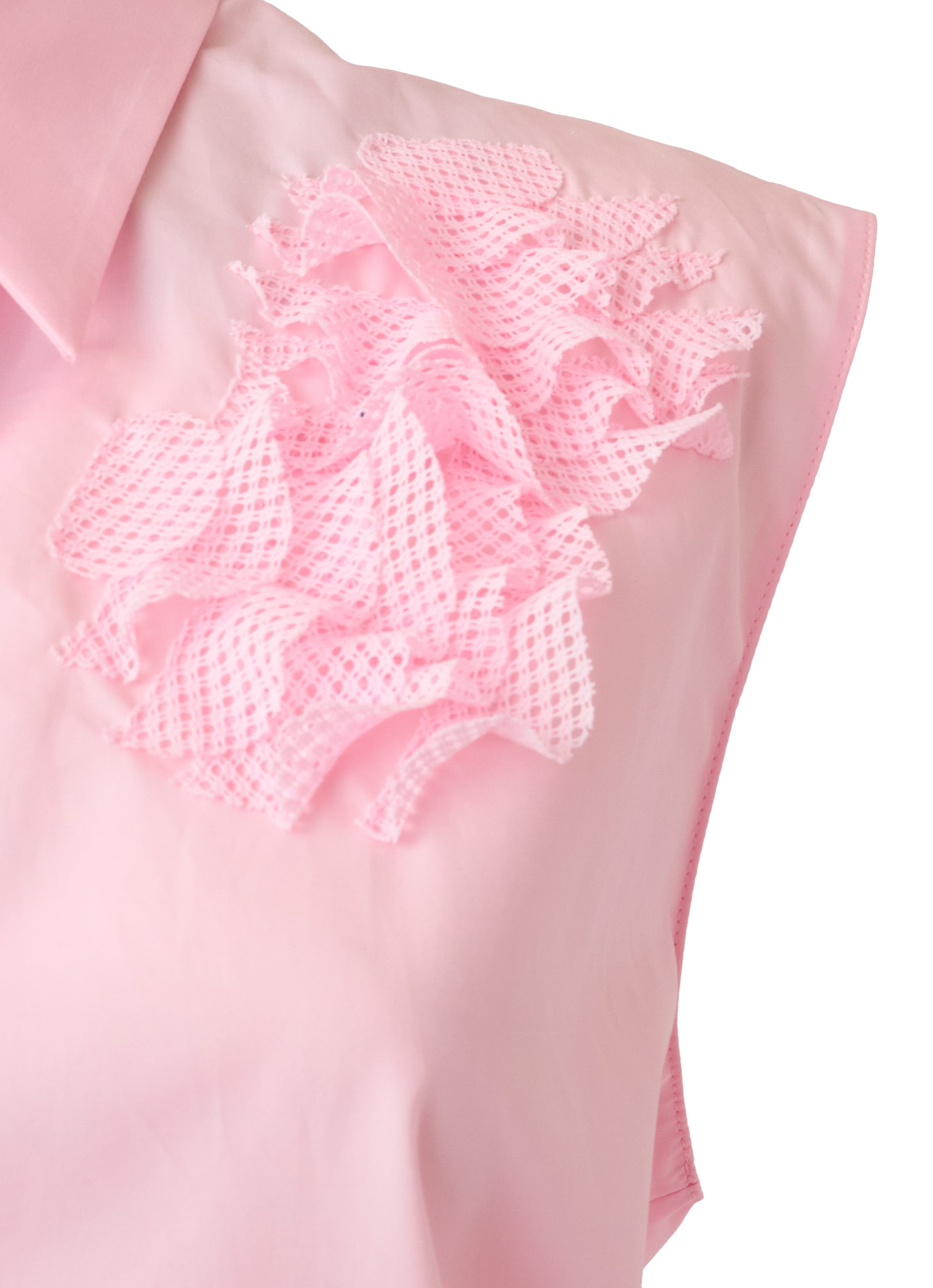 カーネーションをモチーフにした3Dアプリケーションが印象的なコットンポプリンブラウス。
