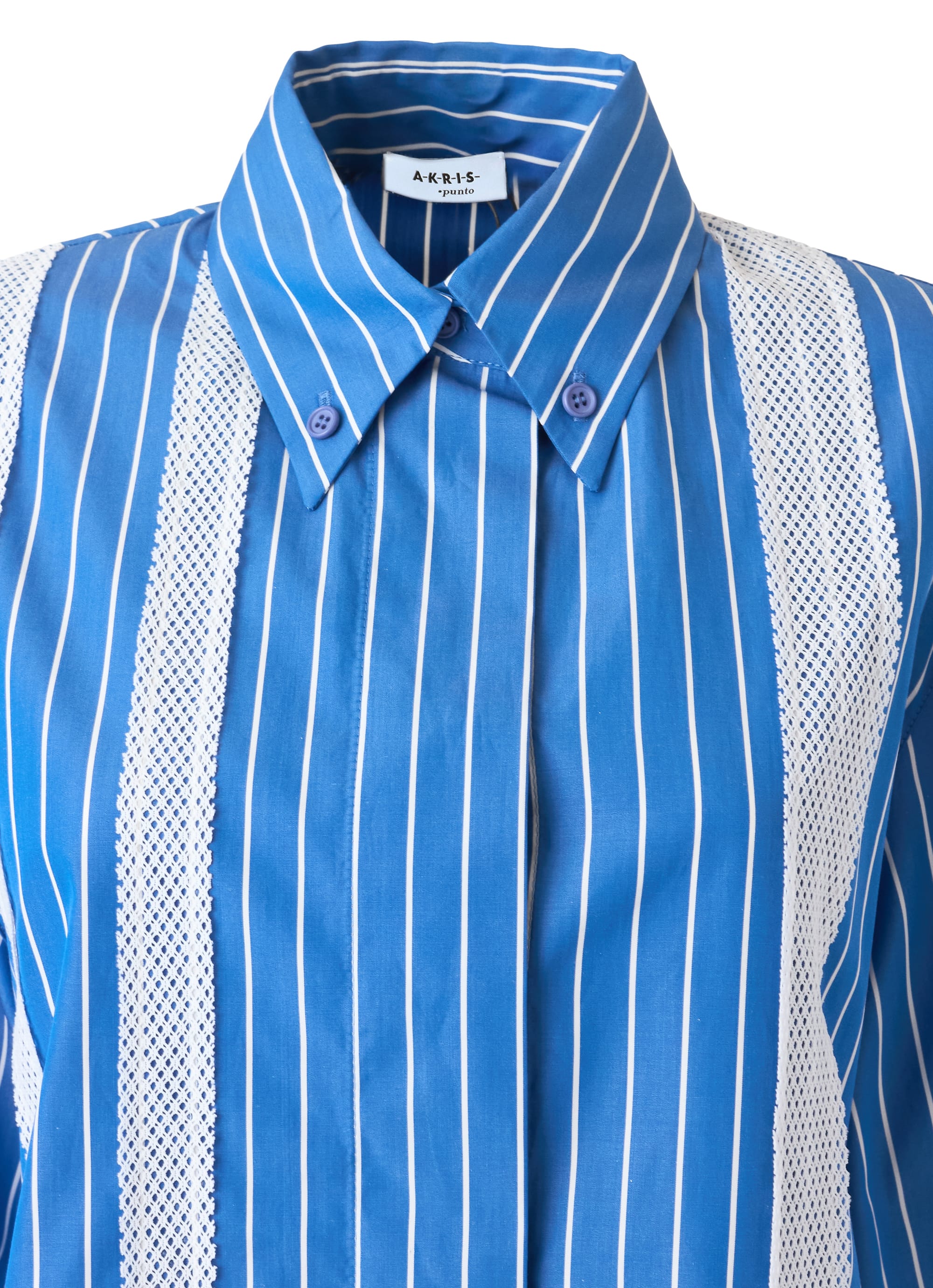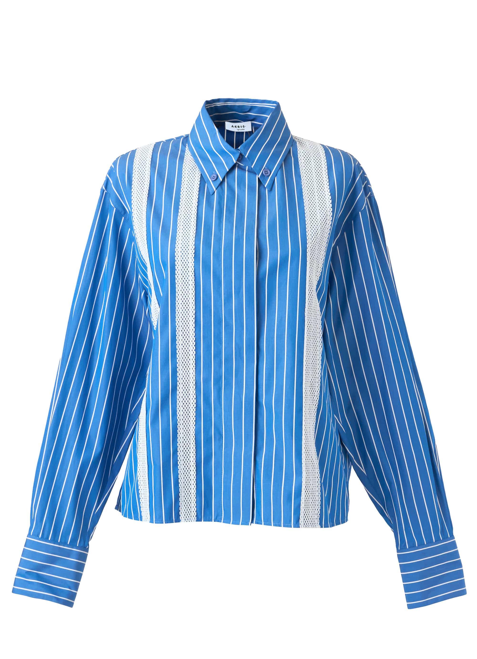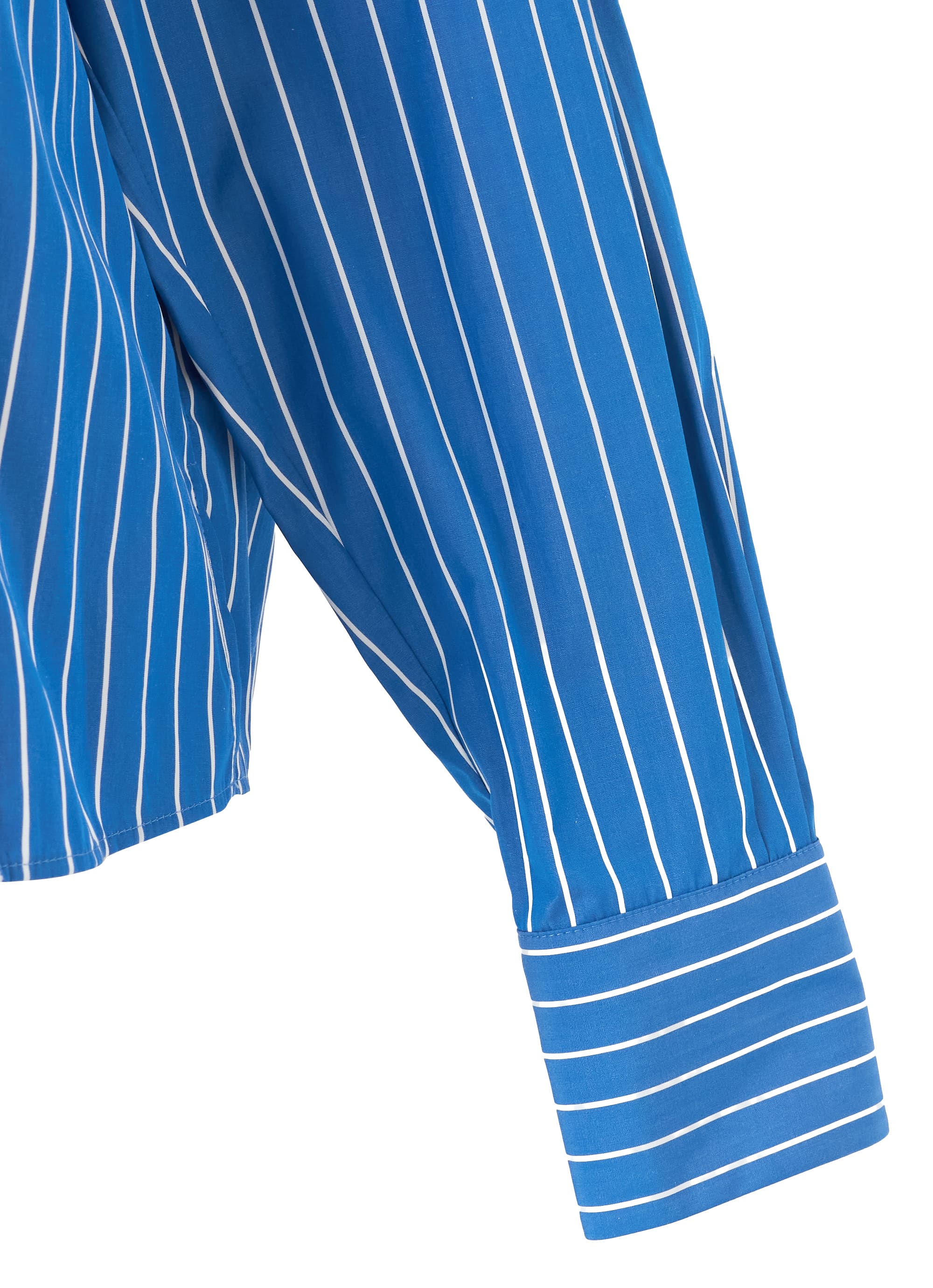 柔らかく滑らかなコットンポプリンに、クラシックなパジャマストライプをのせたクロップドブラウス。