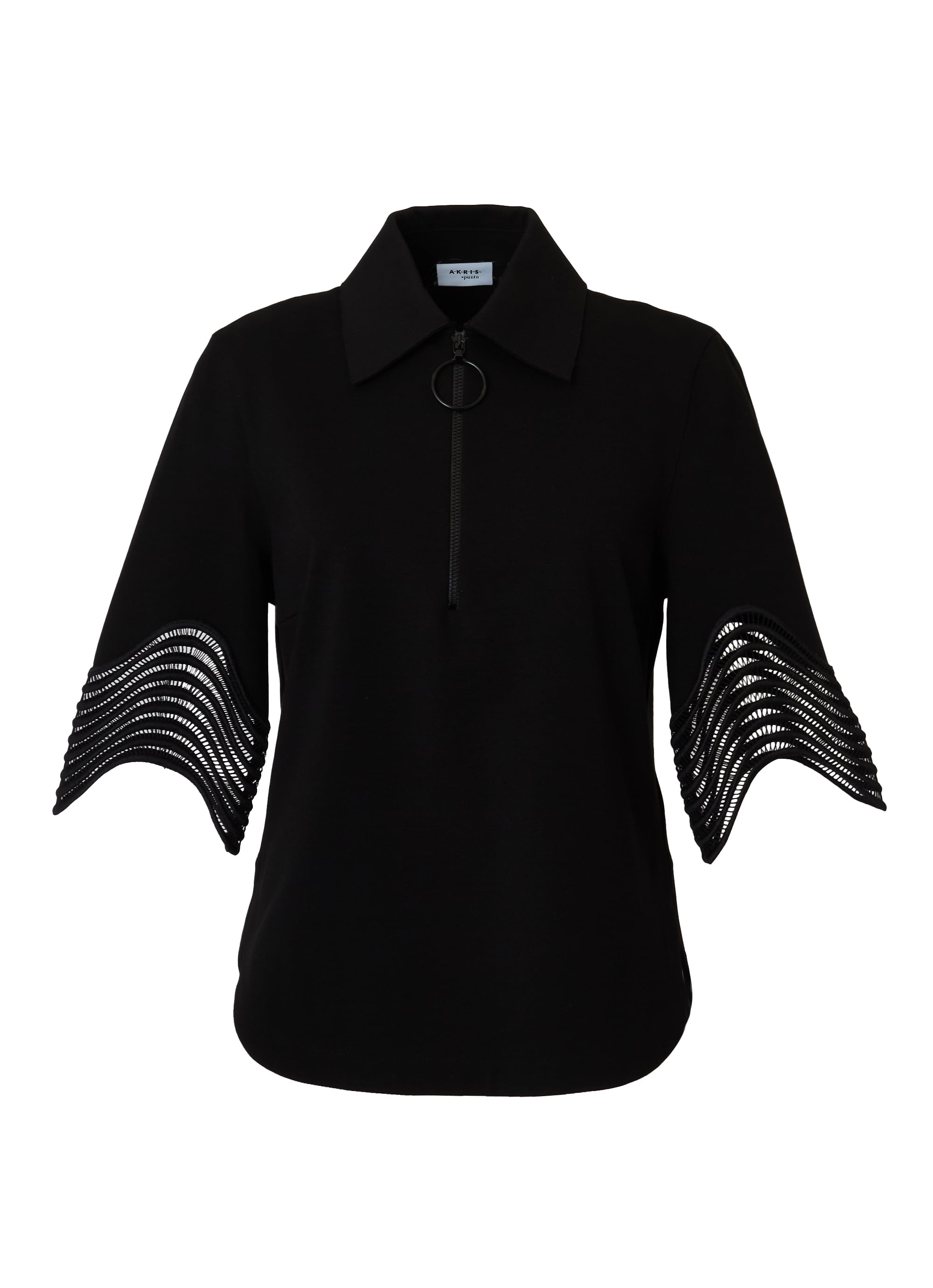 ビスコースジャージーを使用したハーフジップシャツ。