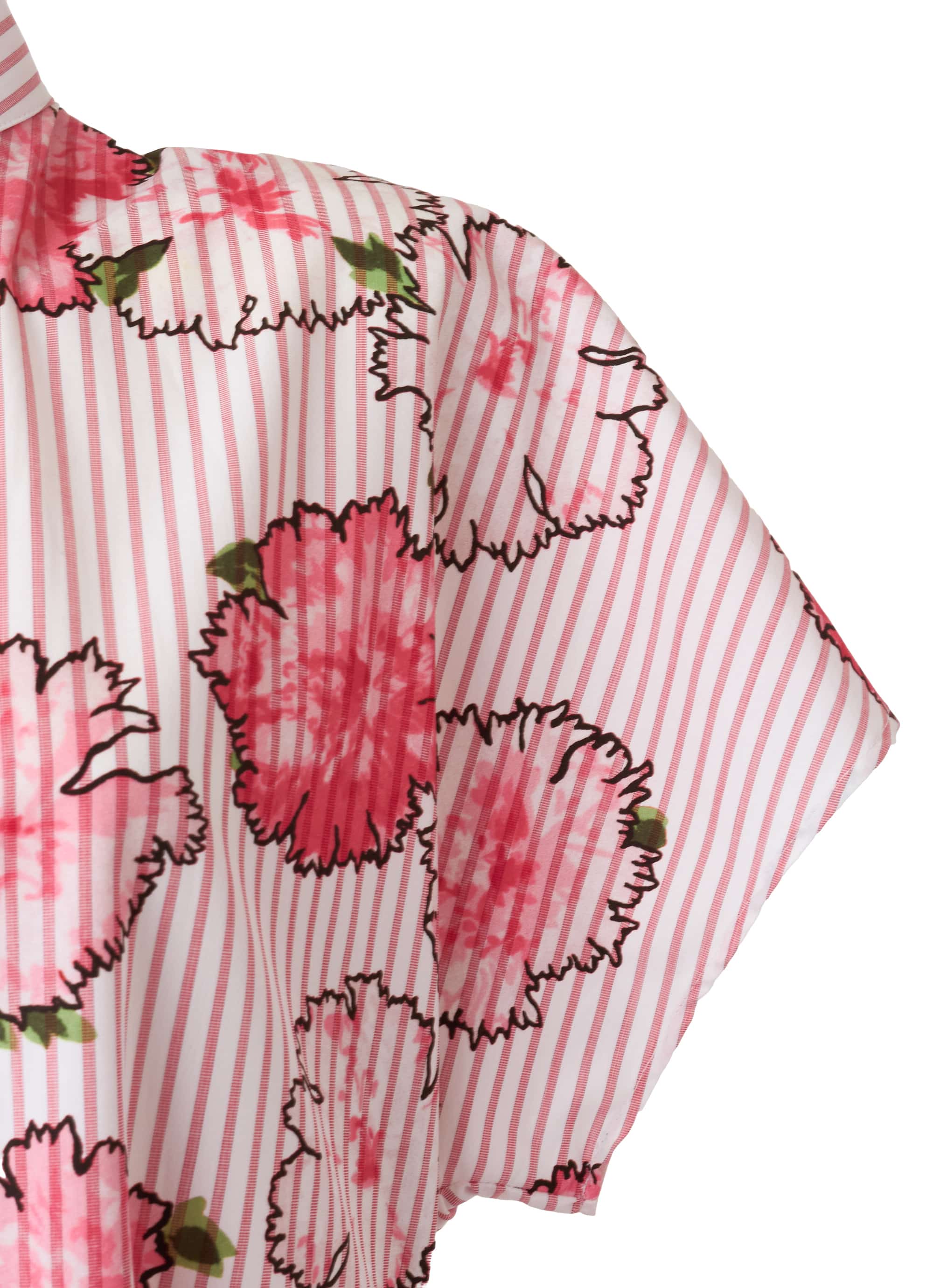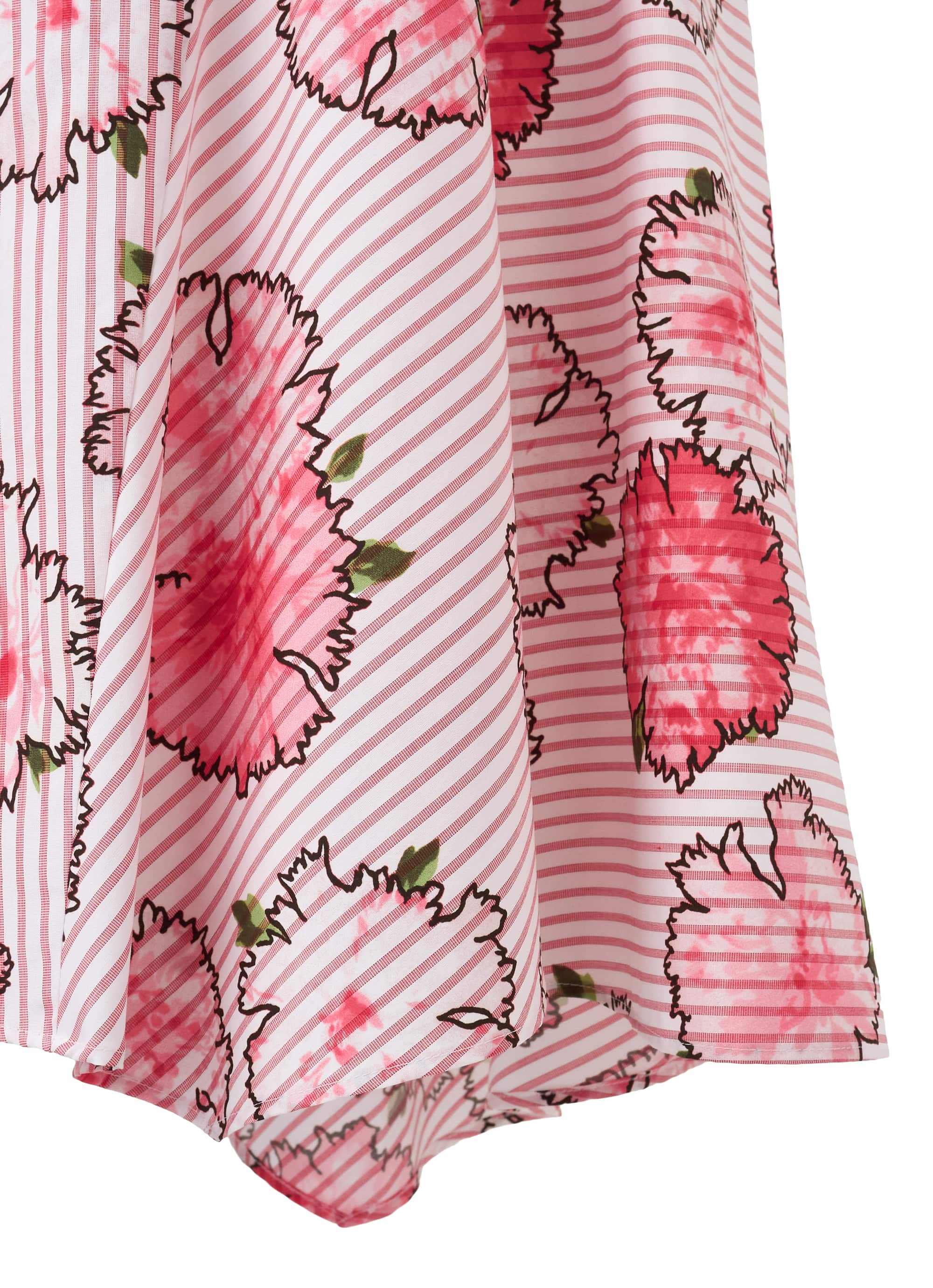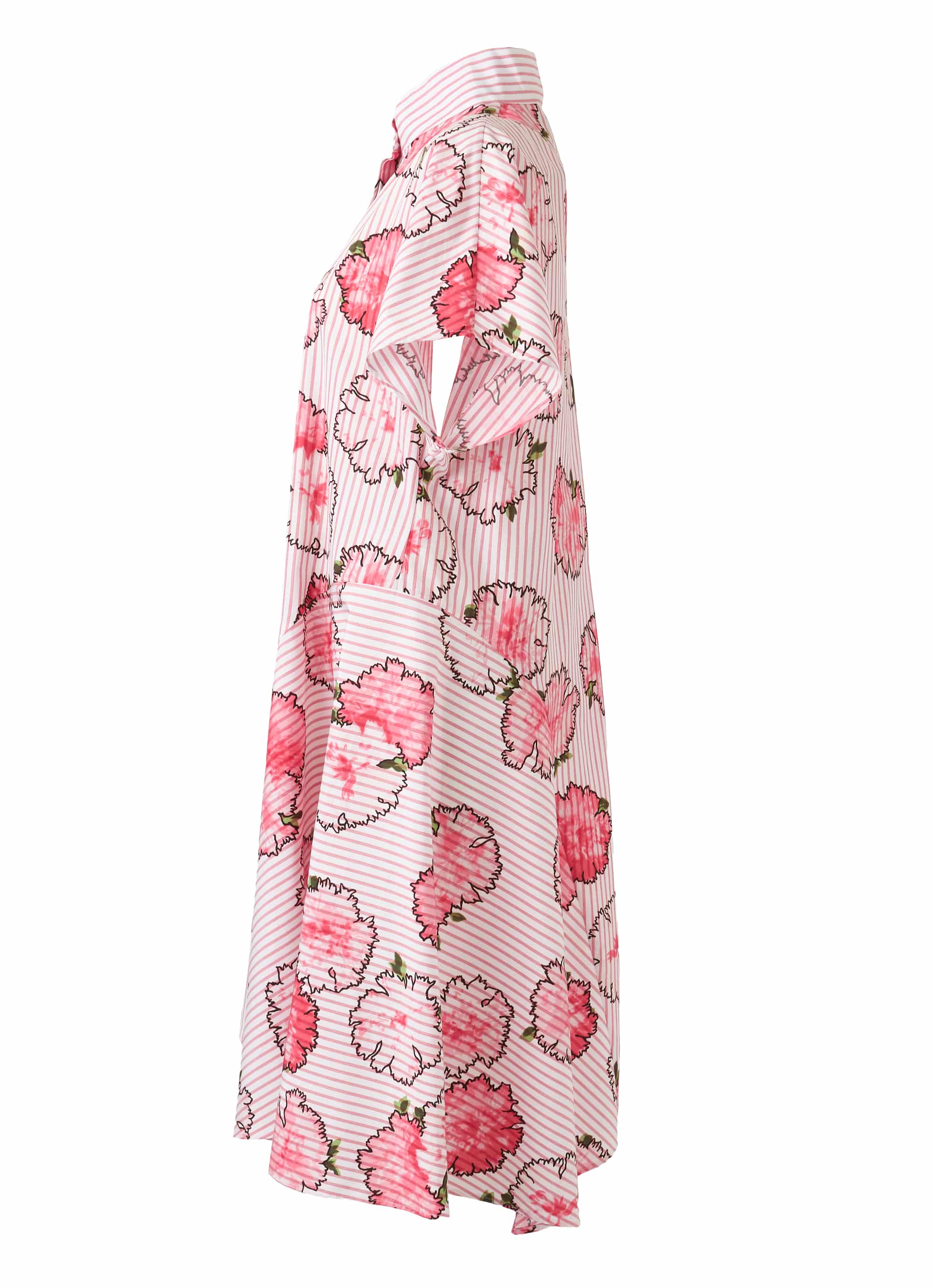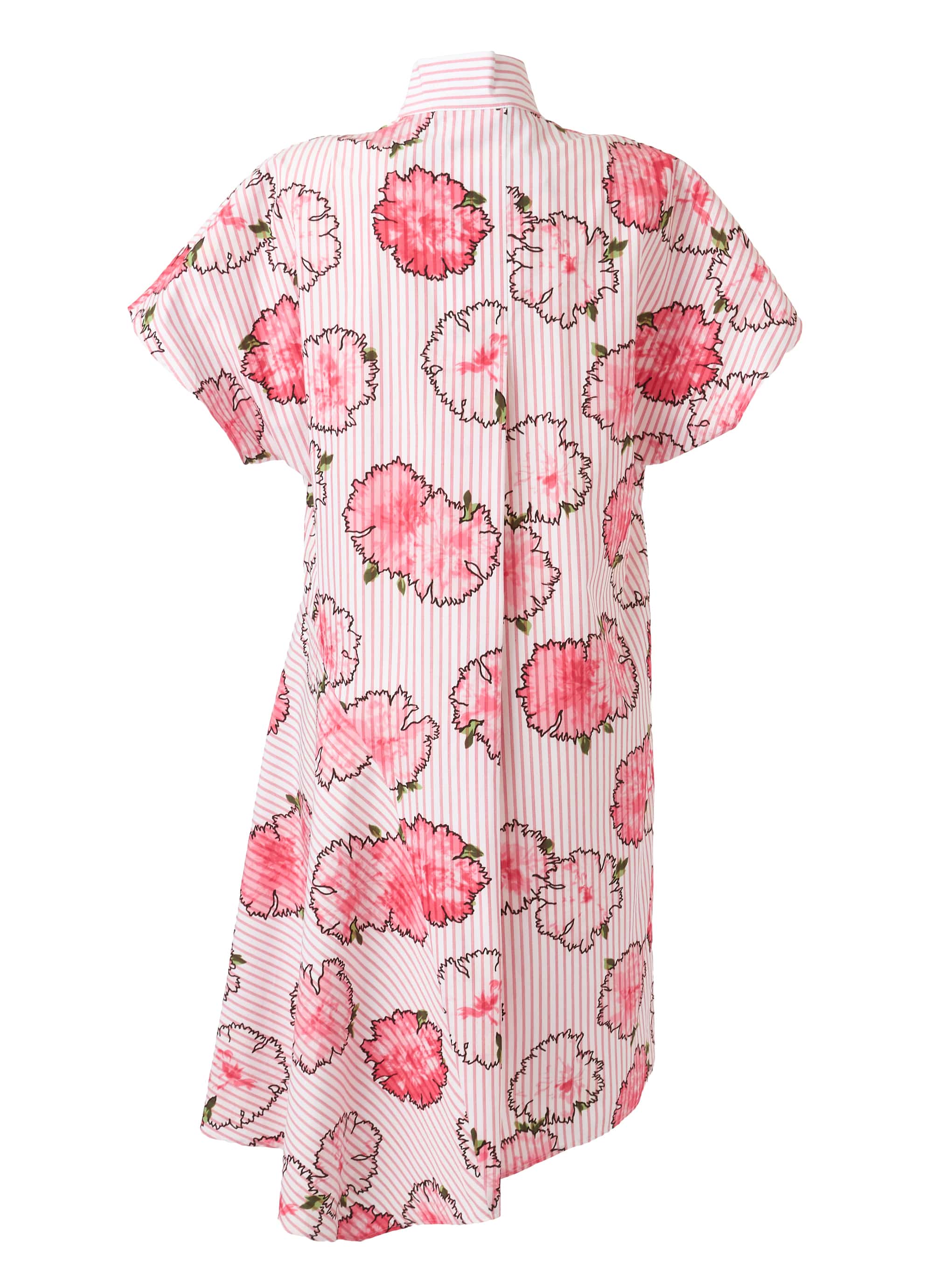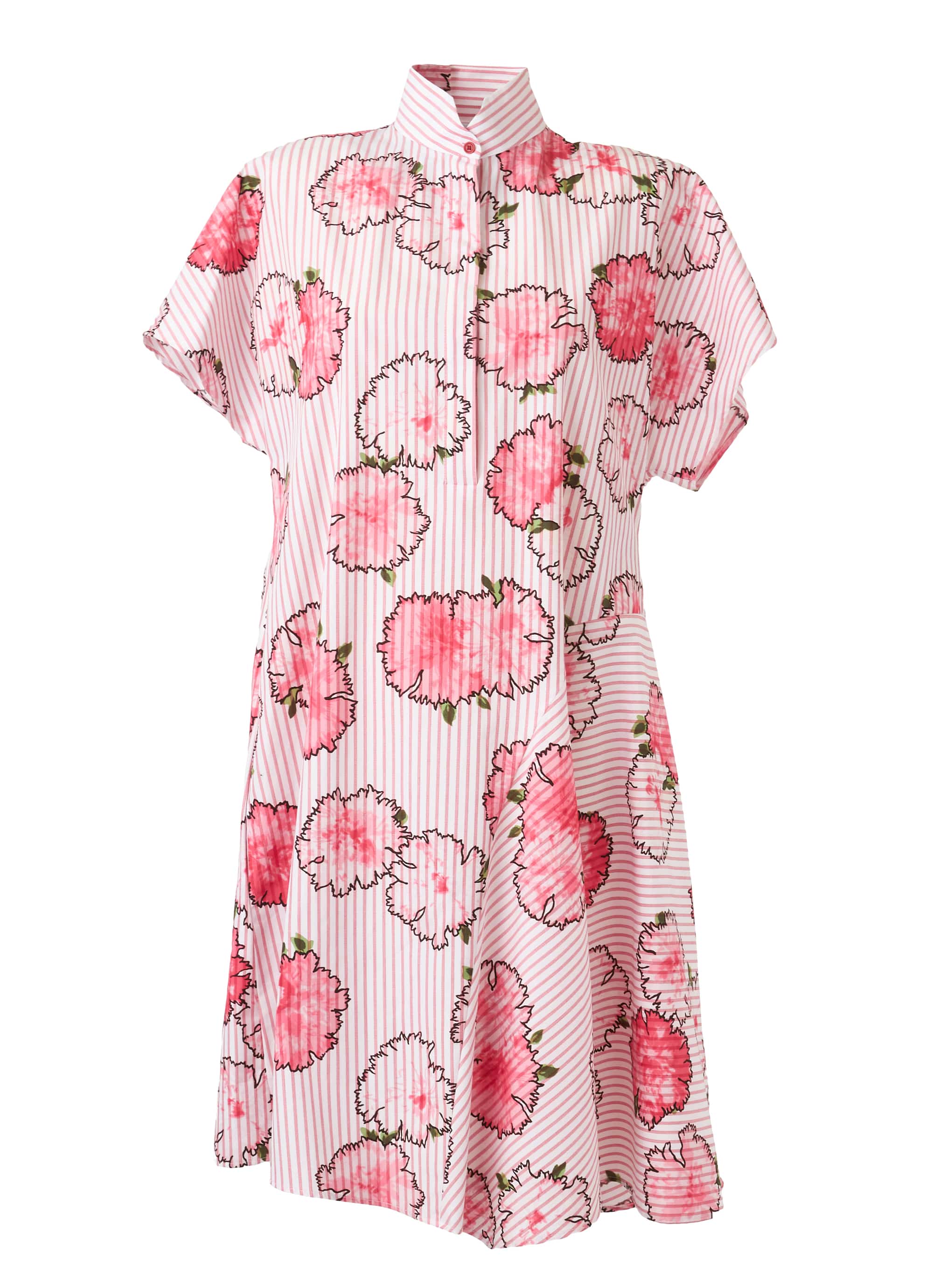 カーネーションプリントが特徴的なコットンポプリンドレス。