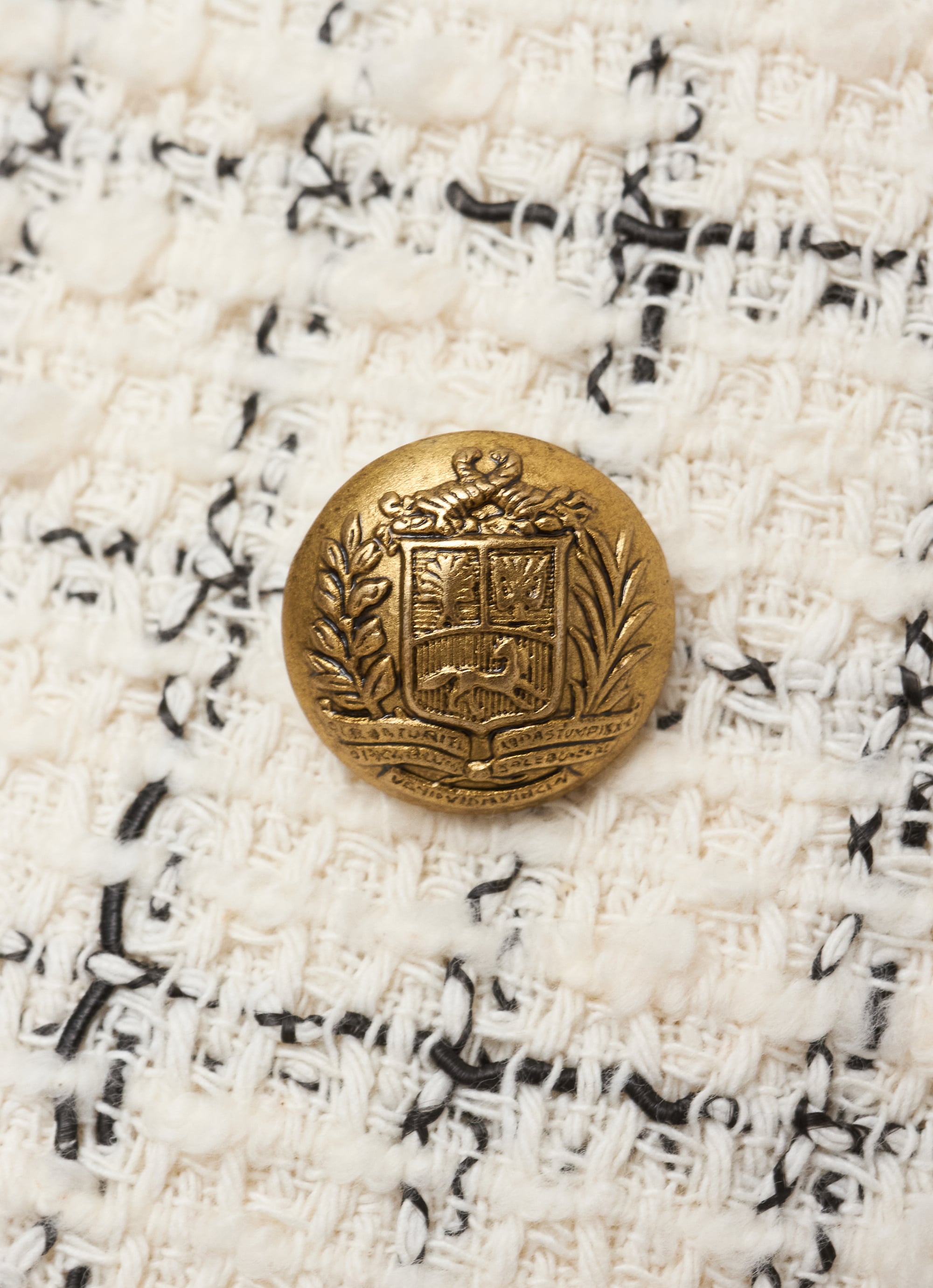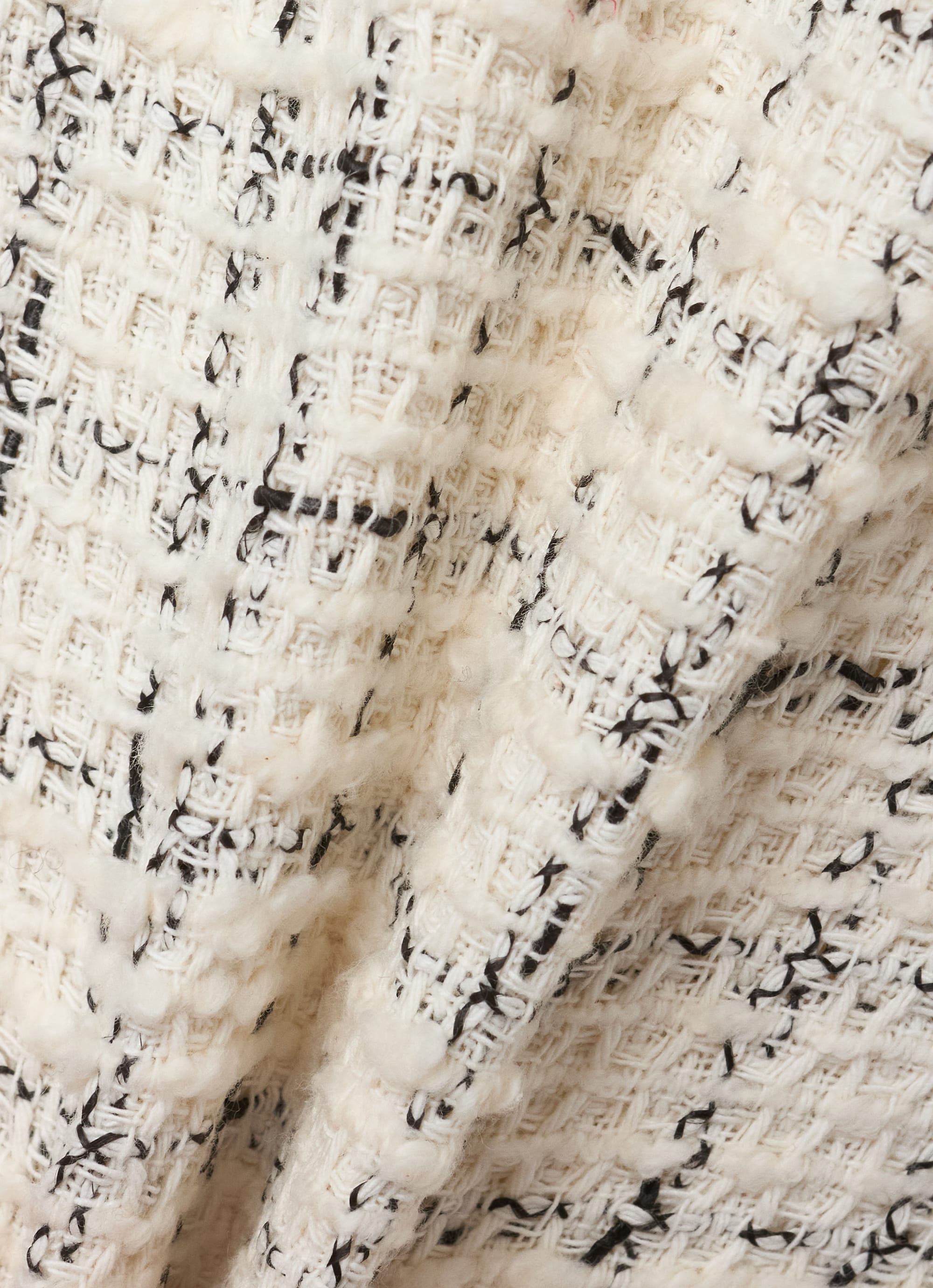 さまざまな糸を織り交ぜた表情豊かなツイードが、装いに自然な華やかさと奥行きを添えます。