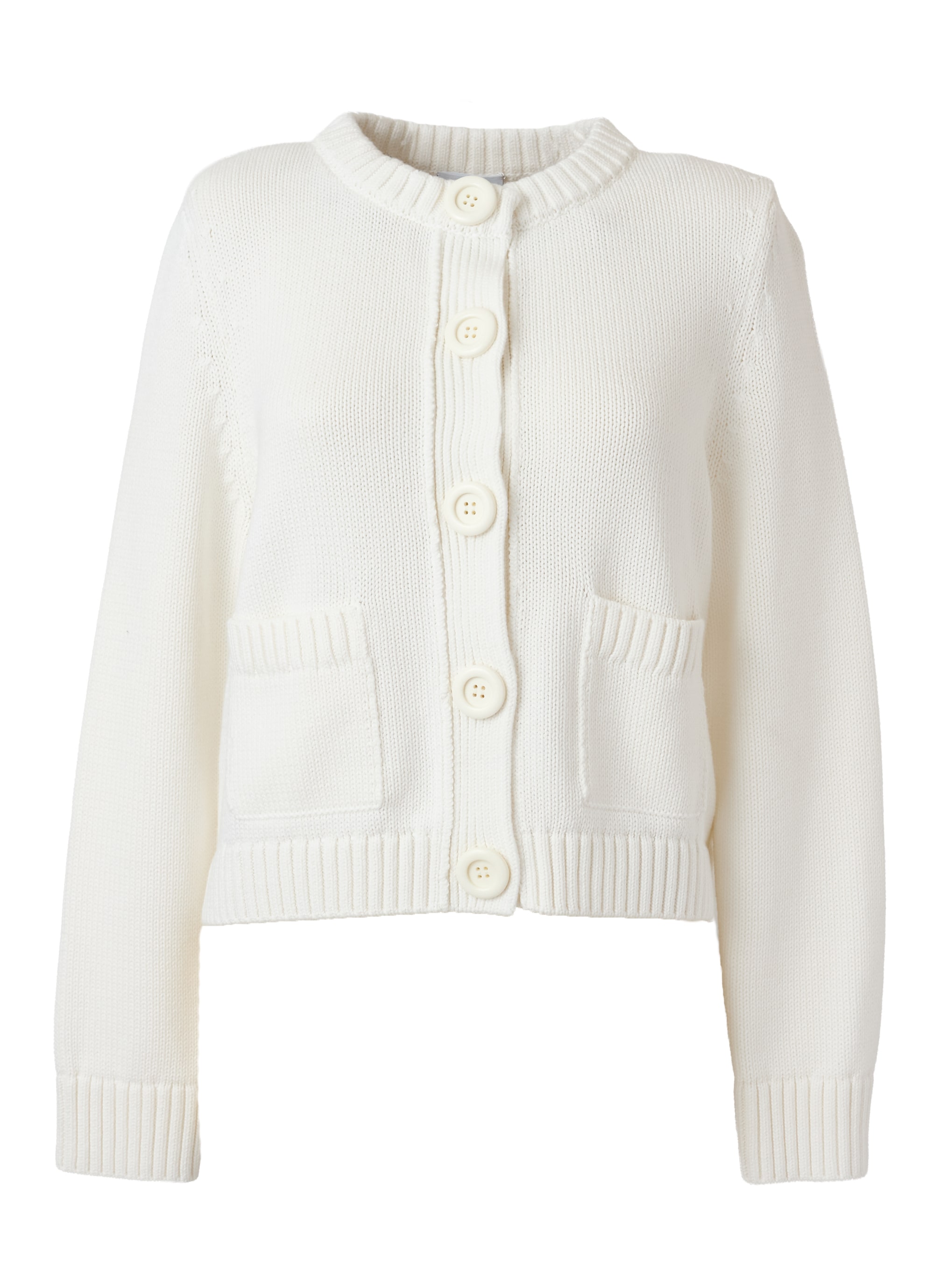 立体感のある編み地が印象的な、コットンニットカーディガン。