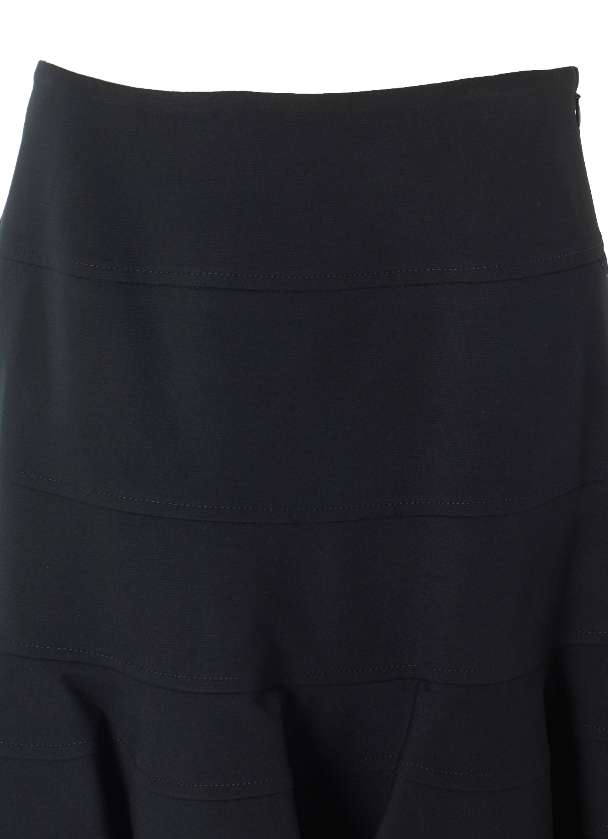 柔らかく程よい厚みのあるストレッチ素材は快適な履き心地を実現します。裾のフリルデザインが動きのある表情をプラスしエレガントな印象。デイリーから特別なシーンまで幅広く活躍するスカートです。トップスを選ばず幅広いスタイリングにマッチする、大人のワードローブに欠かせない一枚です。