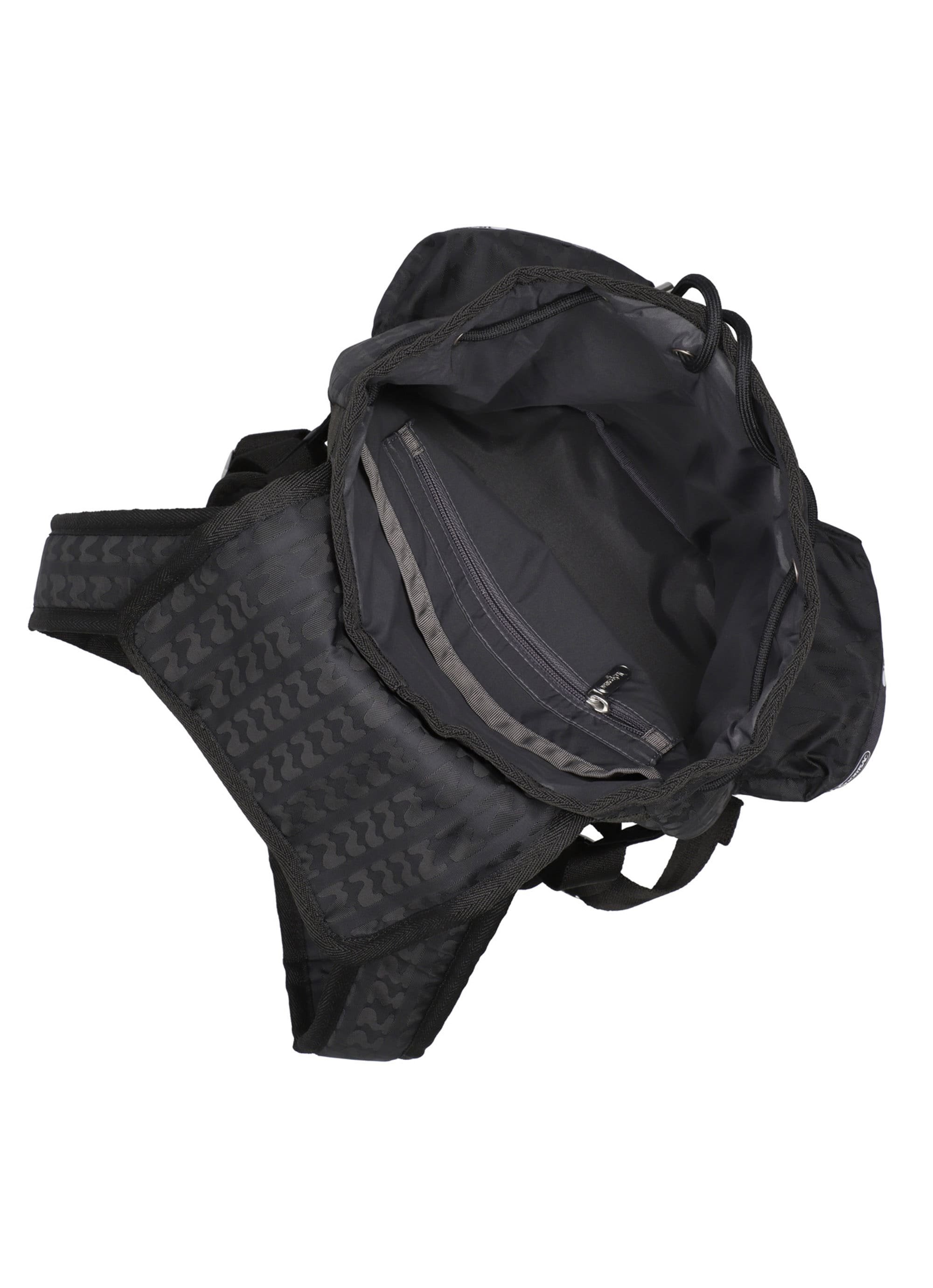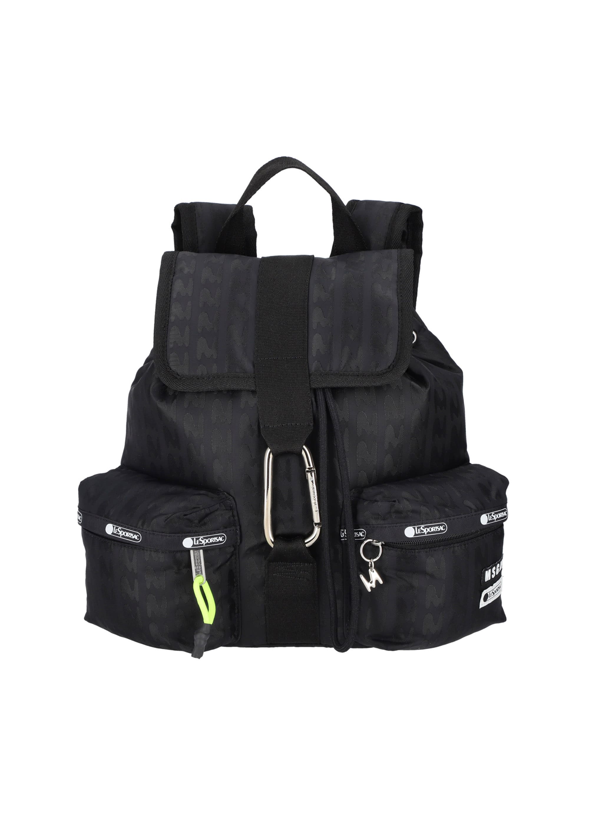 ロゴ刻印のカラビナとネオンローププルがシャープなアクセントとなり、立体感のあるフロントポケットが機能美を際立たせるデザイン。