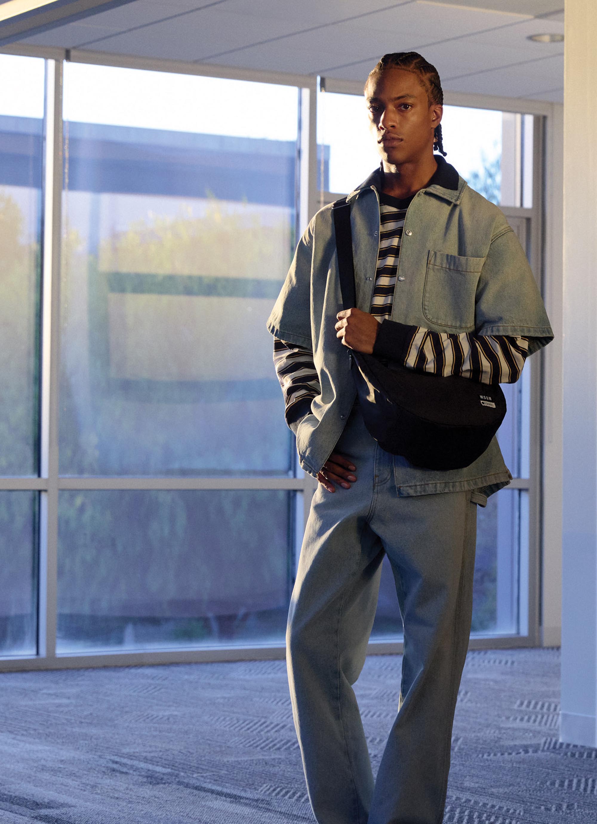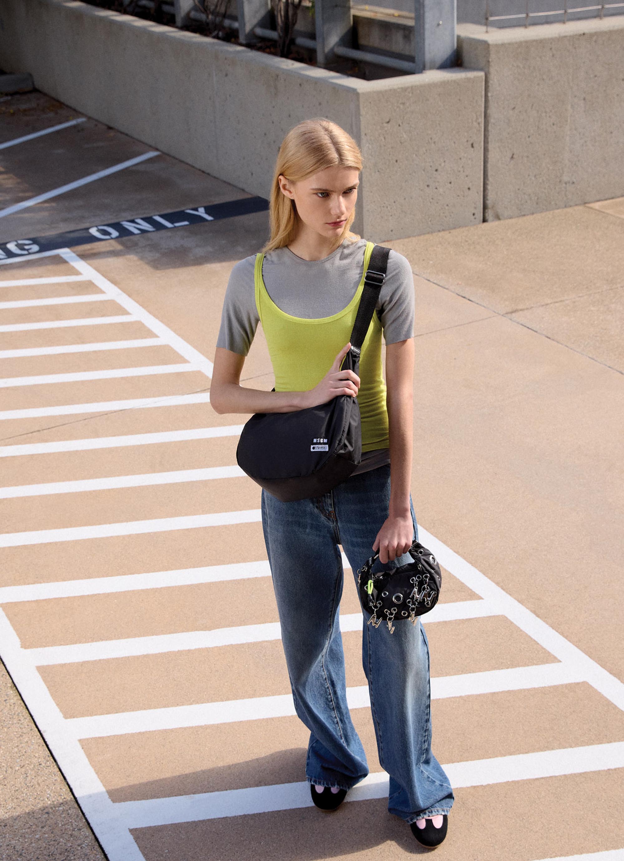 ふんわりとしたパフィー素材が特徴のハーフムーンショルダー「MSGM MD Crescent」。