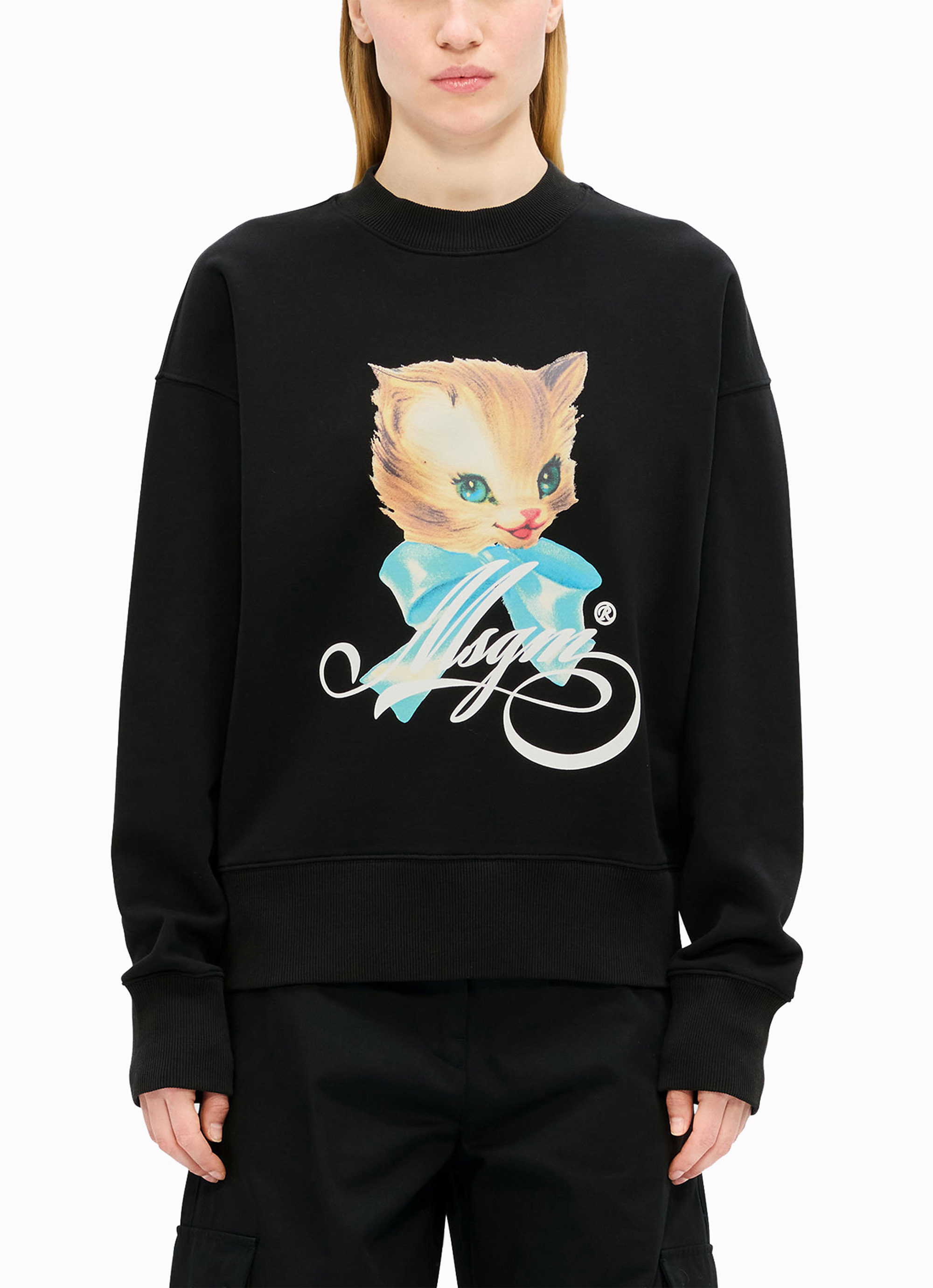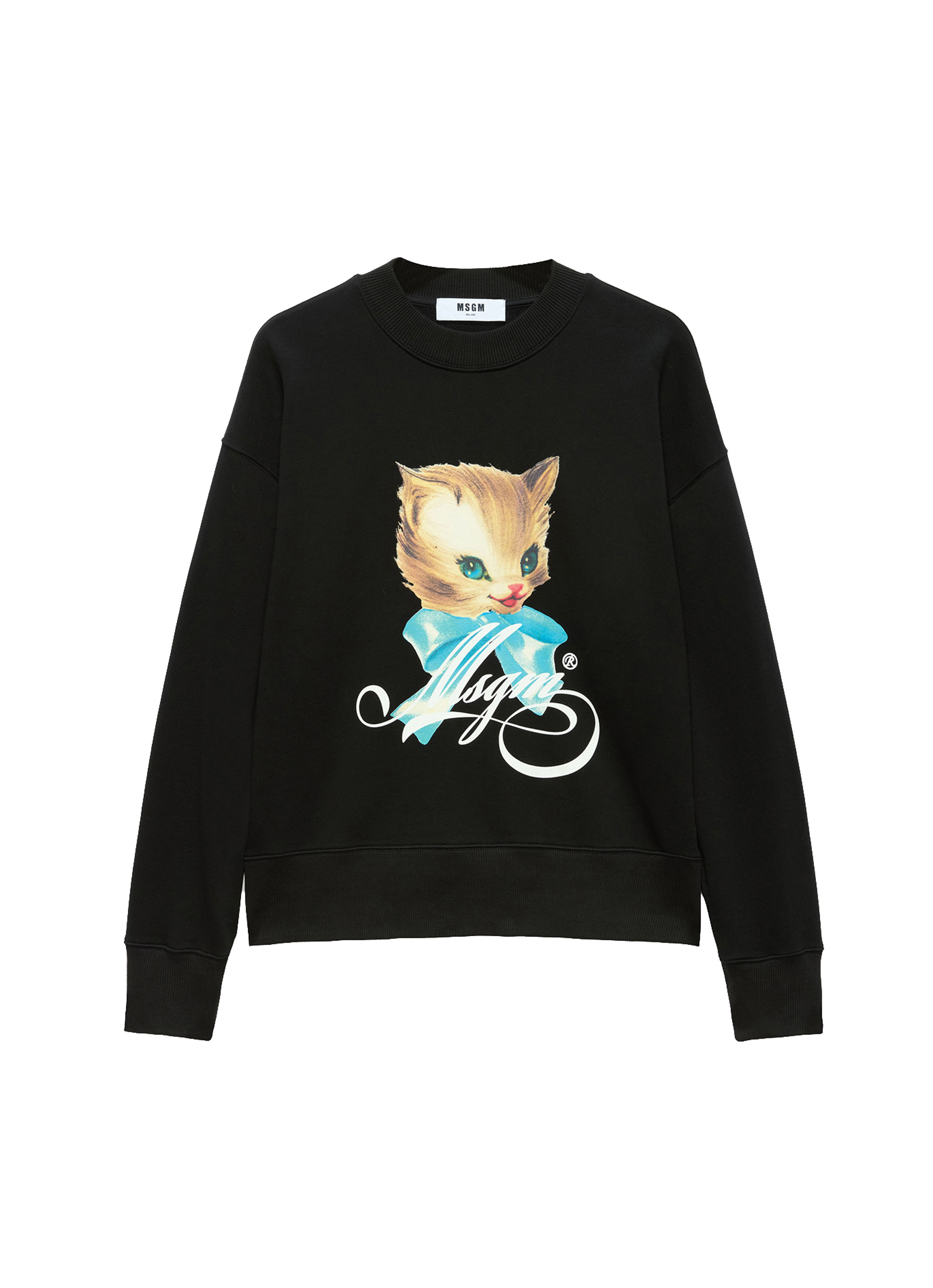 フロントに大胆にプリントされたキュートな子猫が目を惹く、遊び心あふれるスウェットシャツ。