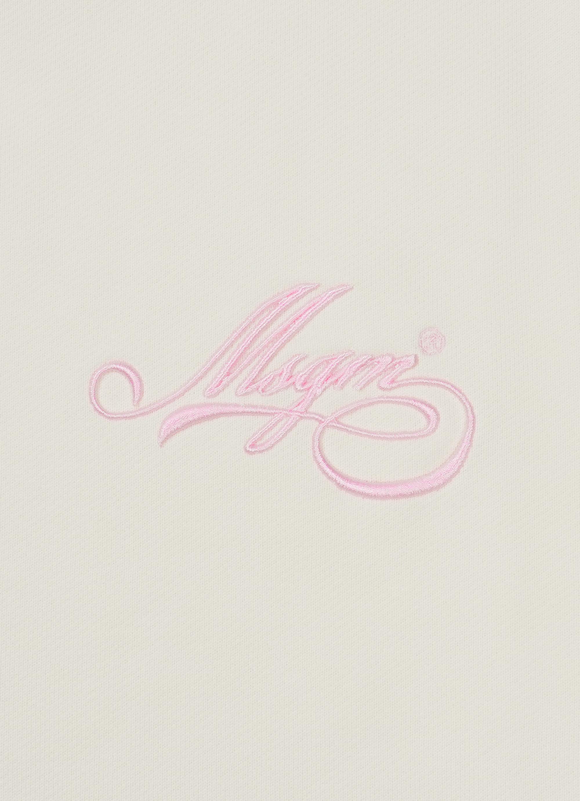 胸元を軽やかに彩る、ピンクの刺繍ロゴがスタイリッシュなスウェットシャツ。リブエッジのクルーネックにドロップショルダーを配したリラックスなシルエット。