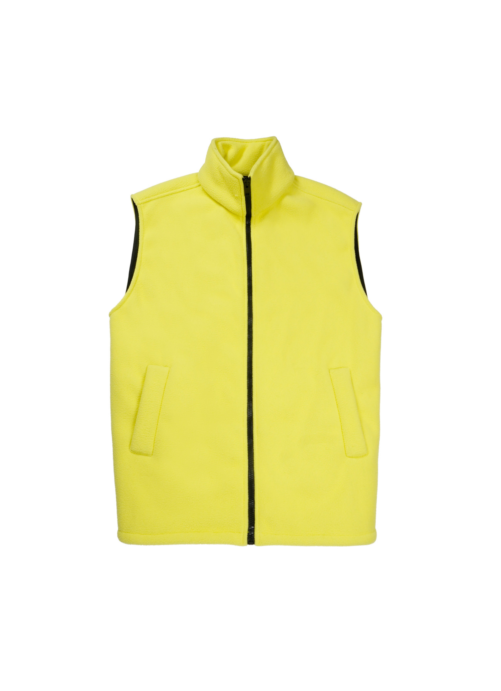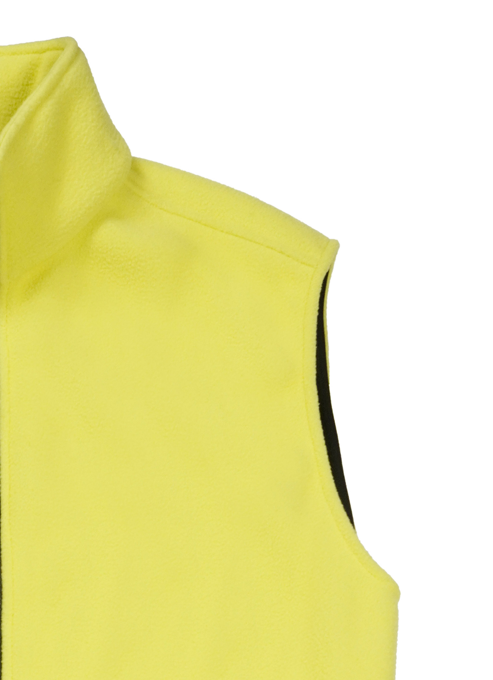 高めのスタンドカラーが印象的な、テディ風フリースベスト。