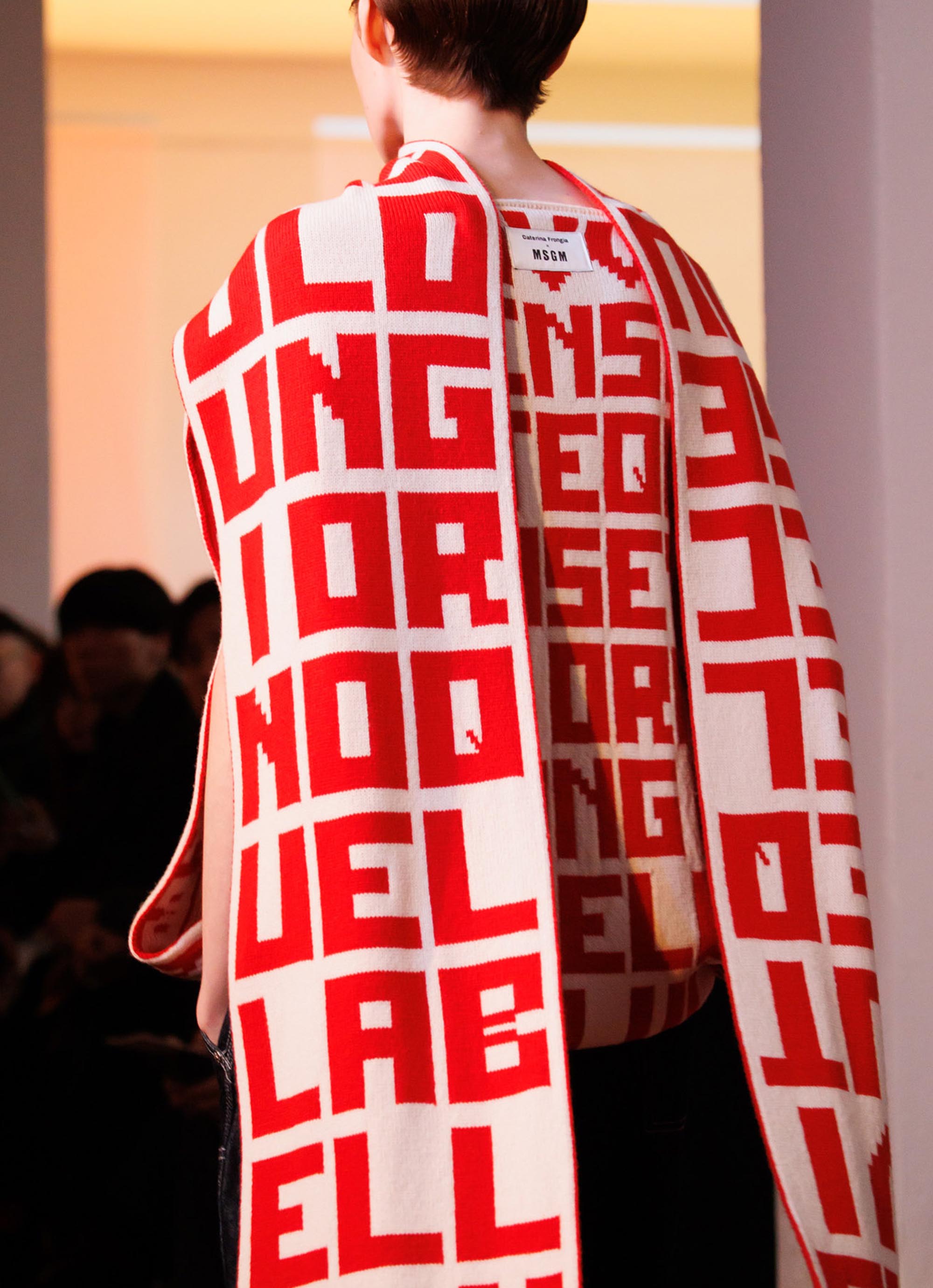 伝統的な編みの技法に、現代的な言語と繊細な感性を重ねたグラフィックが、MSGMの哲学でもある“ファッションとアートの融合”を体現。