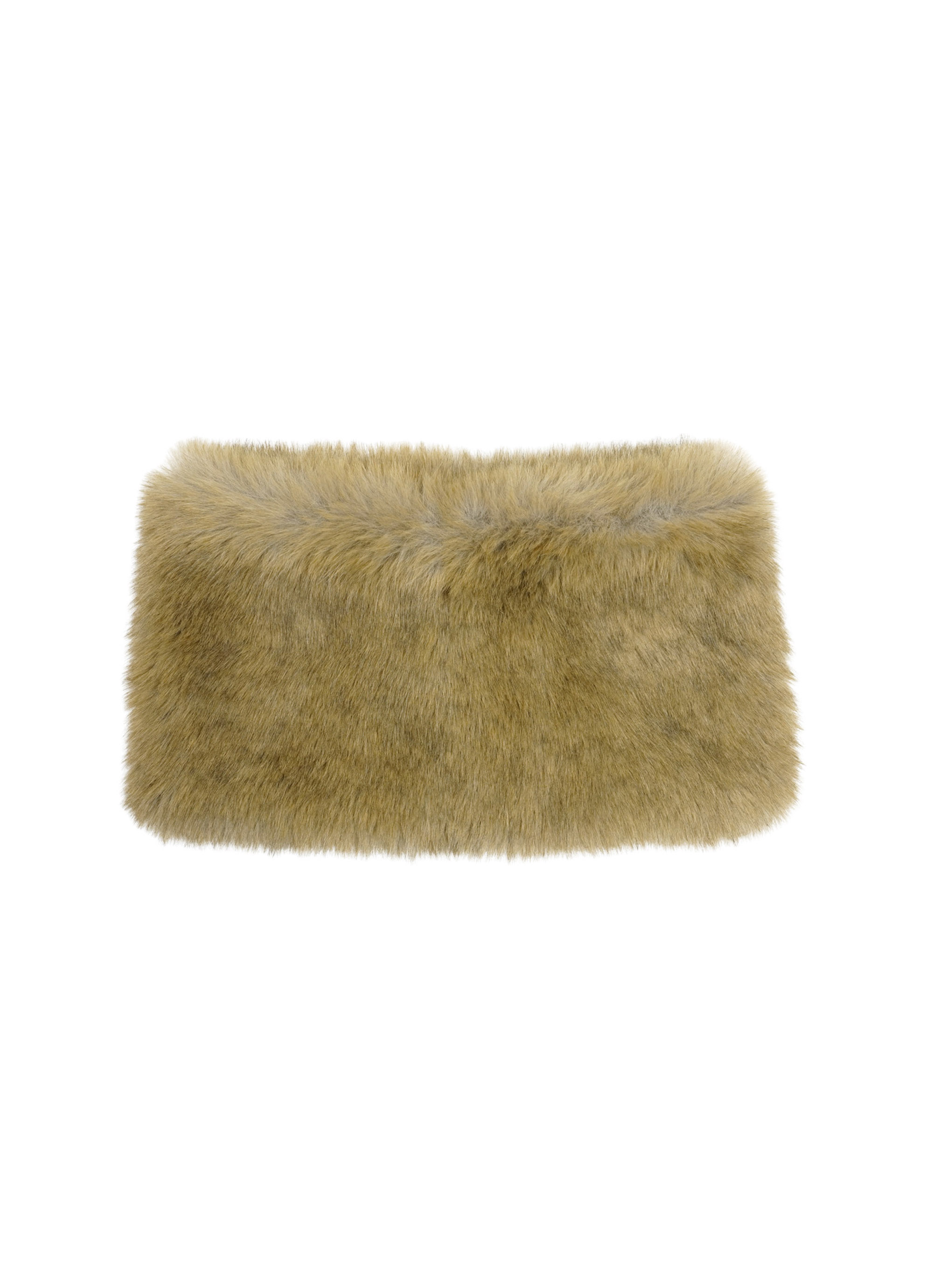 柔らかなフェイクファーが首元を包み込む、ノンストレスで着用できるループタイプのスヌード。