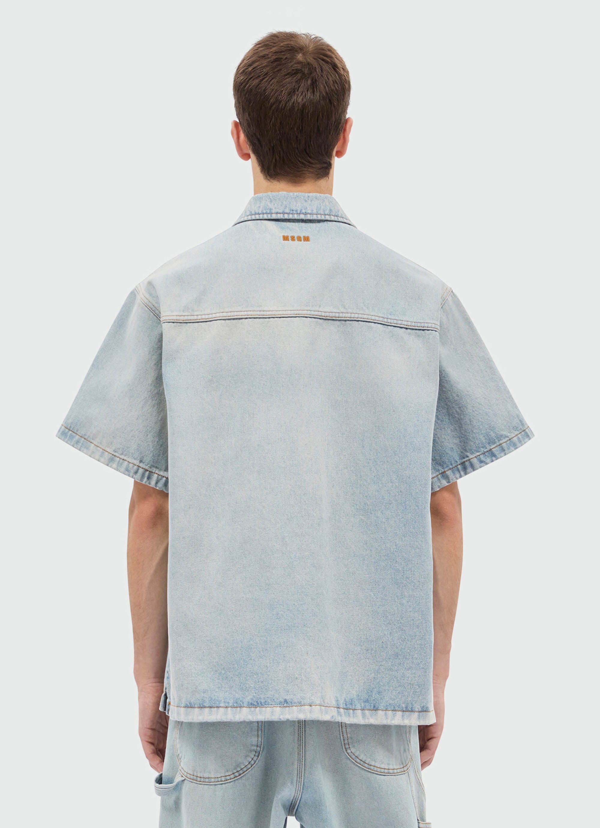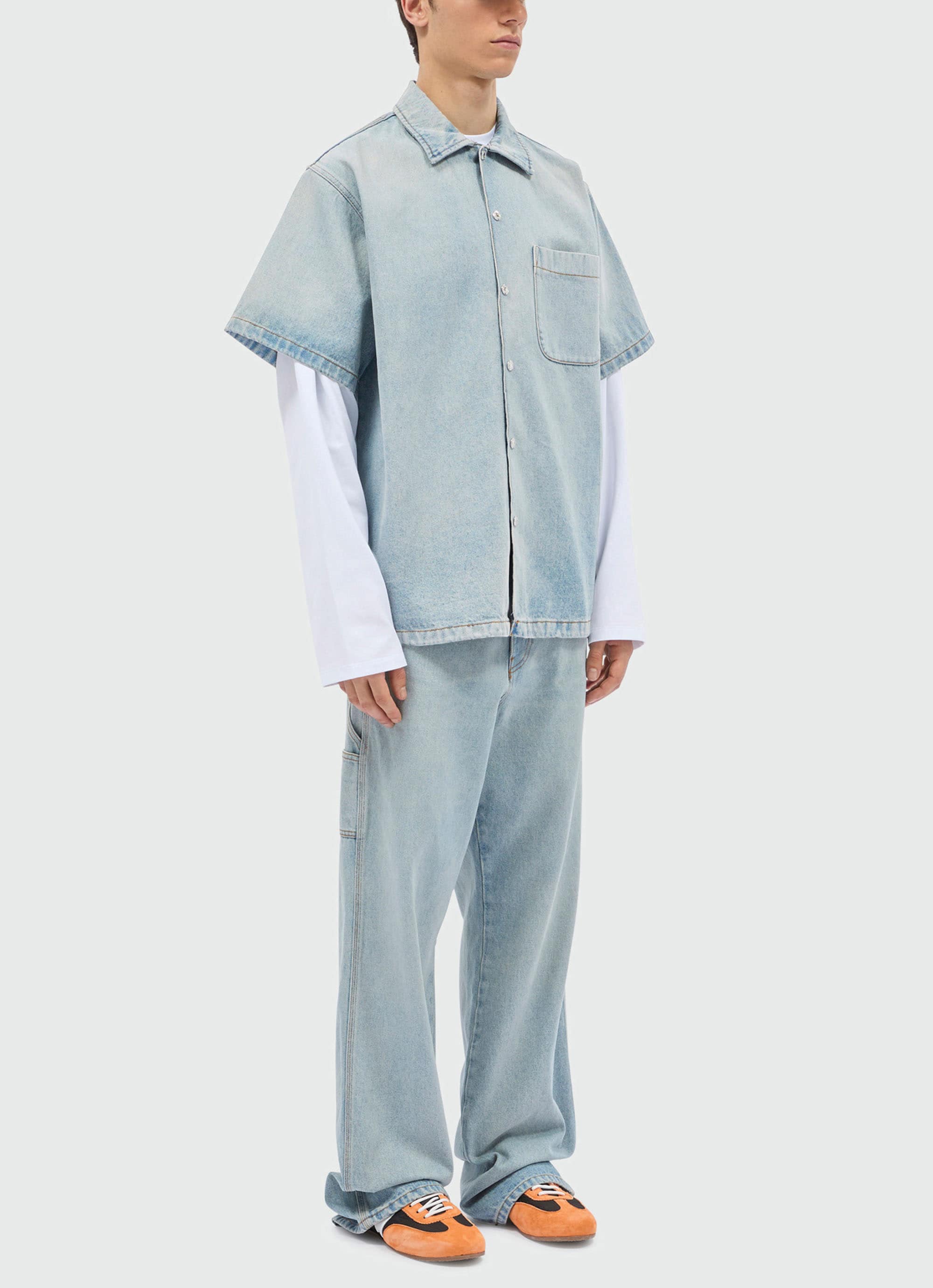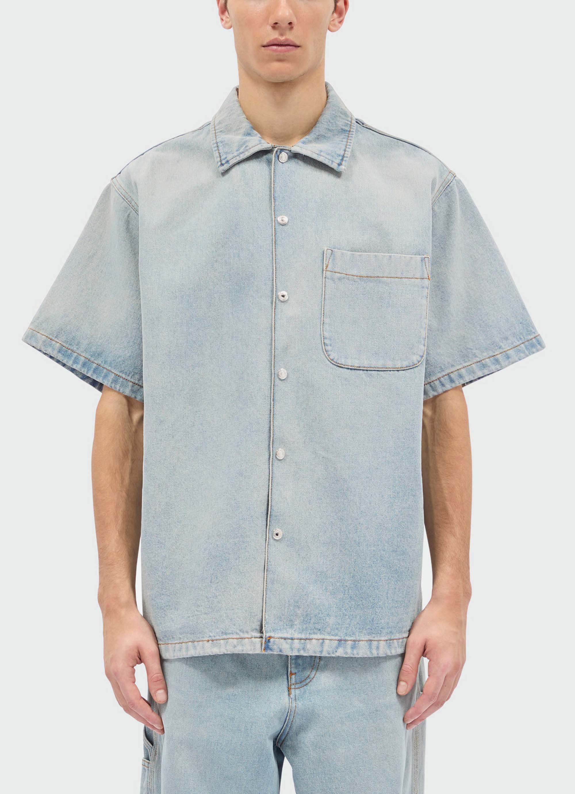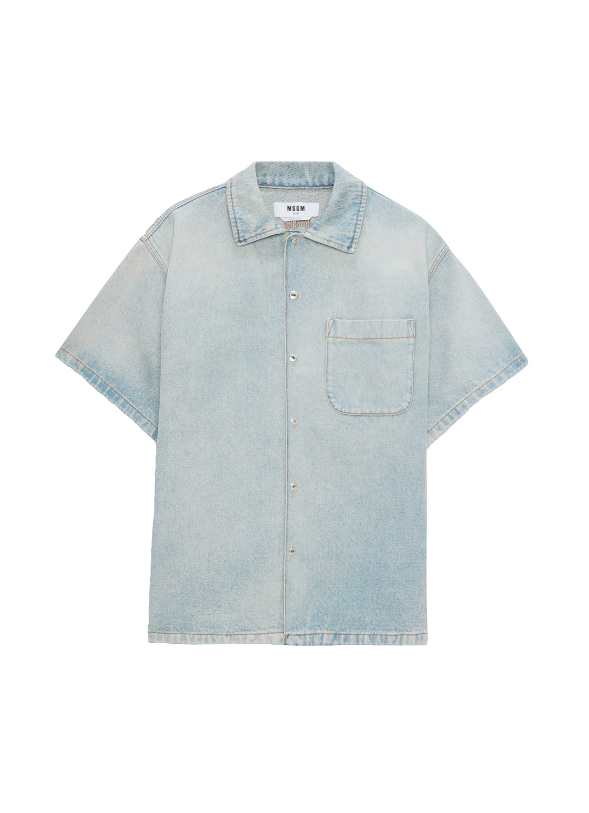 厚みのあるライトウォッシュデニムを使用した、ショートスリーブシャツ。
