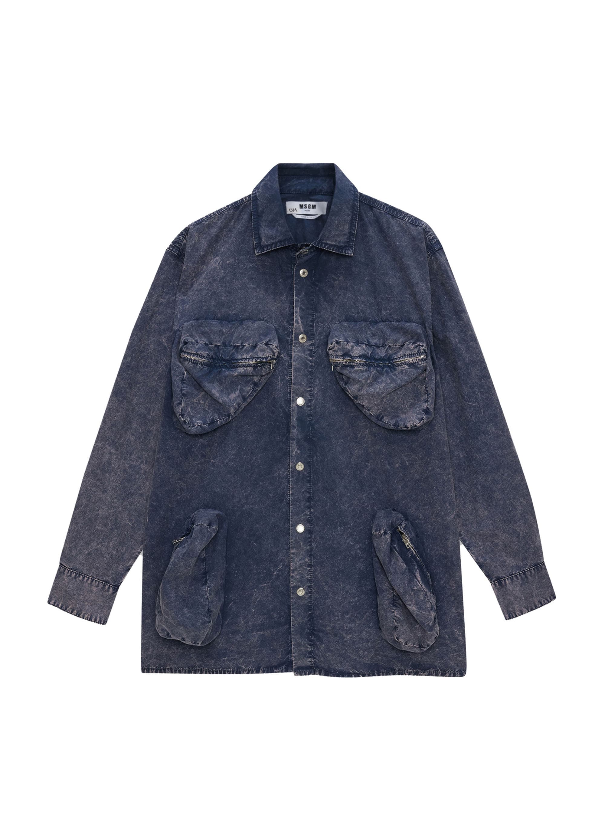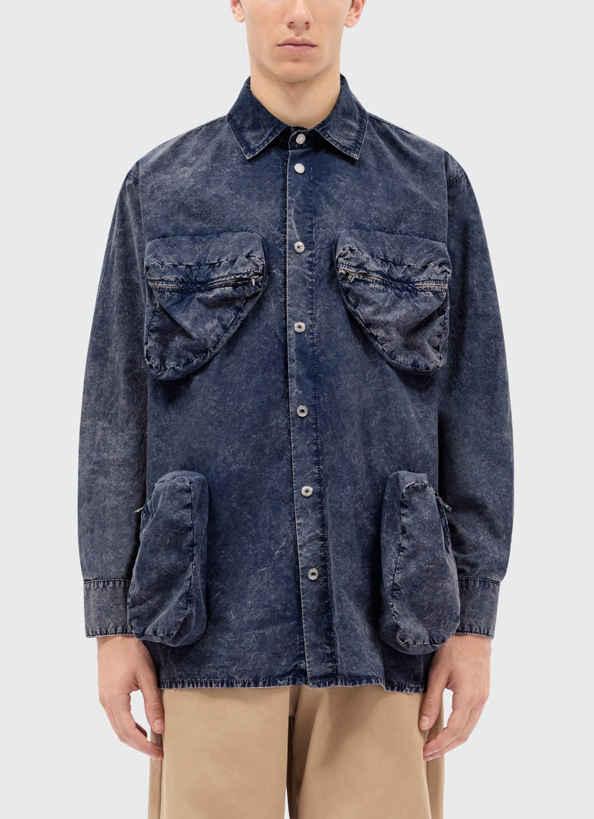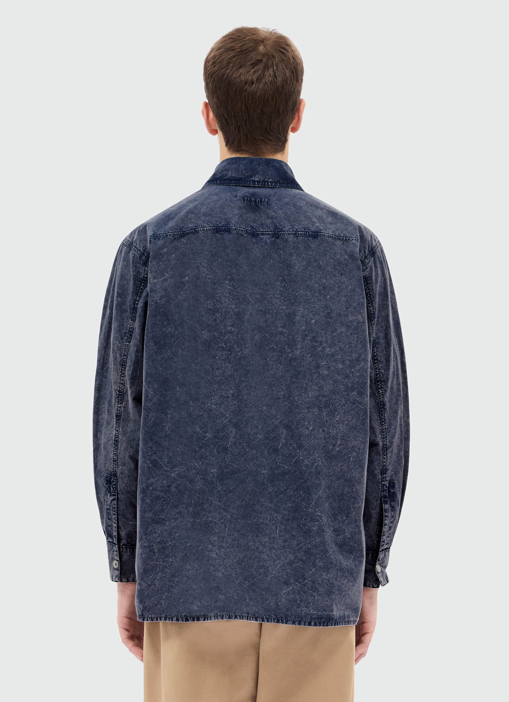 深みのあるネイビートーンに、マーブルウォッシュのニュアンスが映えるポプリンシャツ。