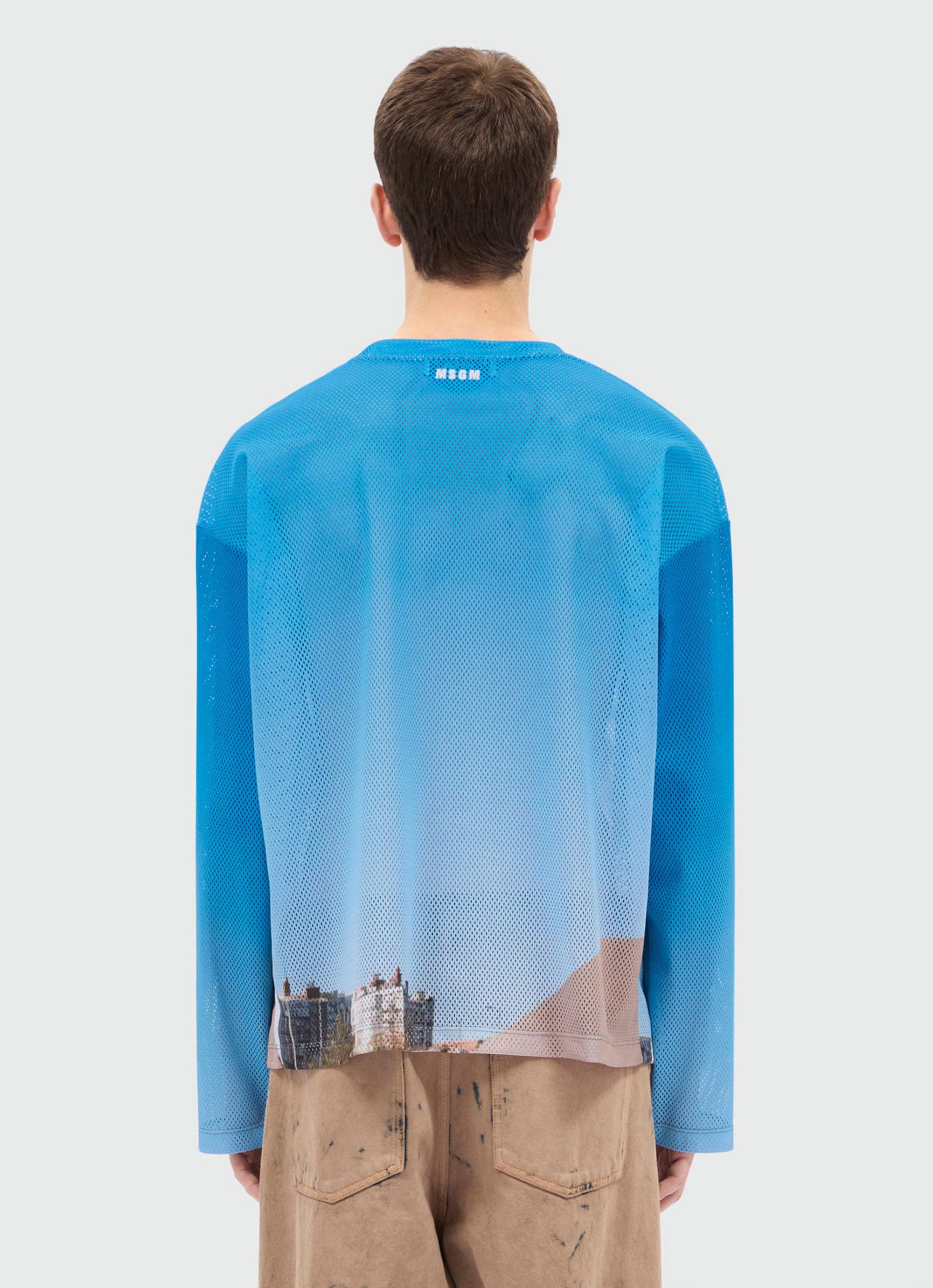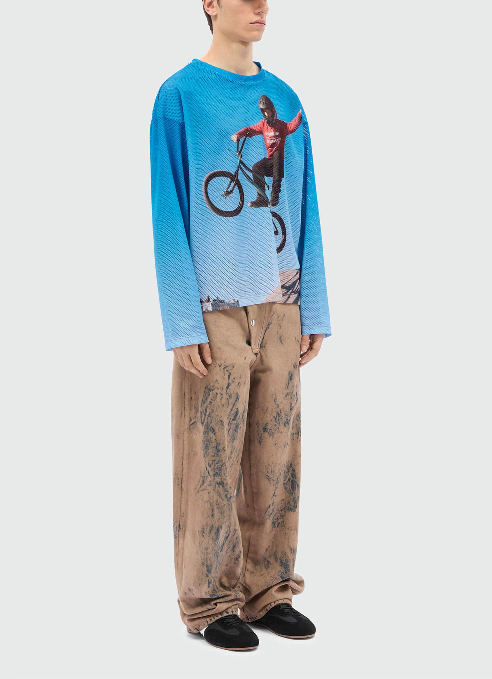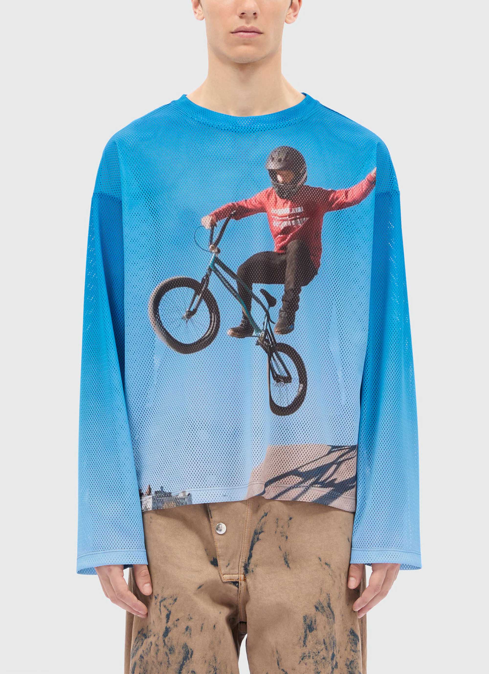 Bike life(自転車ライフ)とレースの高揚感を切り取ったフォトグラフィックが印象的な、メッシュ素材のロングスリーブトップ。
