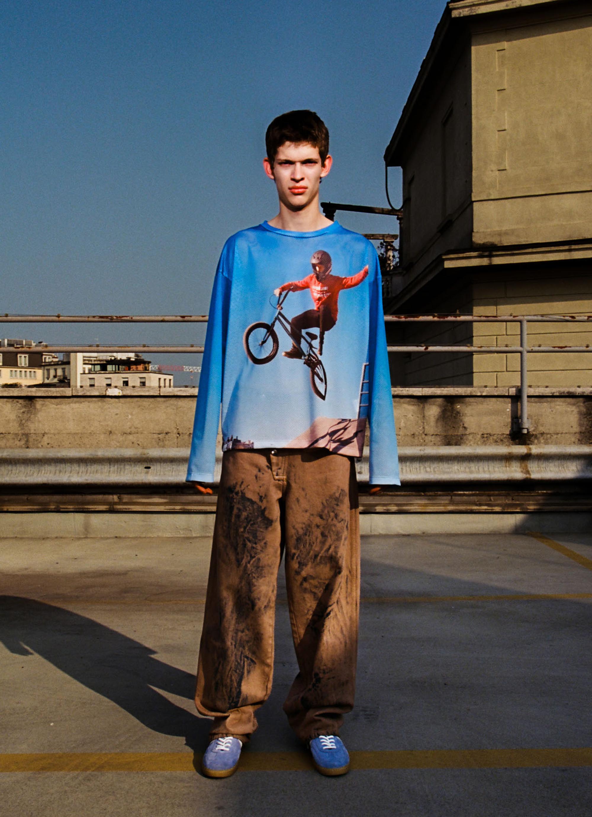ライダーが空中を飛ぶ一瞬を捉えたアートワークが、MSGMらしいエネルギーとスピード感のあるムードを表現。