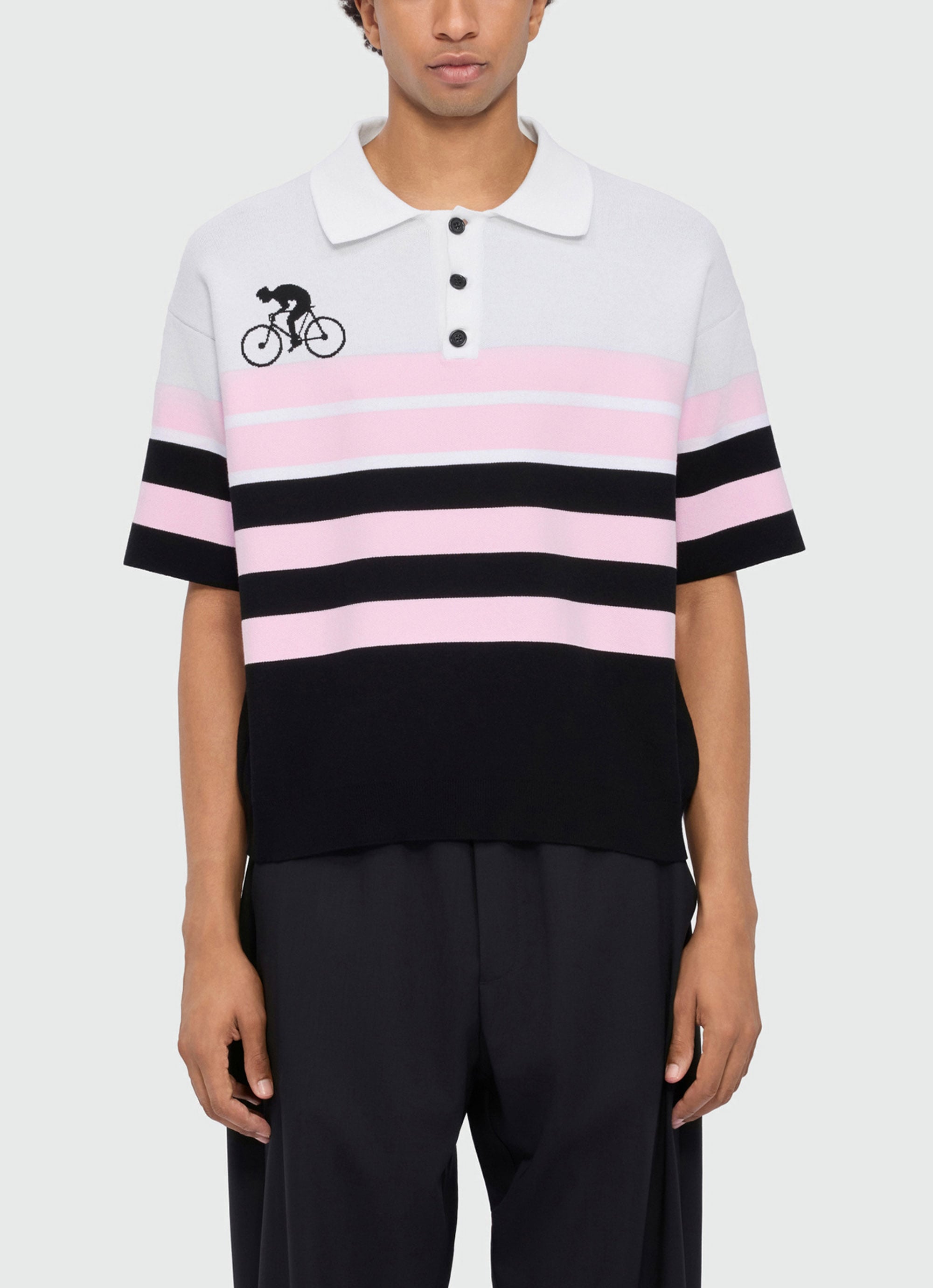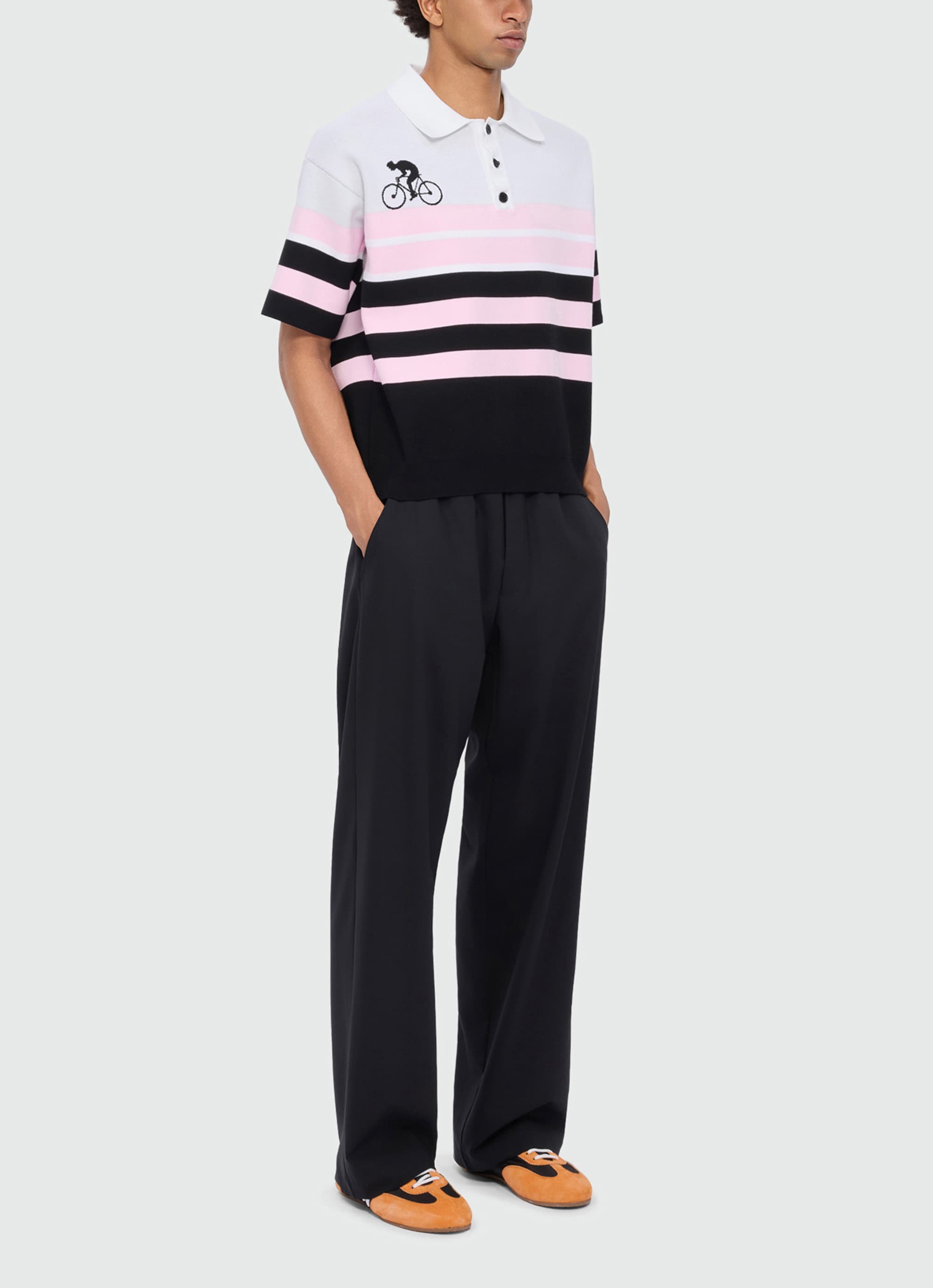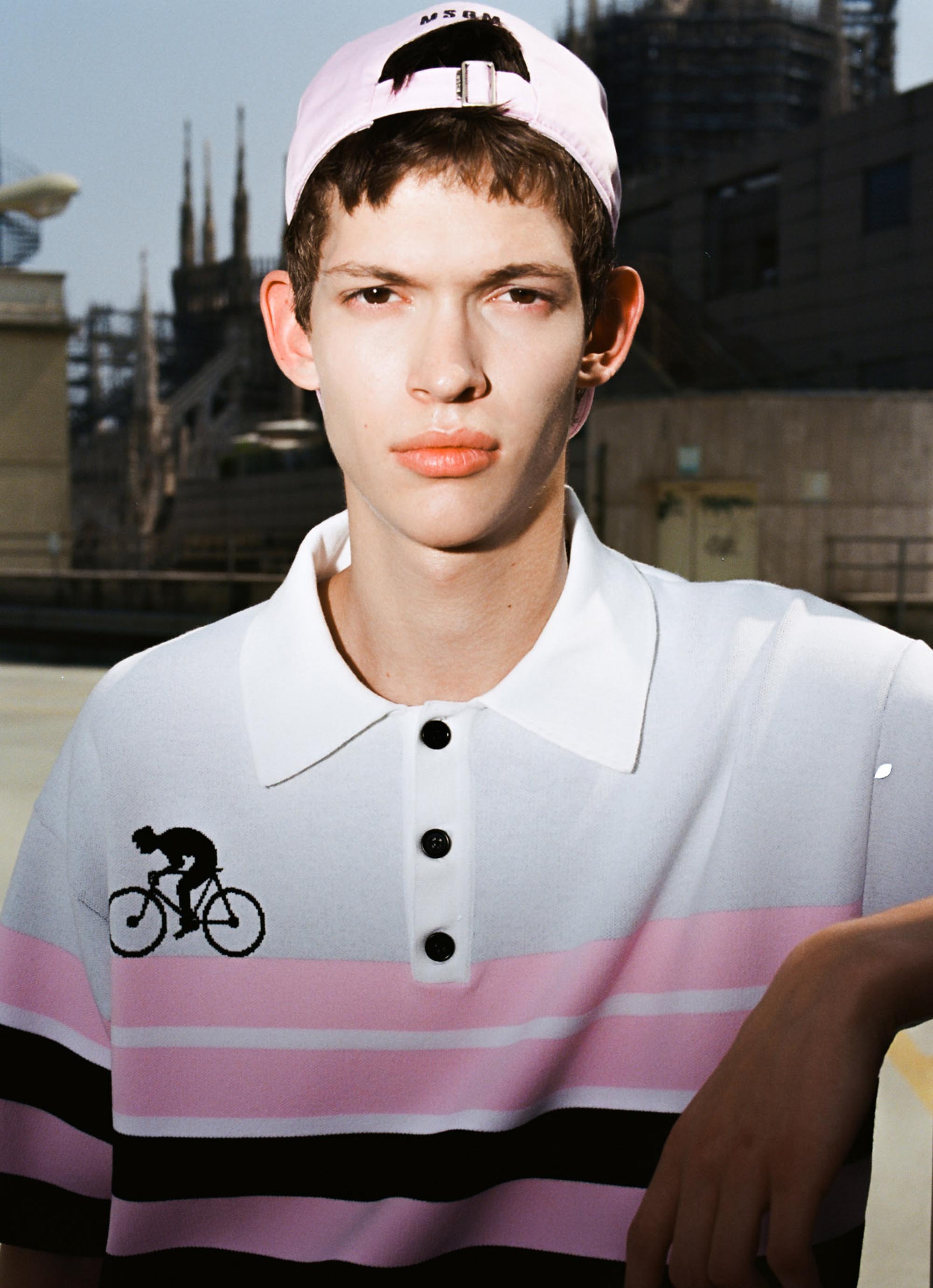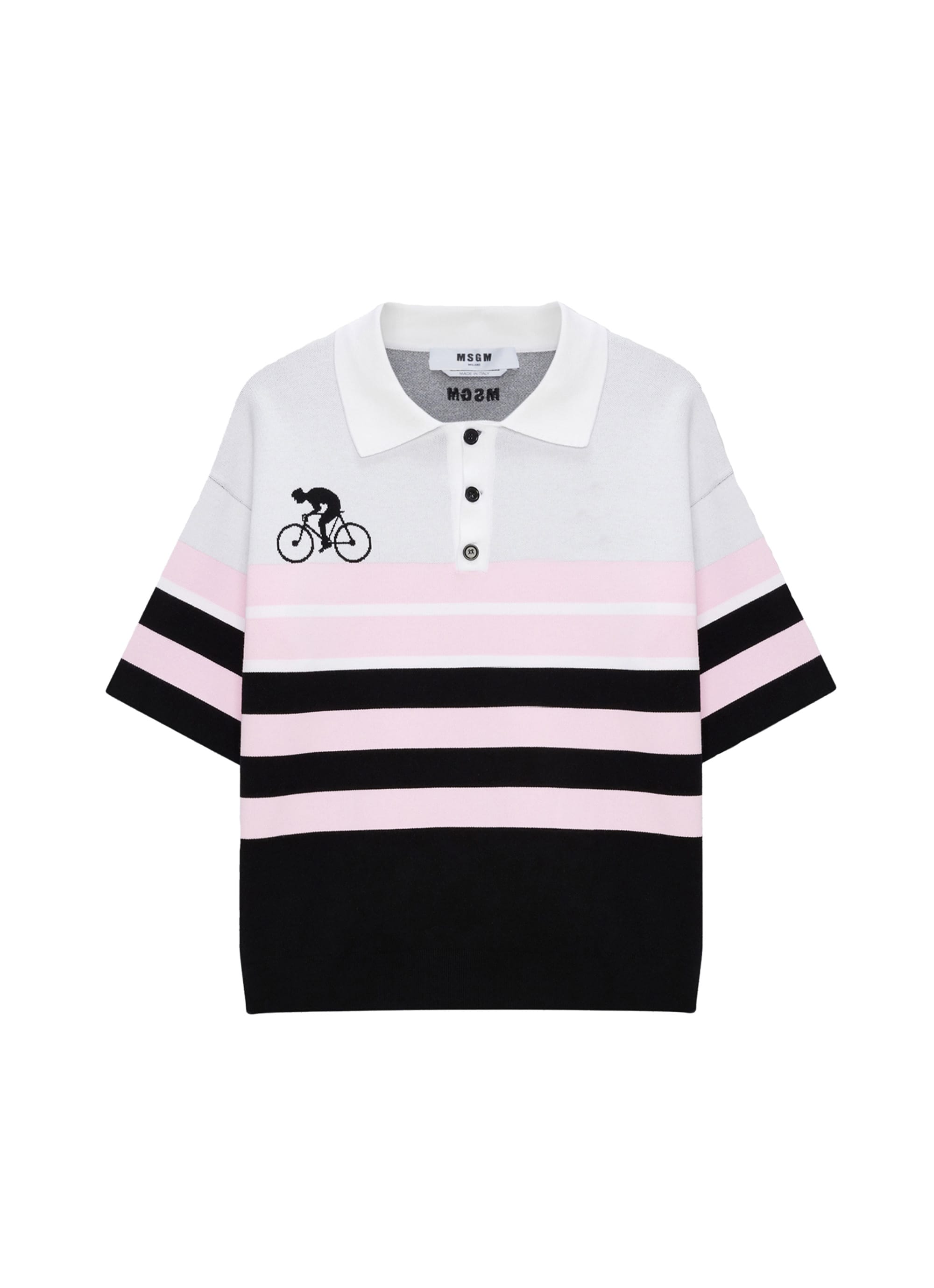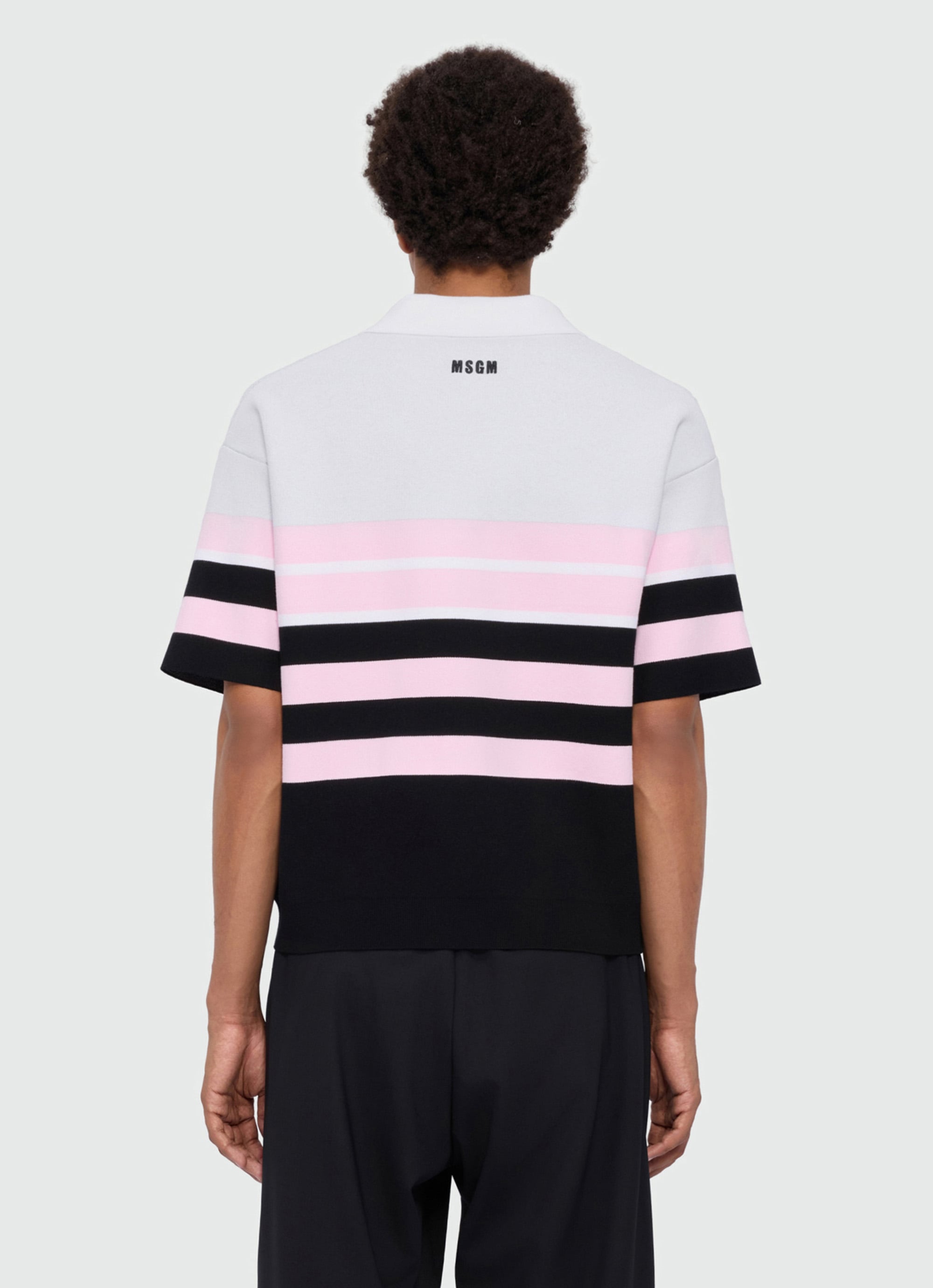 ストライプジャカードの立体的な表情が、MSGMらしいコンテンポラリーなムードを引き立てるポロニット。