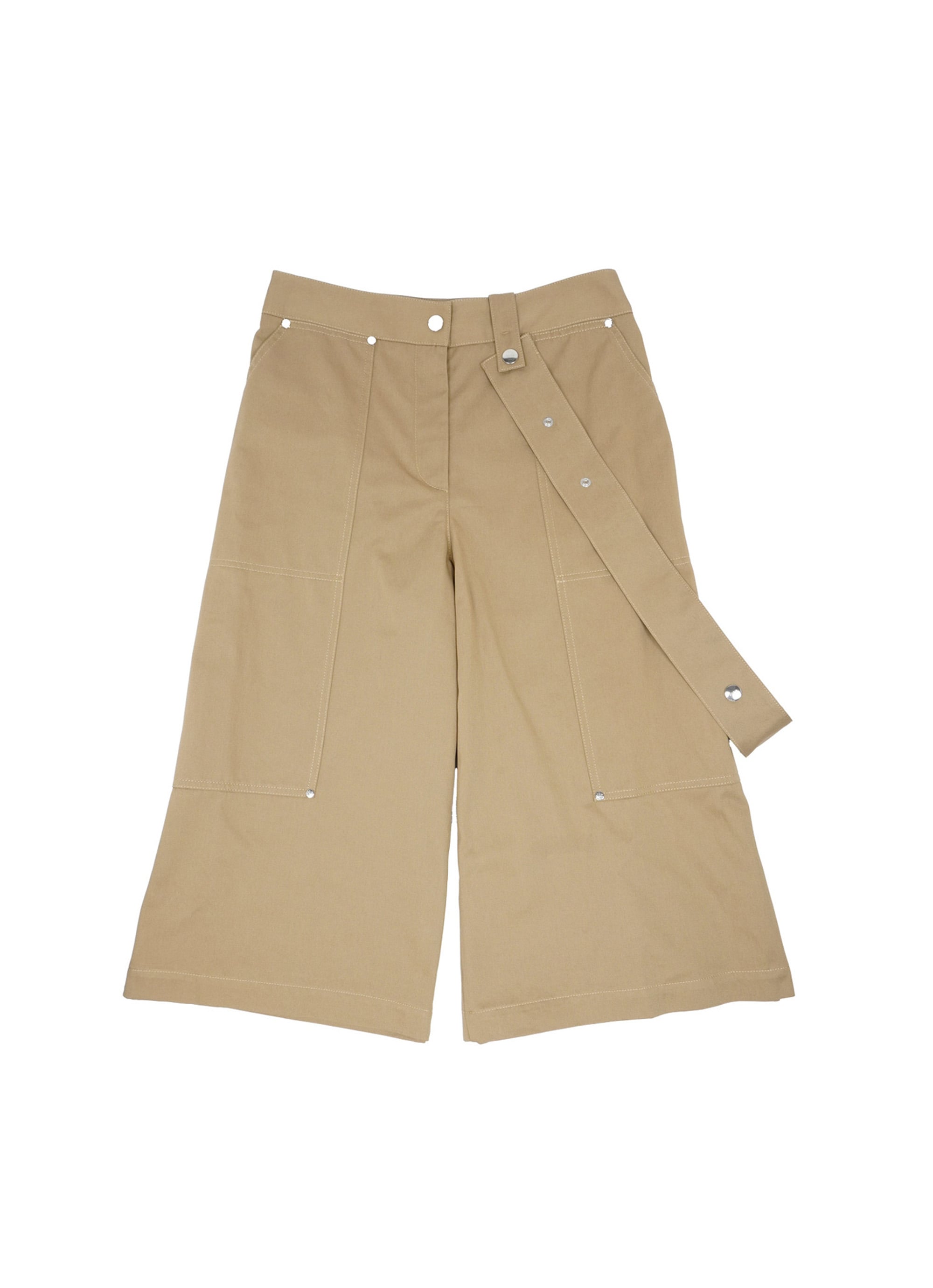 コットンギャバジン素材を使用した、クロップド丈のワークテイストパンツ。