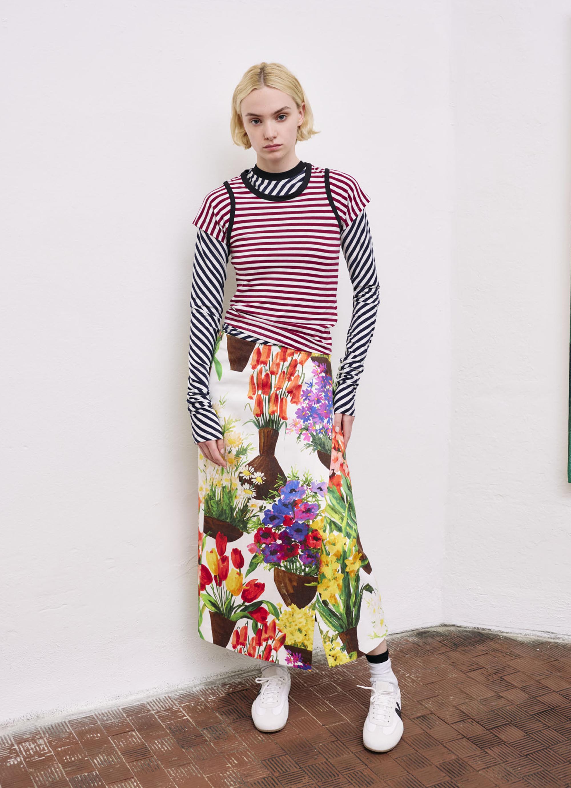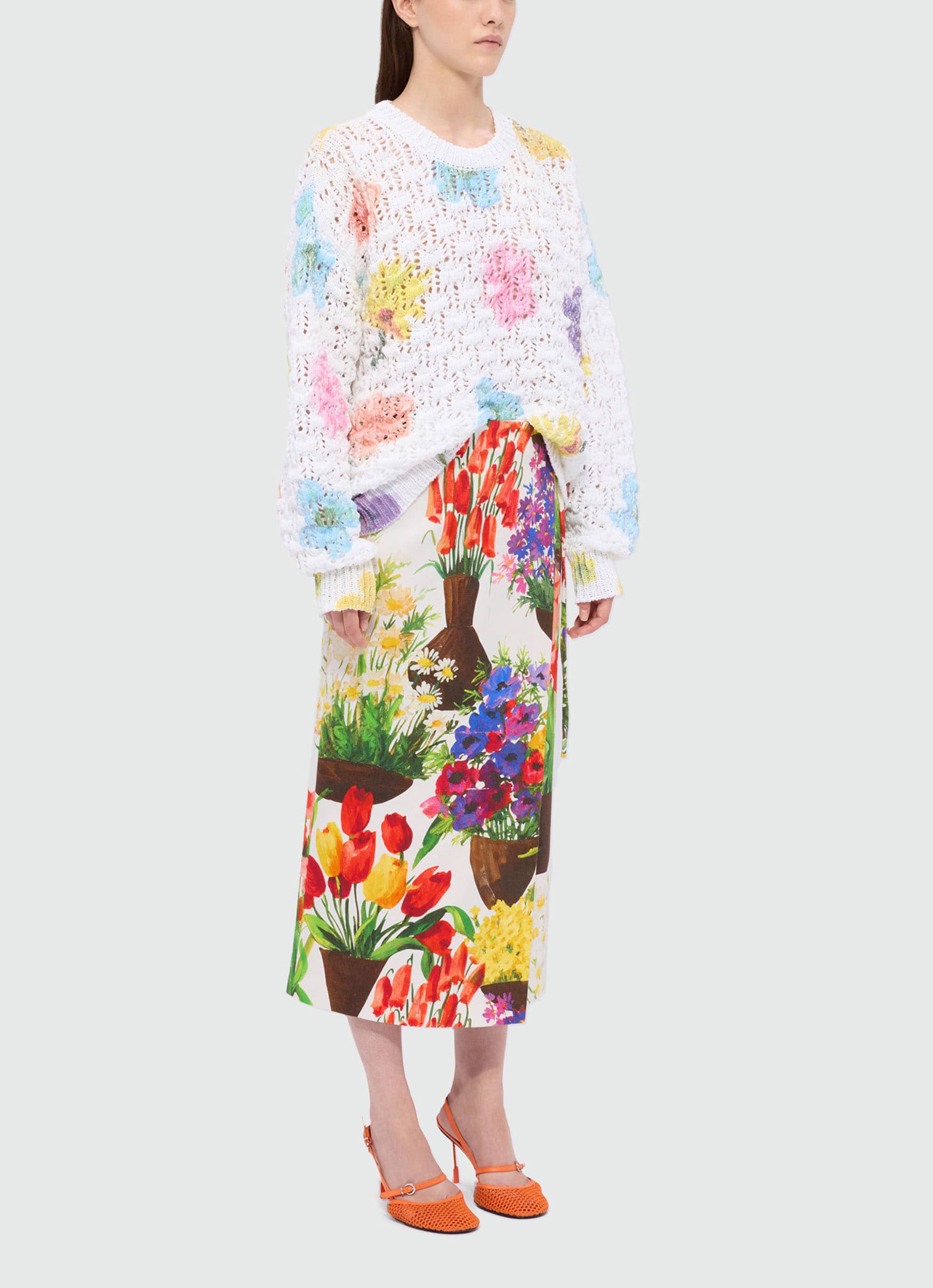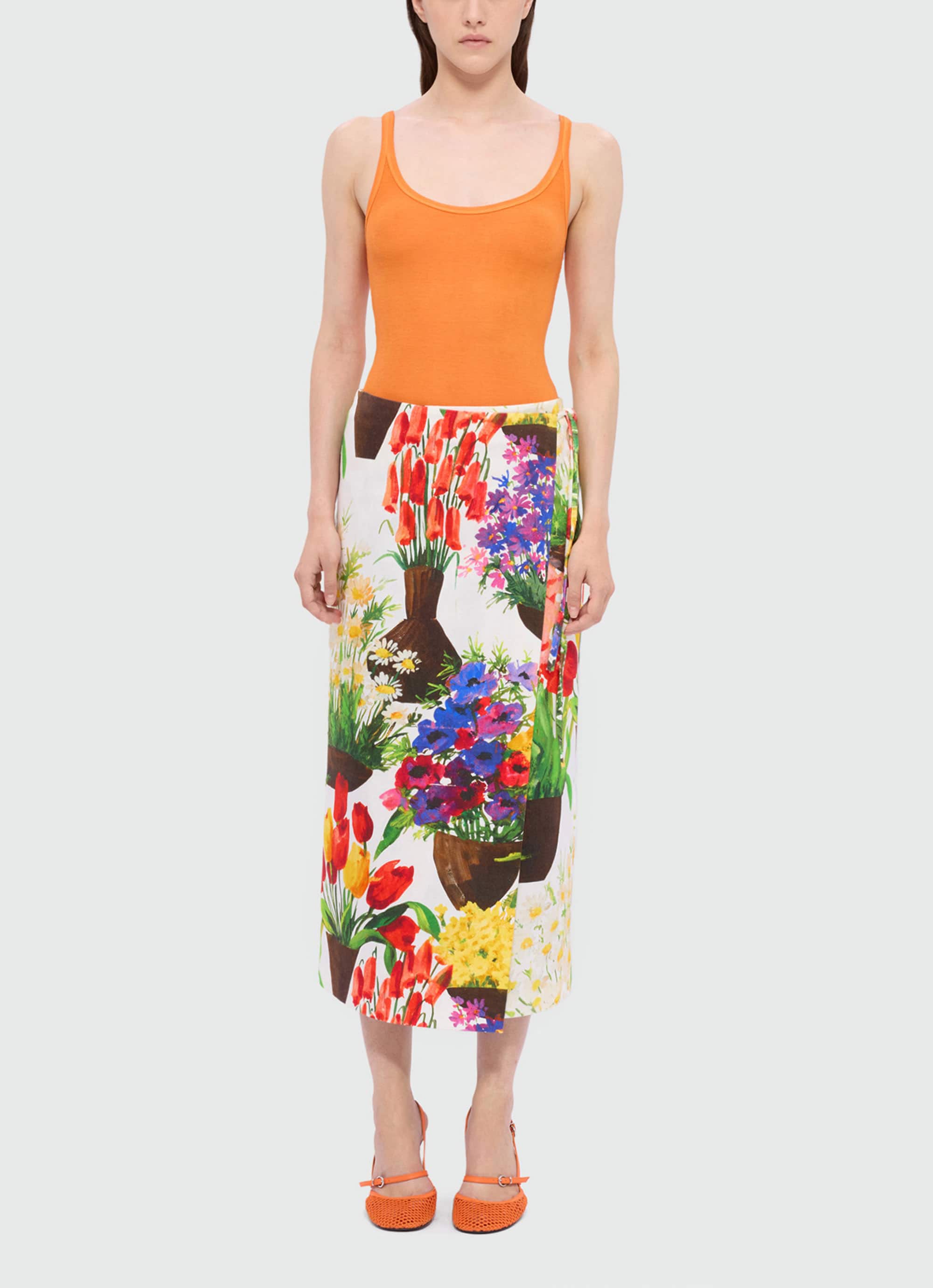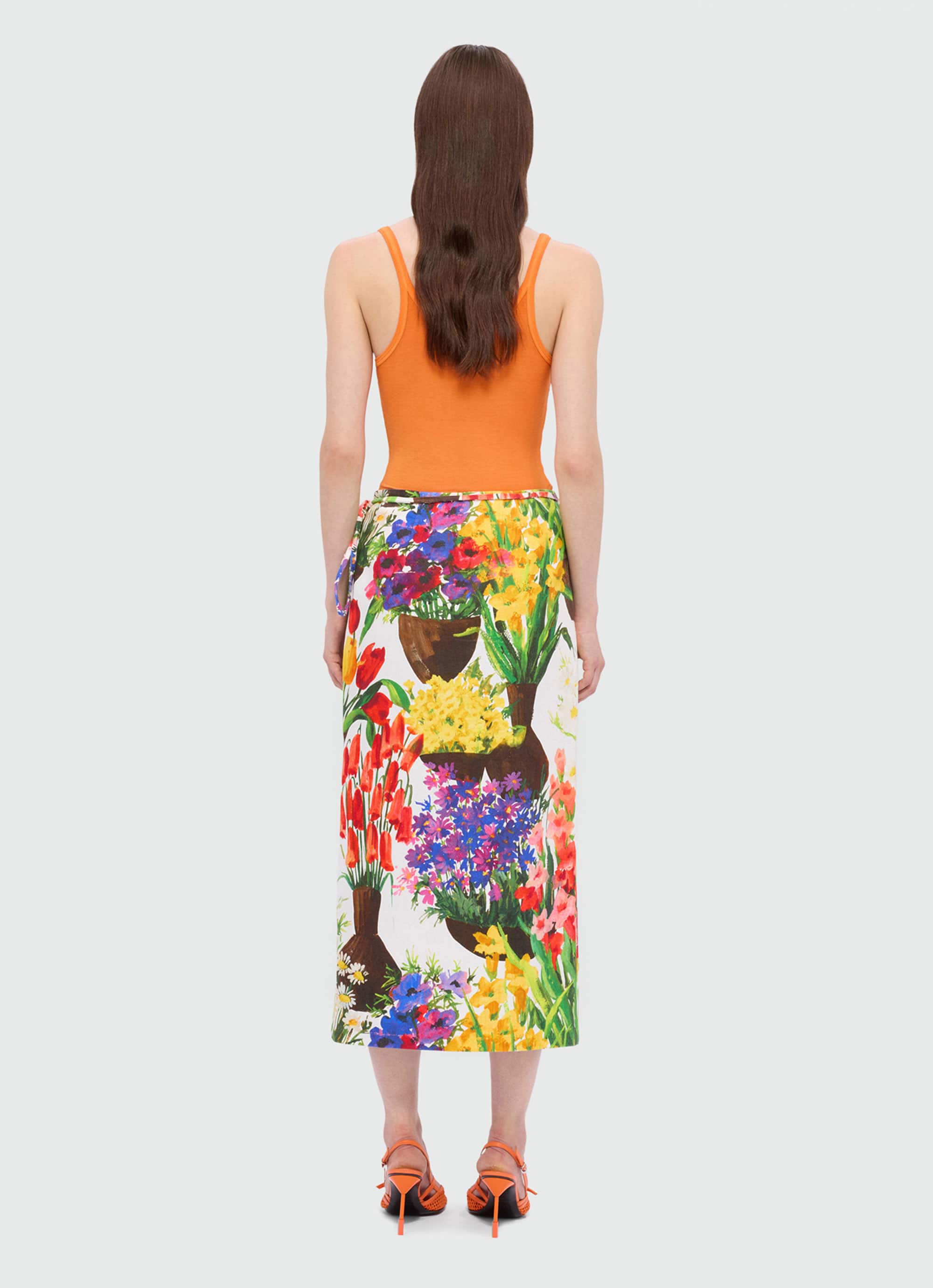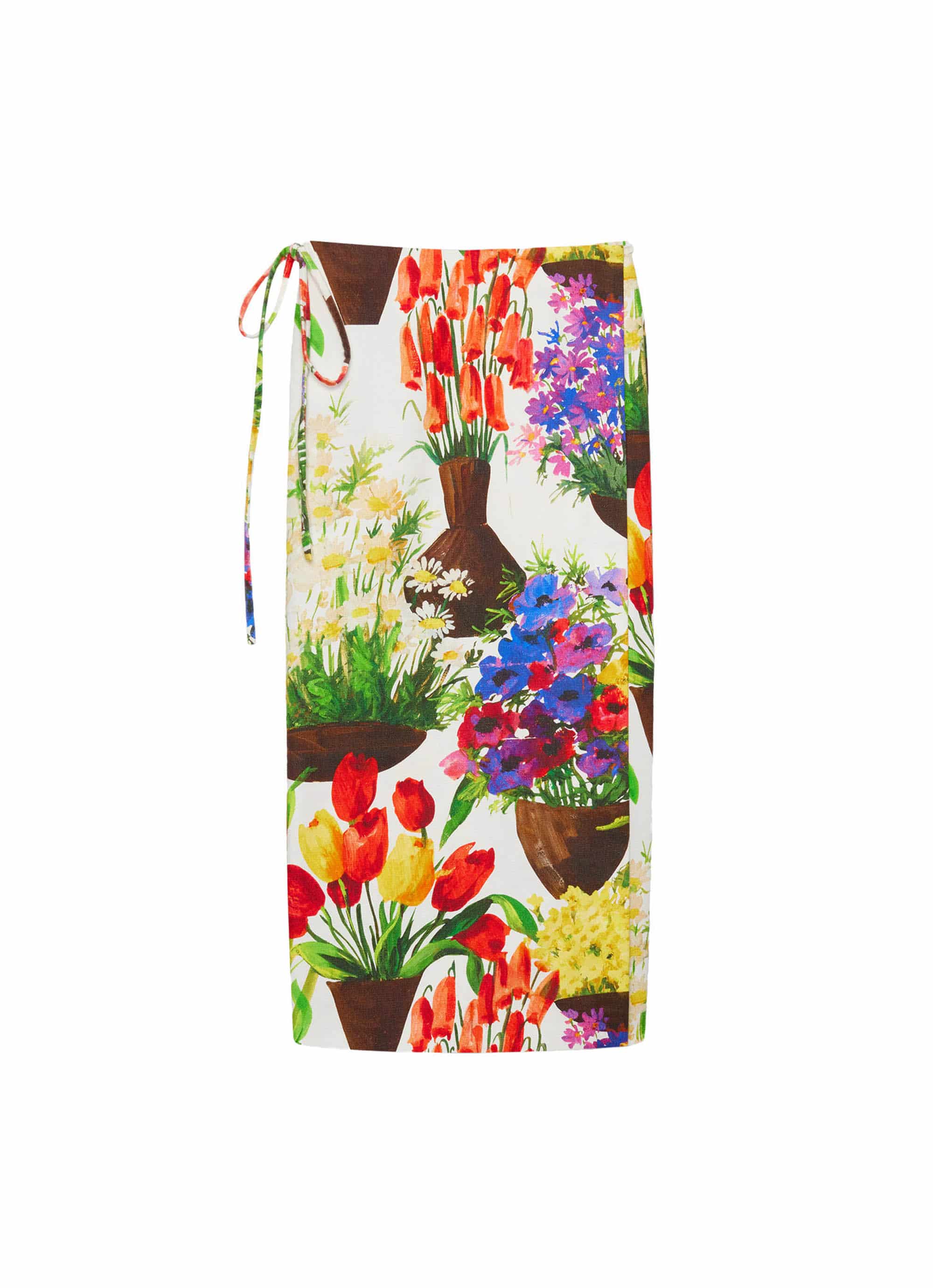 色とりどりの花々が咲くガーデンを鮮やかに描き出した、コットンキャンバスのラップスカート。