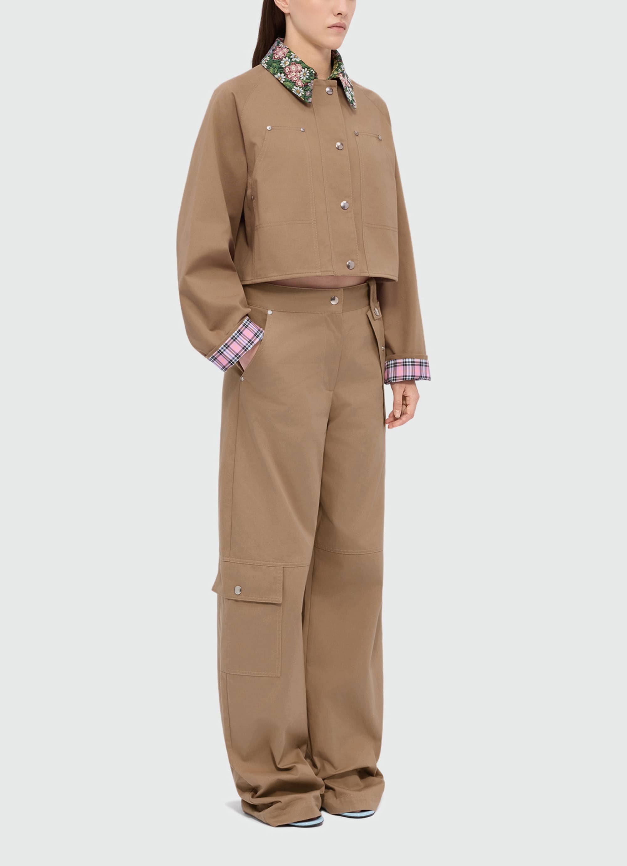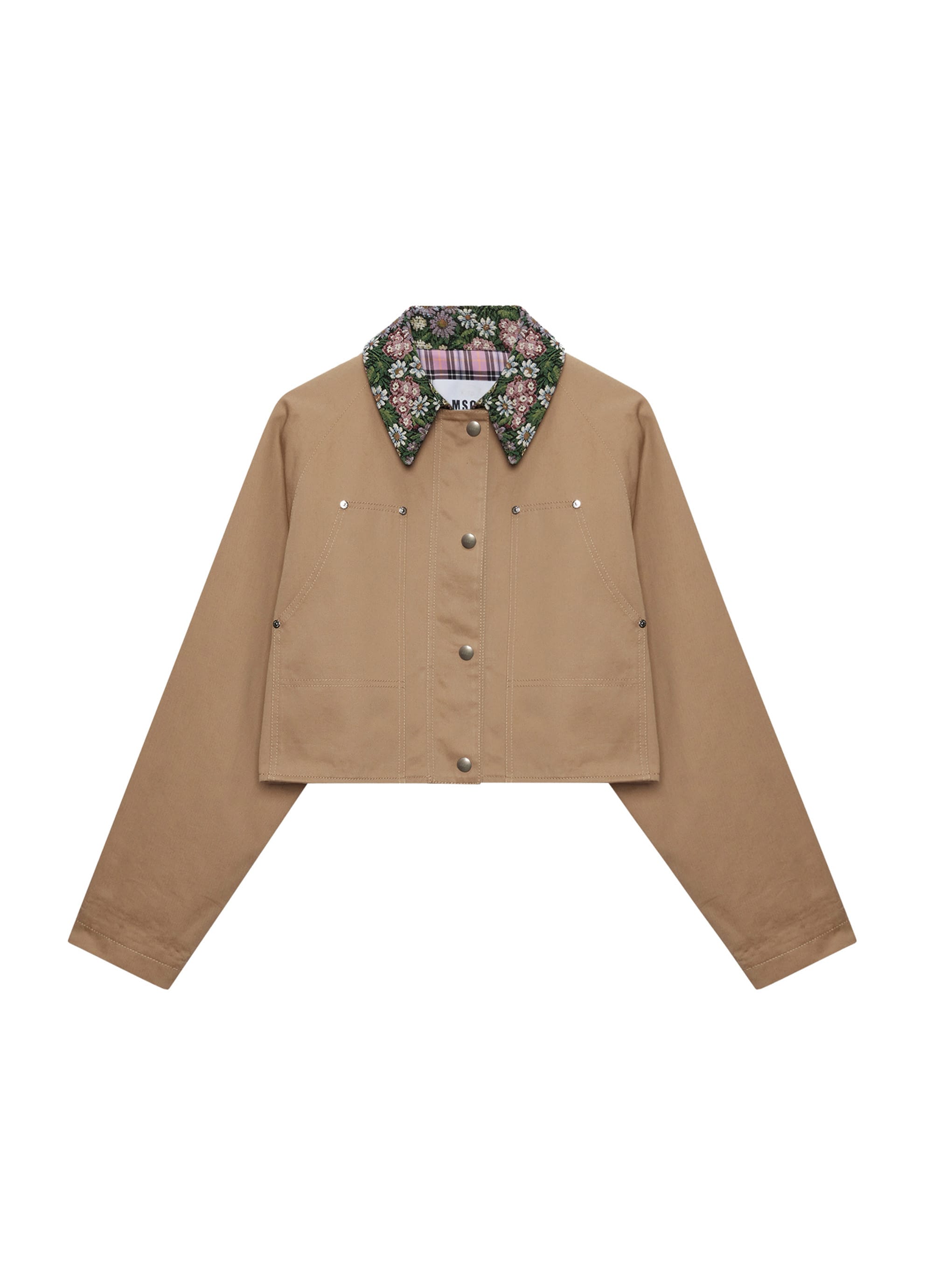 ワークテイストのコットンギャバジンを使用した、クロップド丈のユーティリティジャケット。