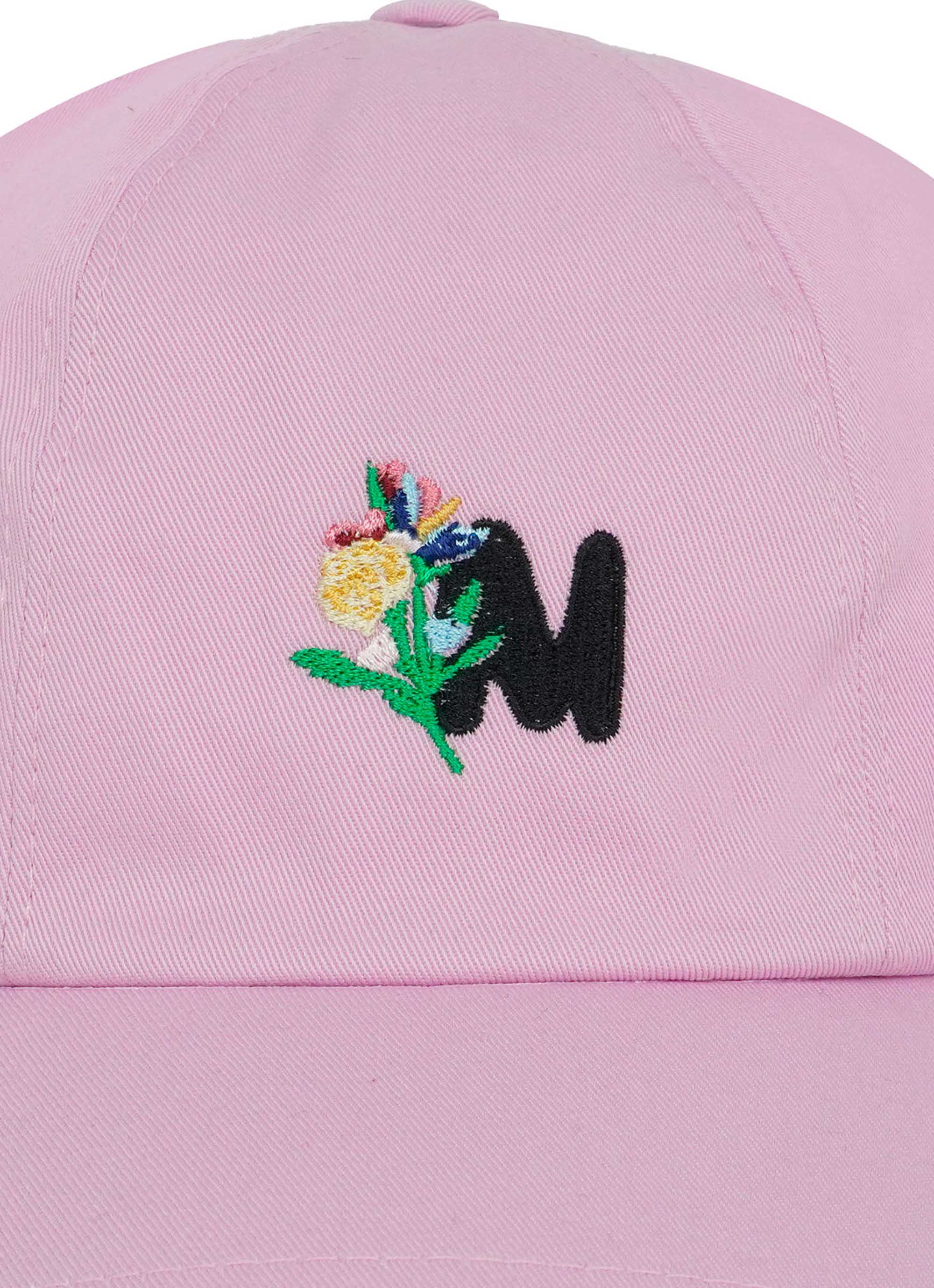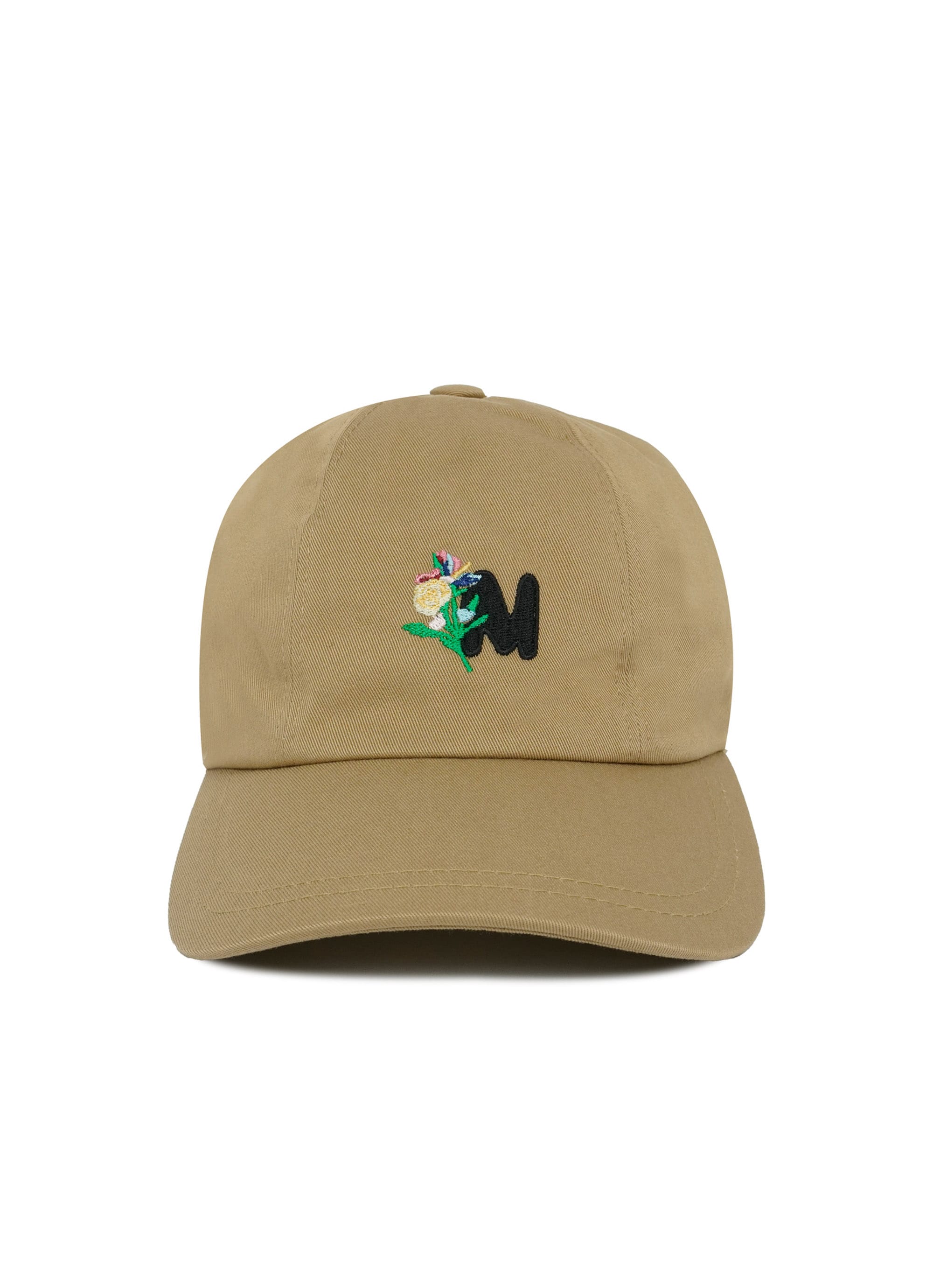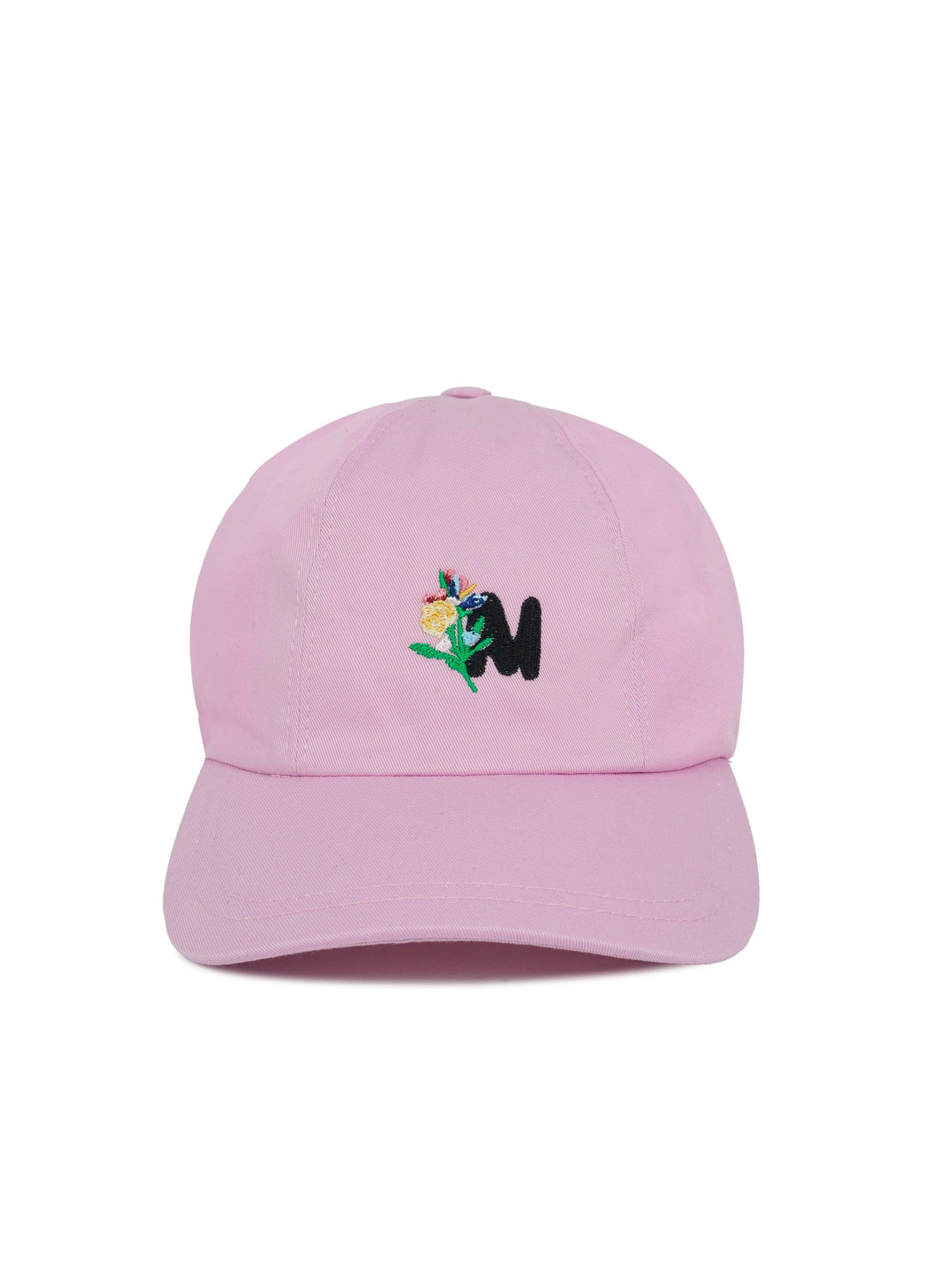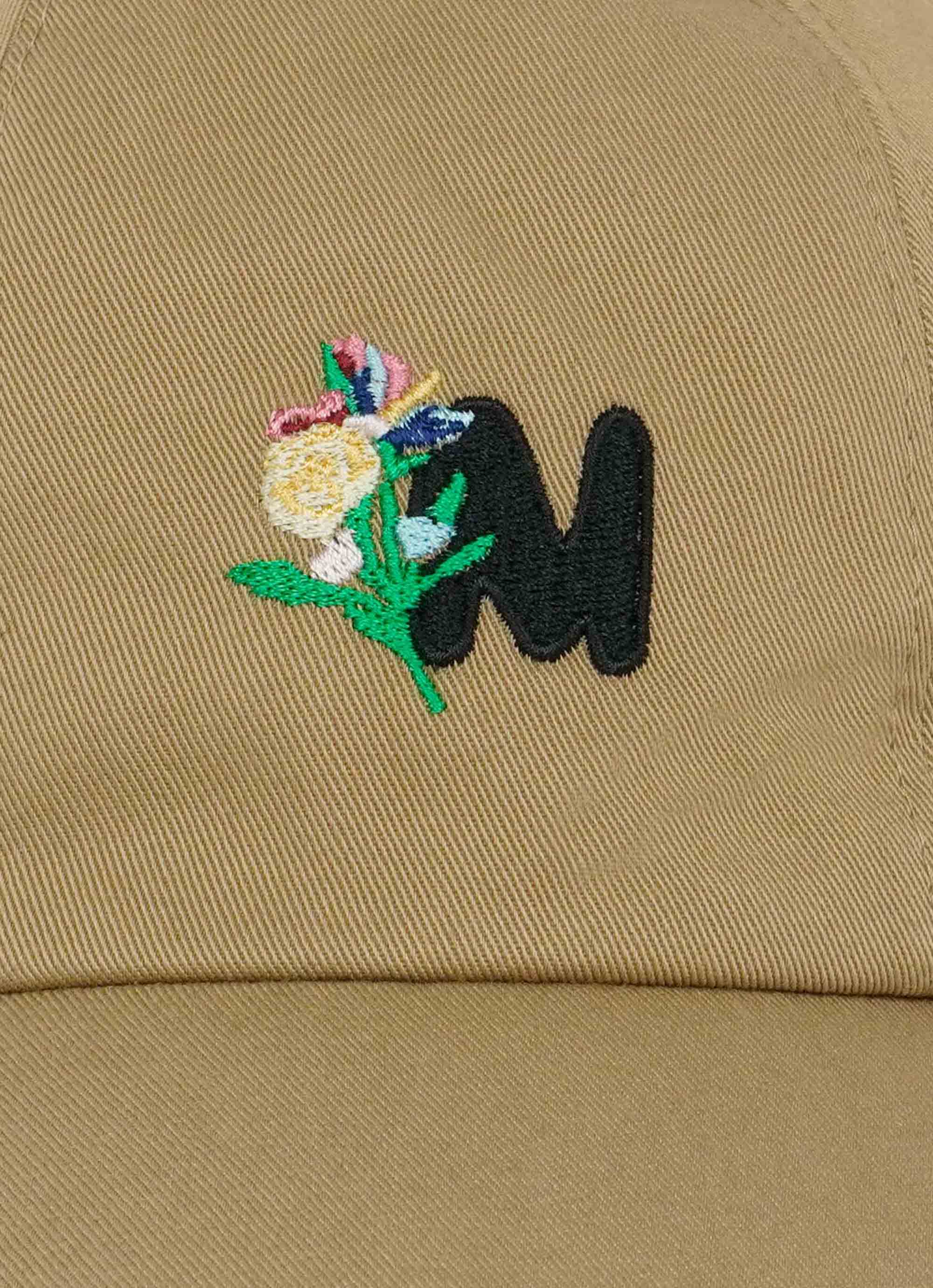 コットンギャバジンのクリーンな表情に、TheMwaveのモノグラムとフラワーモチーフを刺繍したベースボールキャップ。