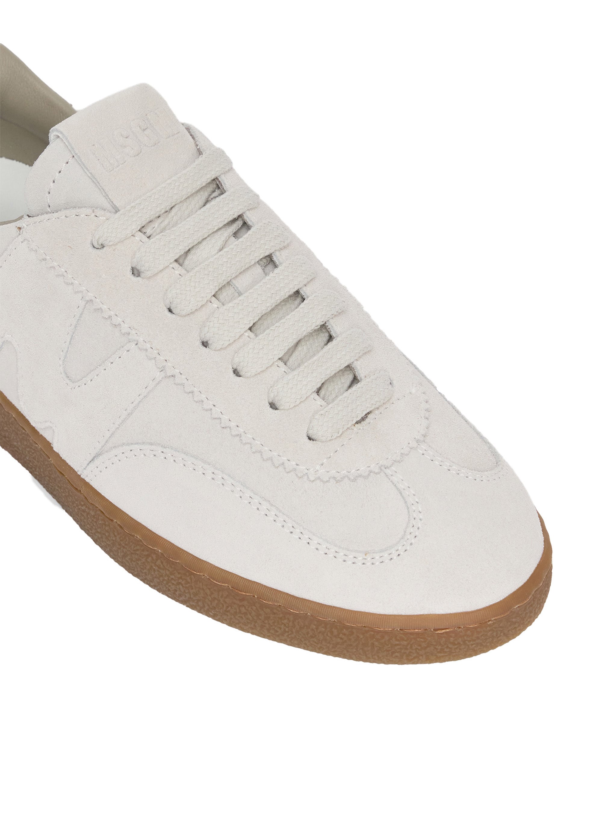 レトロなトレーニングシューズのフォルムを、柔らかなワントーンで上品にまとめたデザイン。