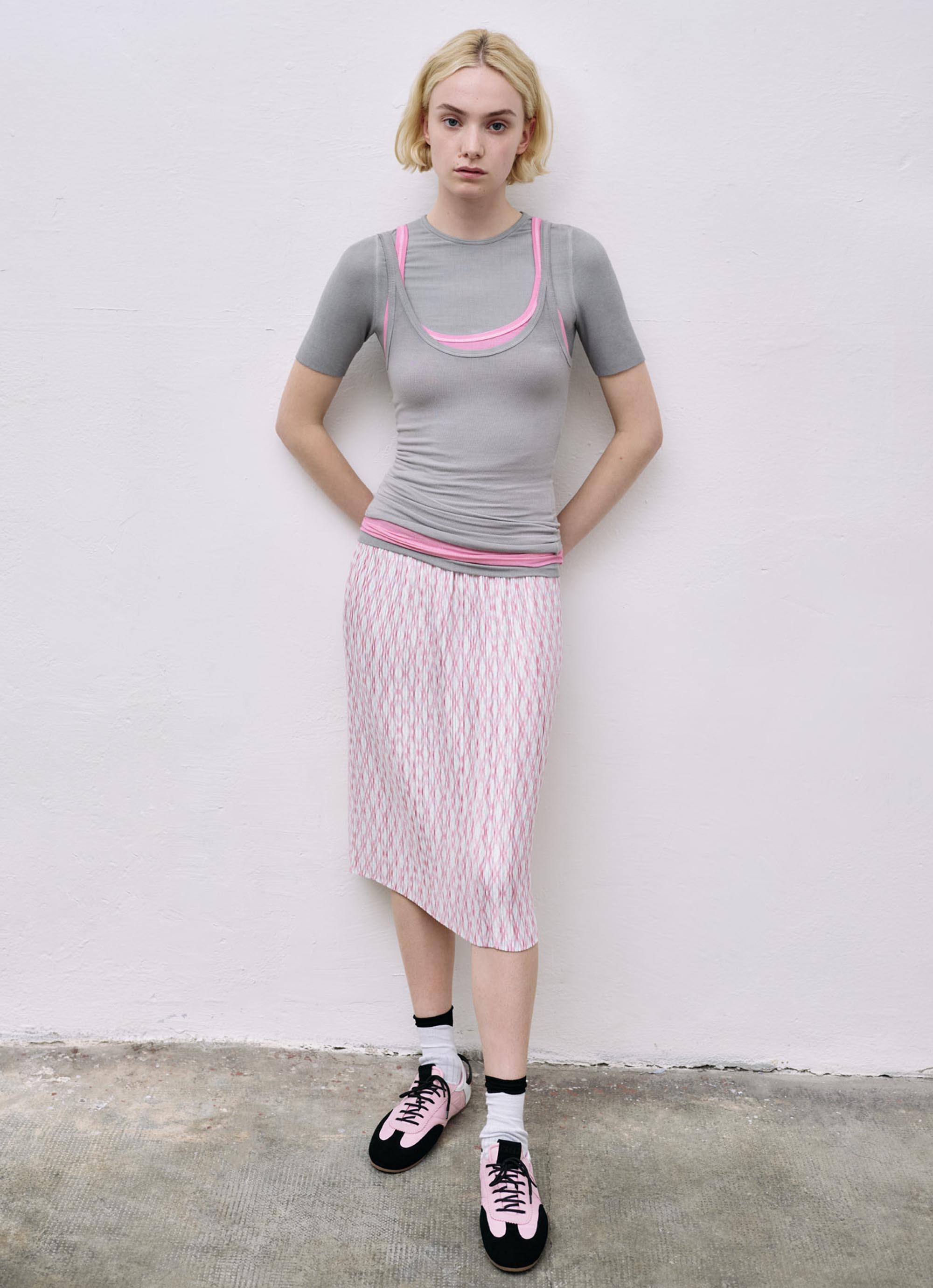 春の空気を軽やかにまとうニュアンスカラーが、MSGMらしいプレイフルさを引き立てる一枚。