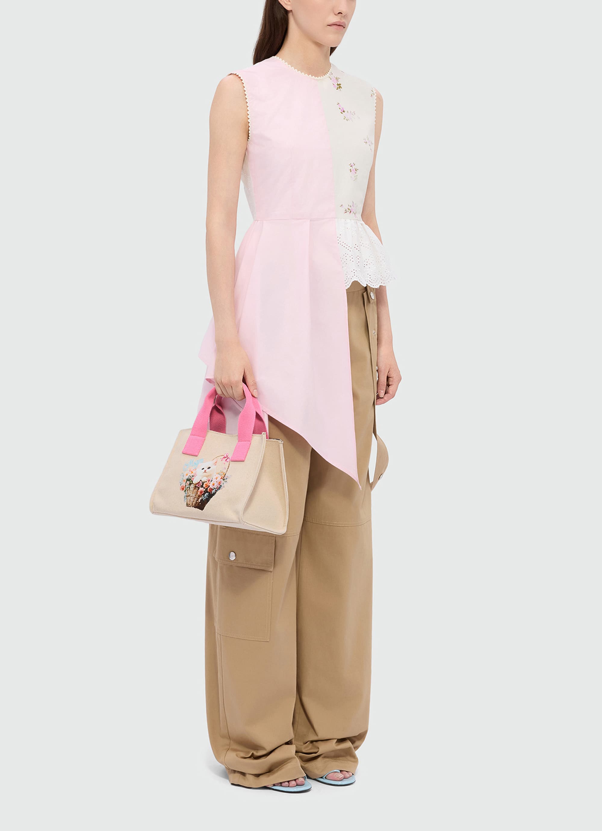 ピンクのコントラストハンドルがアクセントになり、MSGMらしいポップなムードを添えるデザイン。