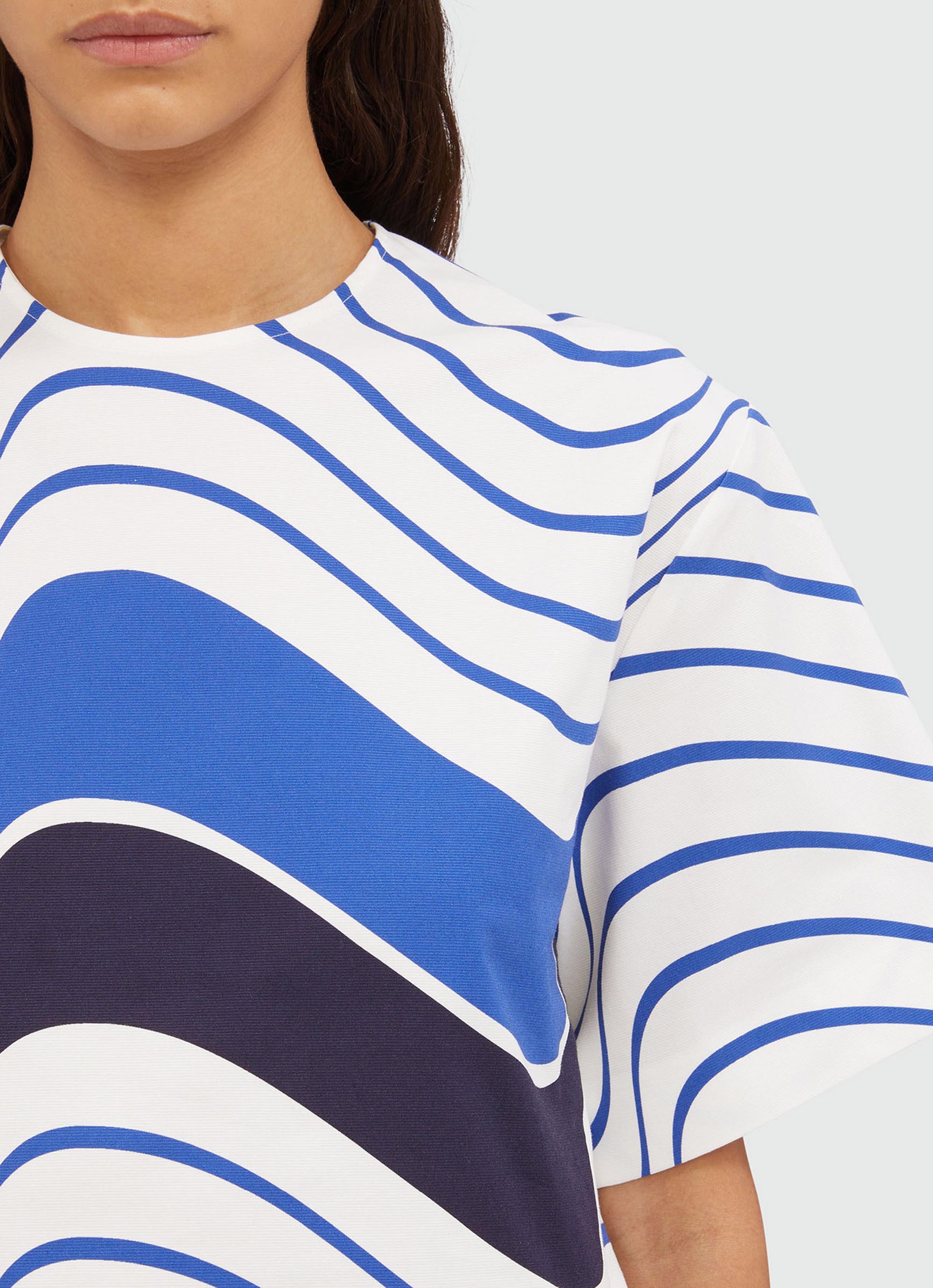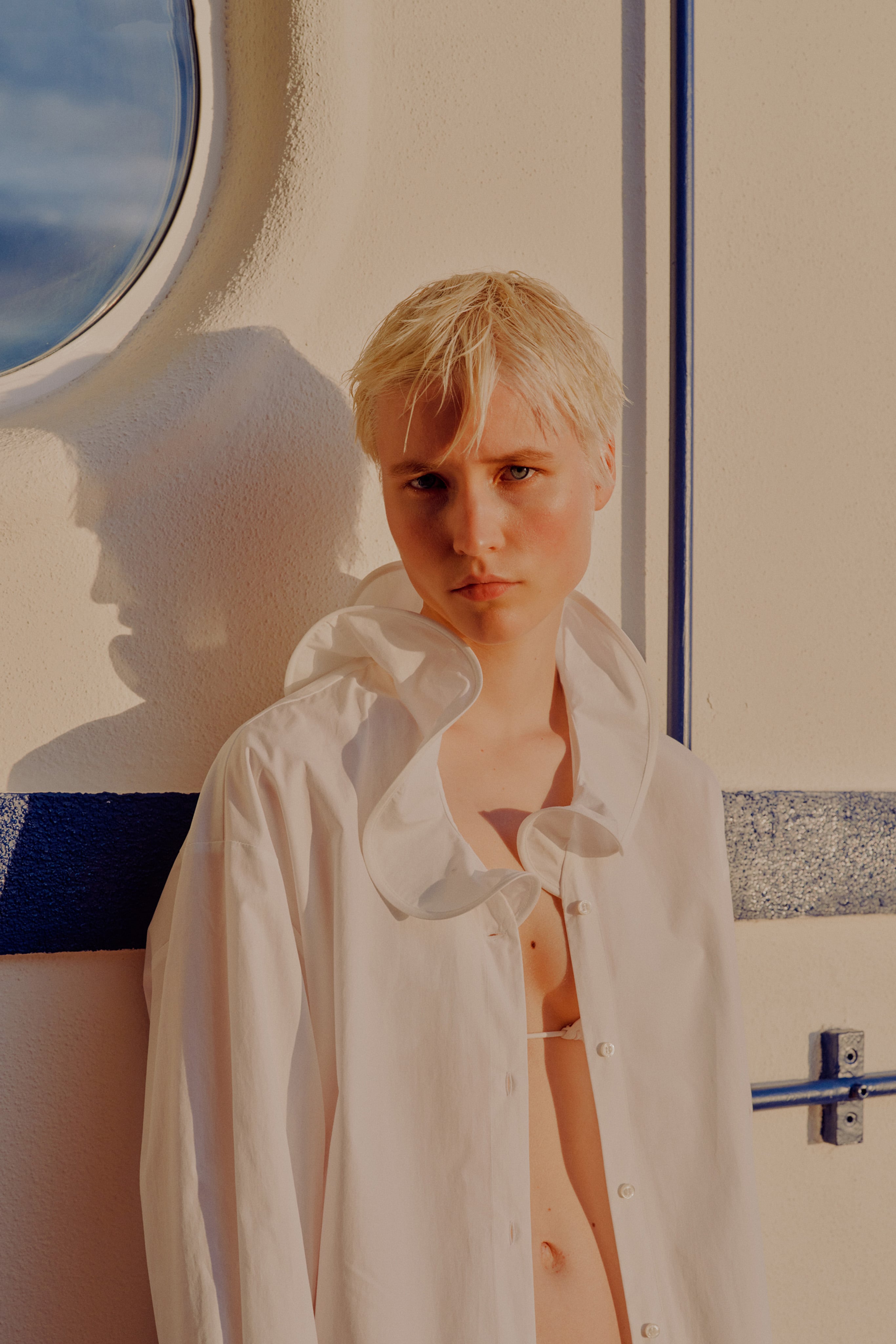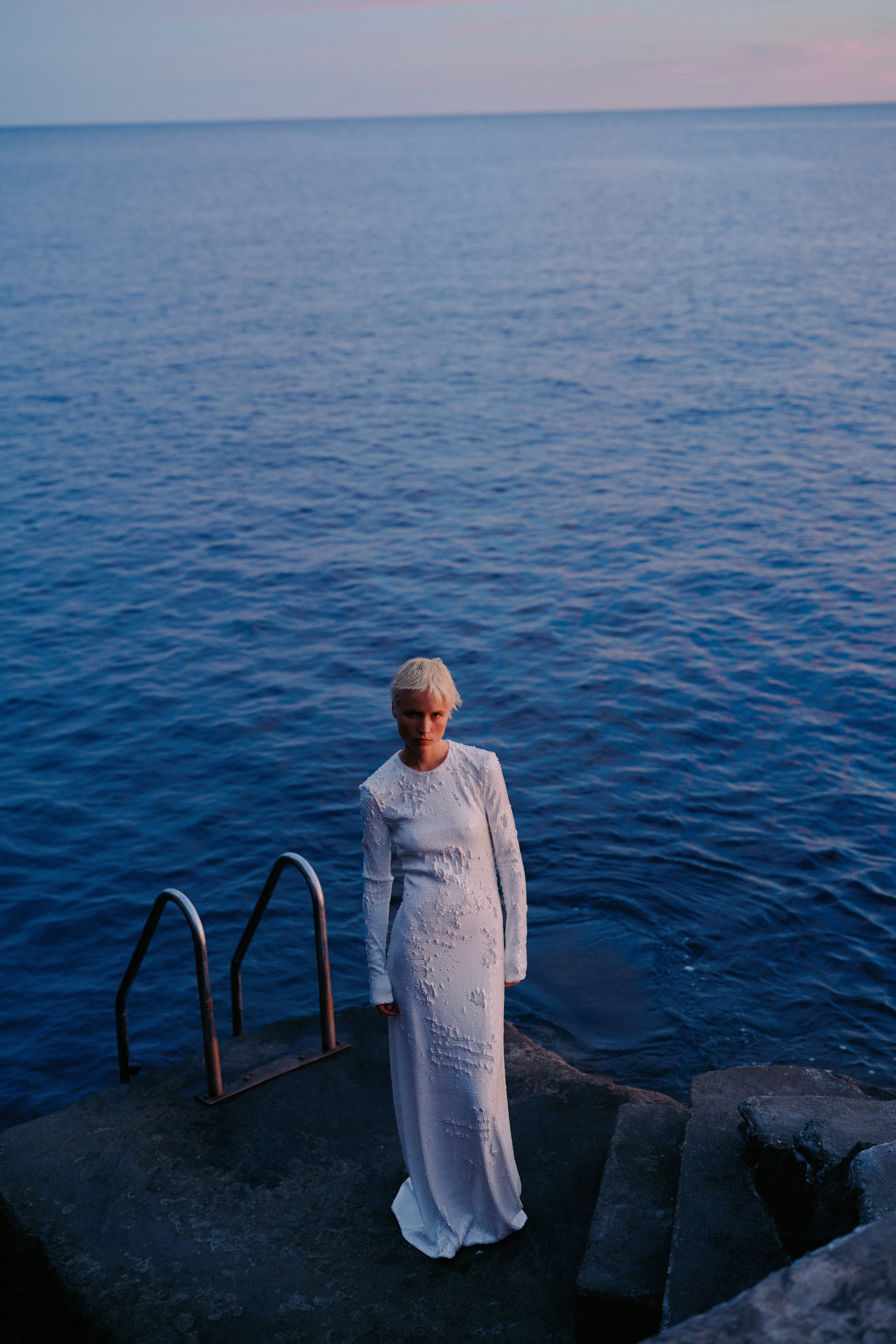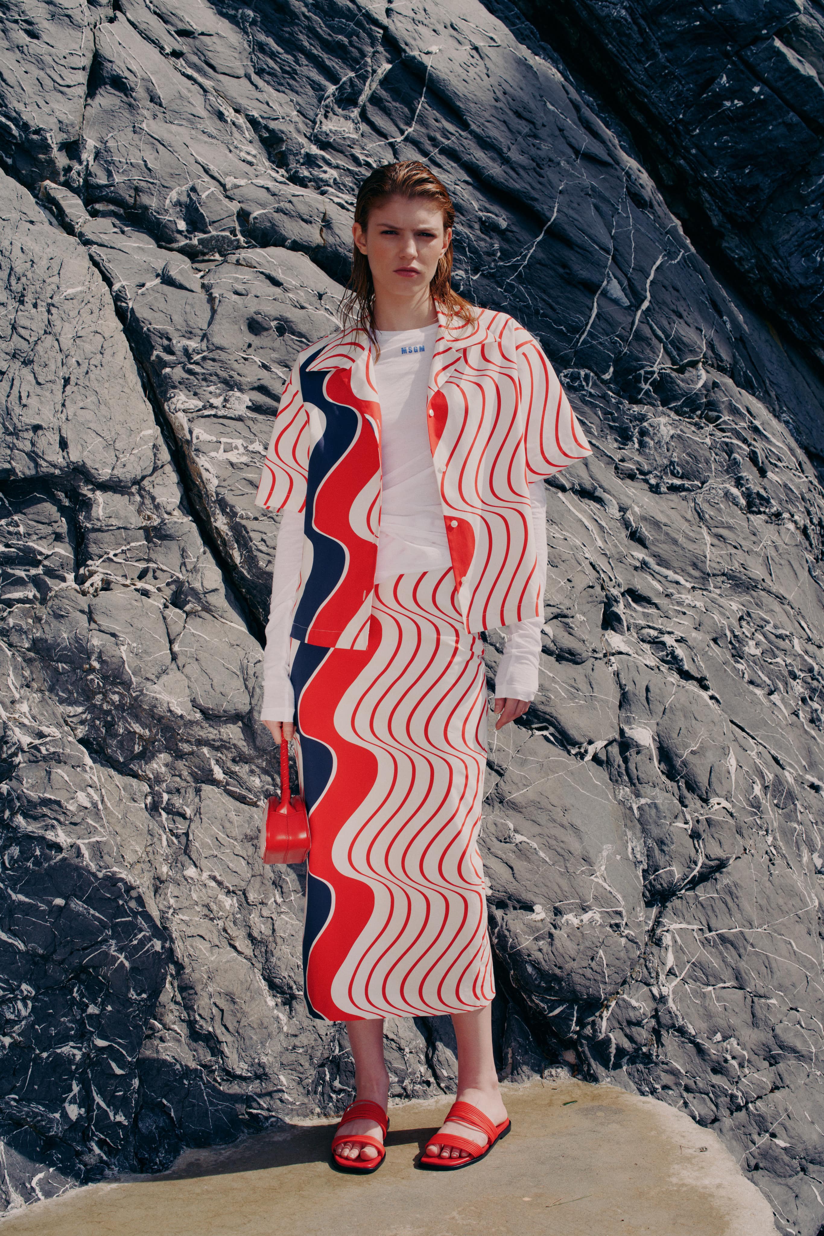 ファブリックの感覚を 高めるクリーンなシルエット、 海岸のリズムを呼び起こす しなやかな曲線のグラフィック。