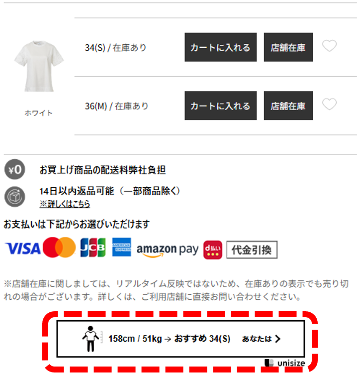 ※unisizeサービス対象外商品にはバナーは表示されません。