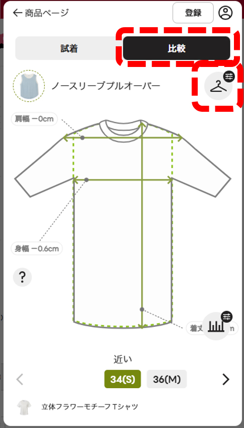 お客様がお持ちの洋服や過去に購入した洋服との寸法比較もできます。